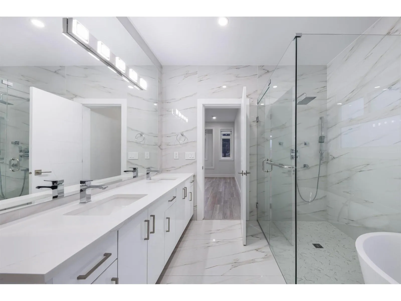 Located in the heart of Fleetwood, this luxury 2-level home offers (2+1) mortgage helpers basement suite. Top Floor Features a stunning primary bedroom with a spacious walk-in closet and a luxurious ensuite, along with three additional generously sized bedrooms and three full bathrooms. Main Floor Designed for modern living, it includes a spice kitchen, separate living and dining areas, and a family room with access to a covered deck. Legal Suite on main level Includes a two-bedroom with a full bathroom, plus an additional one-bedroom suite on second floor with separate entry, providing excellent rental income potential. Double garage with four extra parking spaces in the front driveway. Premium finishes, high ceiling. Open house Saturday 2-4 Pm. (id:27476)