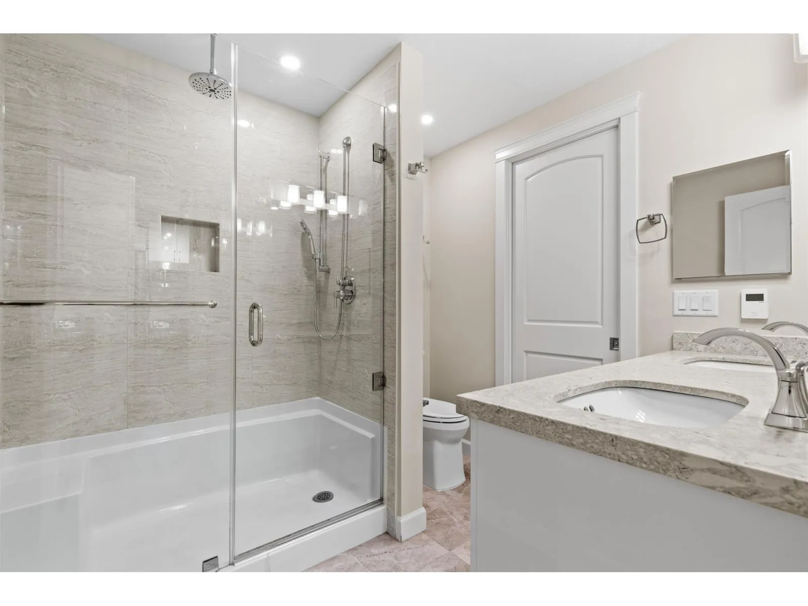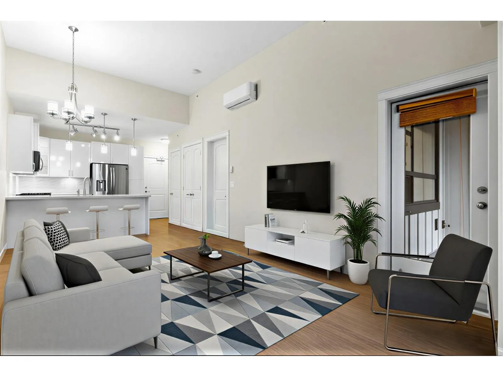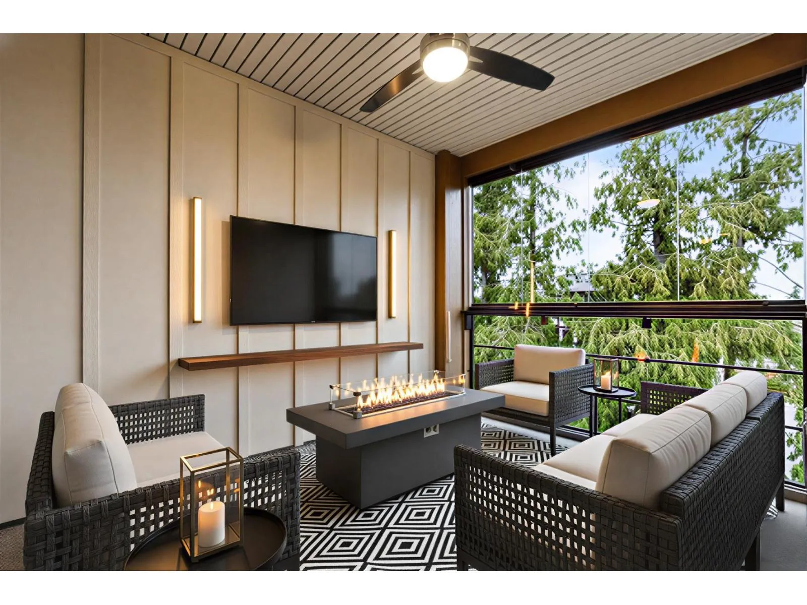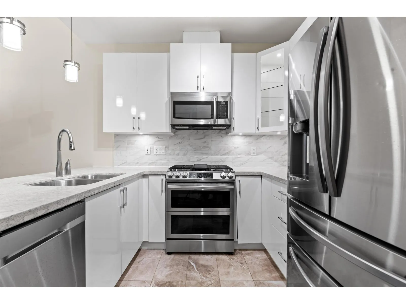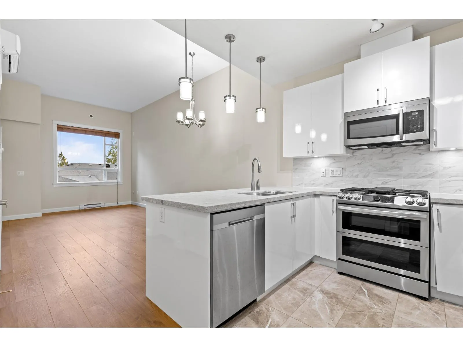 FOREST RIDGE by Quadra Homes. This stylish 1 bed, 1 bath condo includes a 134 sq. ft. solarium with retractable glass and BBQ gas hookup for year-round use. Features a gourmet kitchen with 5-burner gas range, double oven, quartz countertops, and white shaker cabinets, plus 12ft high ceilings throughout. Extras include A/C, energy-efficient heat pump, heated bathroom floors, frameless glass shower, 2 underground parking stalls and a private roll up storage garage with electric outlet capable for electric car charging. Minutes to Crescent Beach, Hwy 99, King George Blvd, and shopping - perfect for comfortable coastal living with urban convenience. (id:27476)