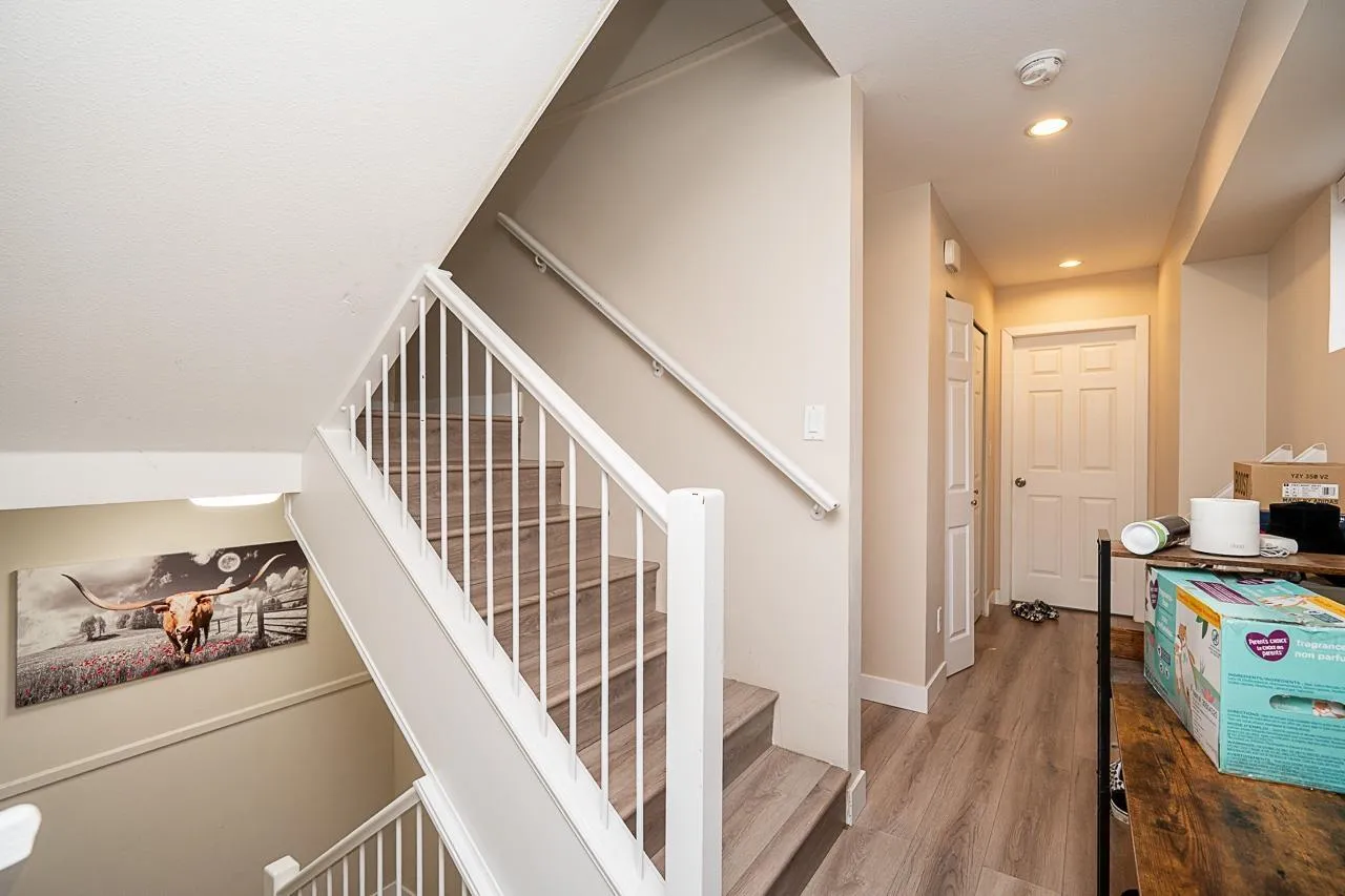 Welcome to the Mathew Park complex, located in North Surrey. This spacious 3-level home offers 3 bedrooms plus a large den and has been completely updated throughout. Renovations include laminate flooring, modern quartz kitchen countertops, new white cabinetry, and new stainless steel appliances. Newer window blinds, light fixtures, and fresh paint, in 2023. The main floor has a bright kitchen with white cabinets & walk-out to the carport, living room that opens to the front entrance with street parking, powder room. The second level features two sized bedrooms & a full bathroom. The top floor provides a private third bedroom. Located near Simon Fraser University, Surrey Central Mall. Enjoy easy access to SkyTrain, transit and major routes. (id:27476)