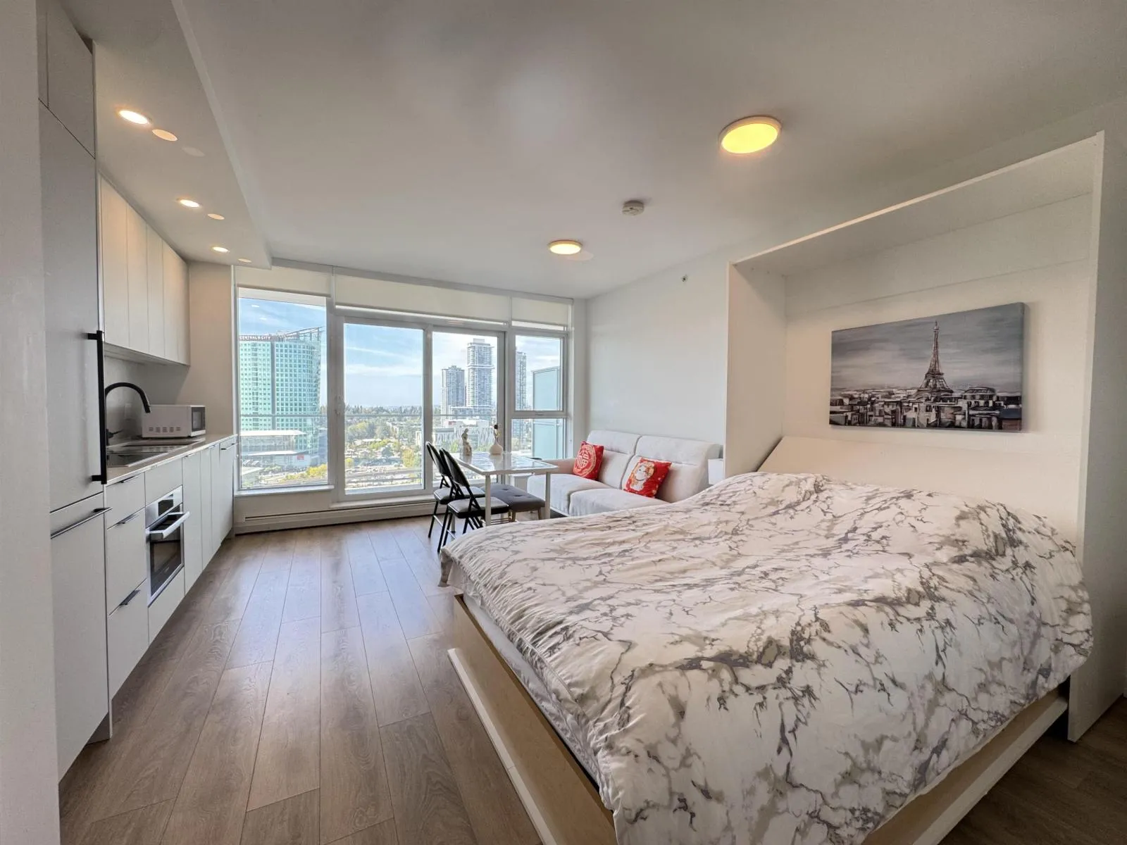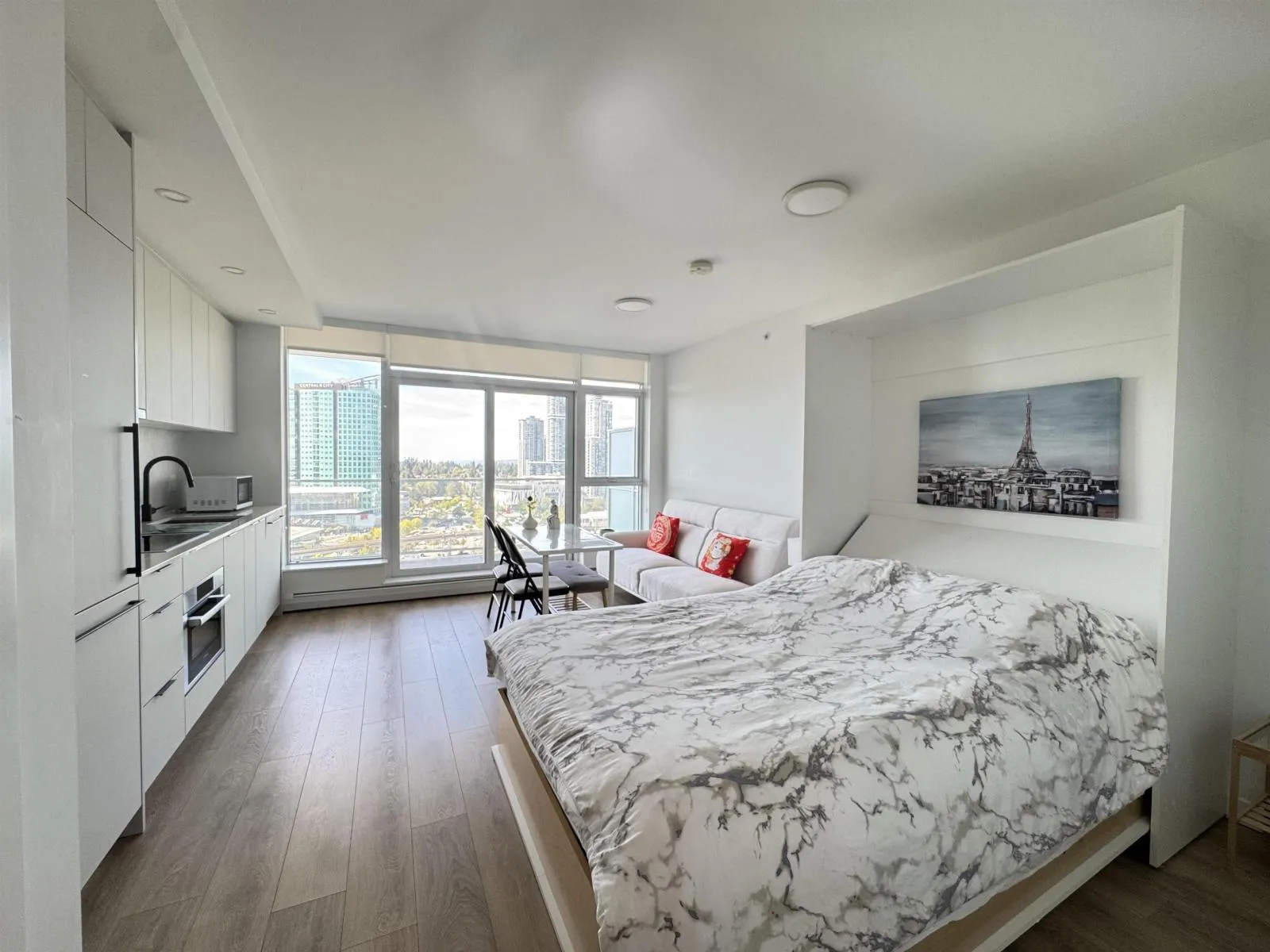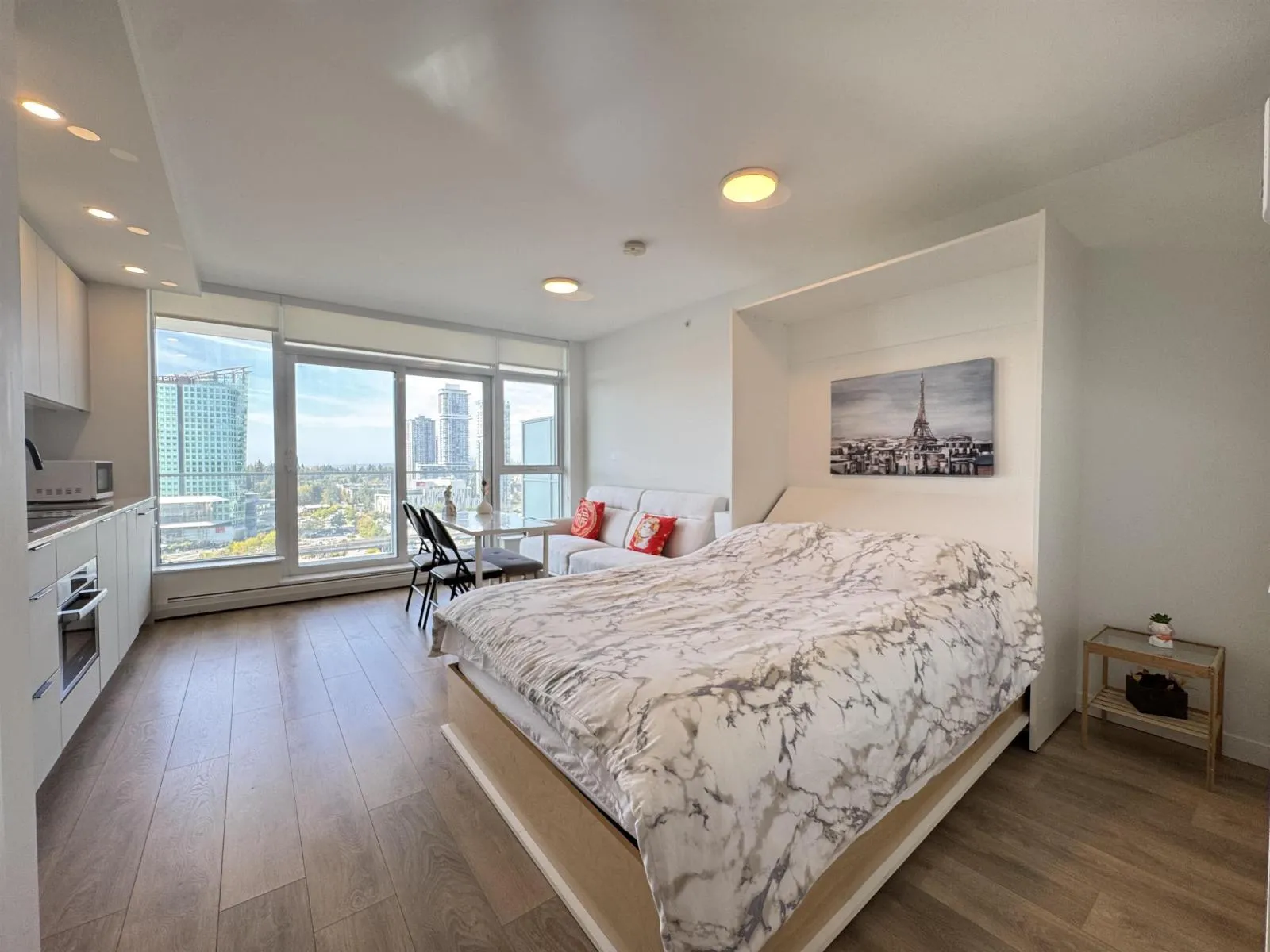Georgetown by Anthem, the leader master community just cross Surrey City Centre skytrain, SFU and KPU, future UBC, Walmart T&T supermarket. More waiting to be discovered. Unit high ceiling wide balcony low strata fee but winter heat included. Amenities include a low cost guest suite, free wifi co-work space, outdoor theatre, dog run and fitness centre. Well maintained high level unit provide you with beautiful View. 1 parking 1 storage included. Prefect for first buyers or investor. Must see! (id:27476)