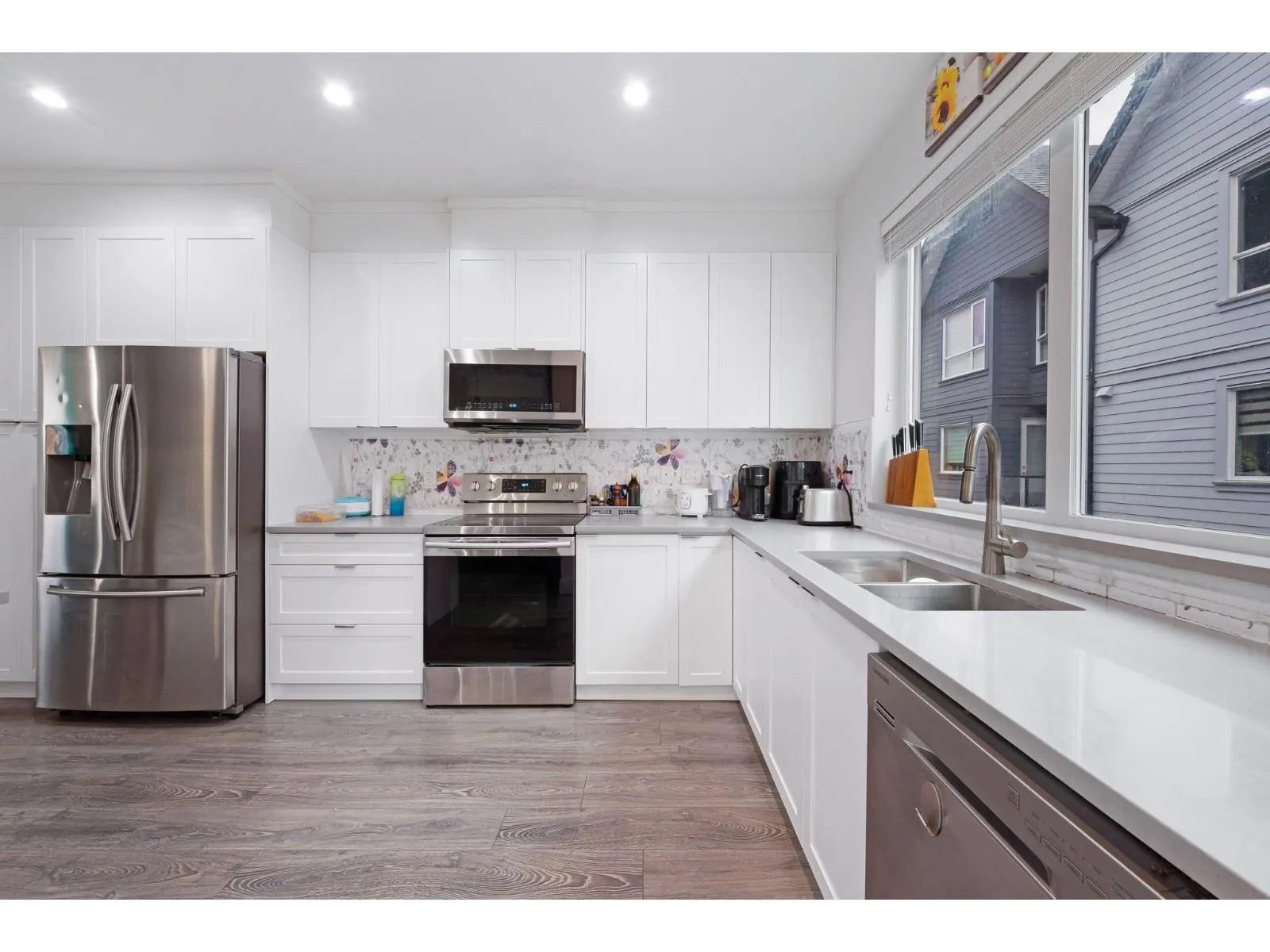 Like-new 3-bed + den townhouse in the heart of Strawberry Hill! This spacious home features 3.5 baths, an open-concept living/dining area, a gourmet kitchen, and a king-size primary bedroom with walk-in closet and ensuite. Two additional large bedrooms plus a flex/den on the lower level. Enjoy a fenced yard, side-by-side double garage, and roomy laundry area. Centrally located - steps to shopping, restaurants, Cineplex, schools, parks, transit and Scottsdale Exchange. A perfect blend of comfort and convenience! (id:27476)