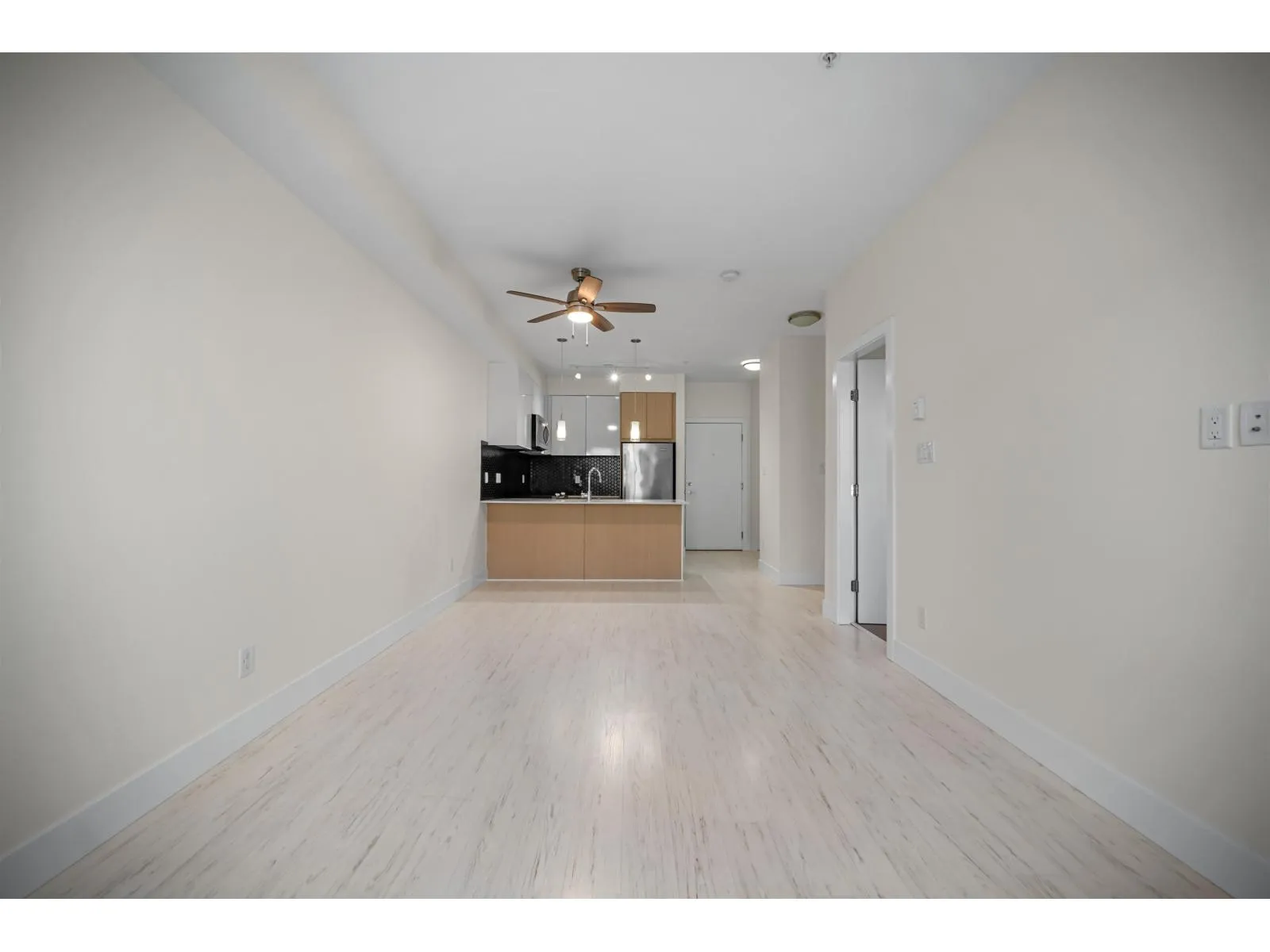 'Well designed 1 bedroom, 1 bathroom home offering 580 square feet of functional living space. The open concept layout features a kitchen with quartz countertops, stainless steel appliances and ample cabinetry, connecting to a bright living and dining area with large windows for natural light. A practical floor plan makes efficient use of space, ideal for everyday living. Well suited for first-time buyers, investors or those looking to downsize. Conveniently located close to Willowbrook Mall, schools, parks & the future skytrain station. Open House Sun Jan 4th from 2-4PM. (id:27476)