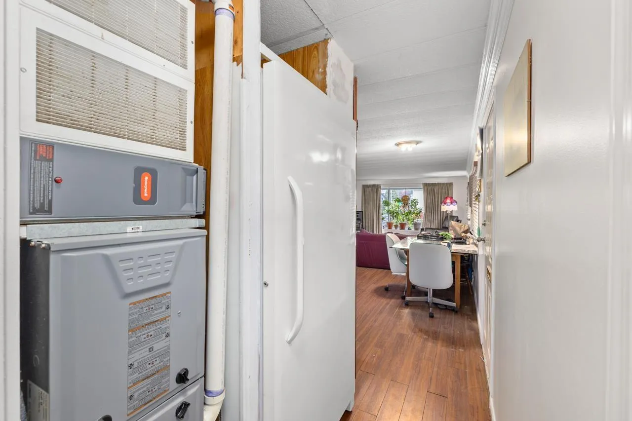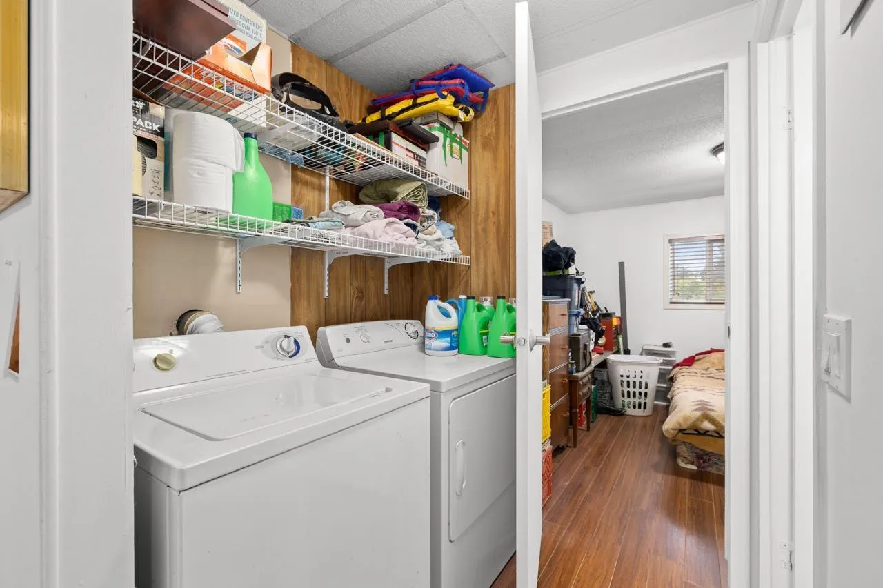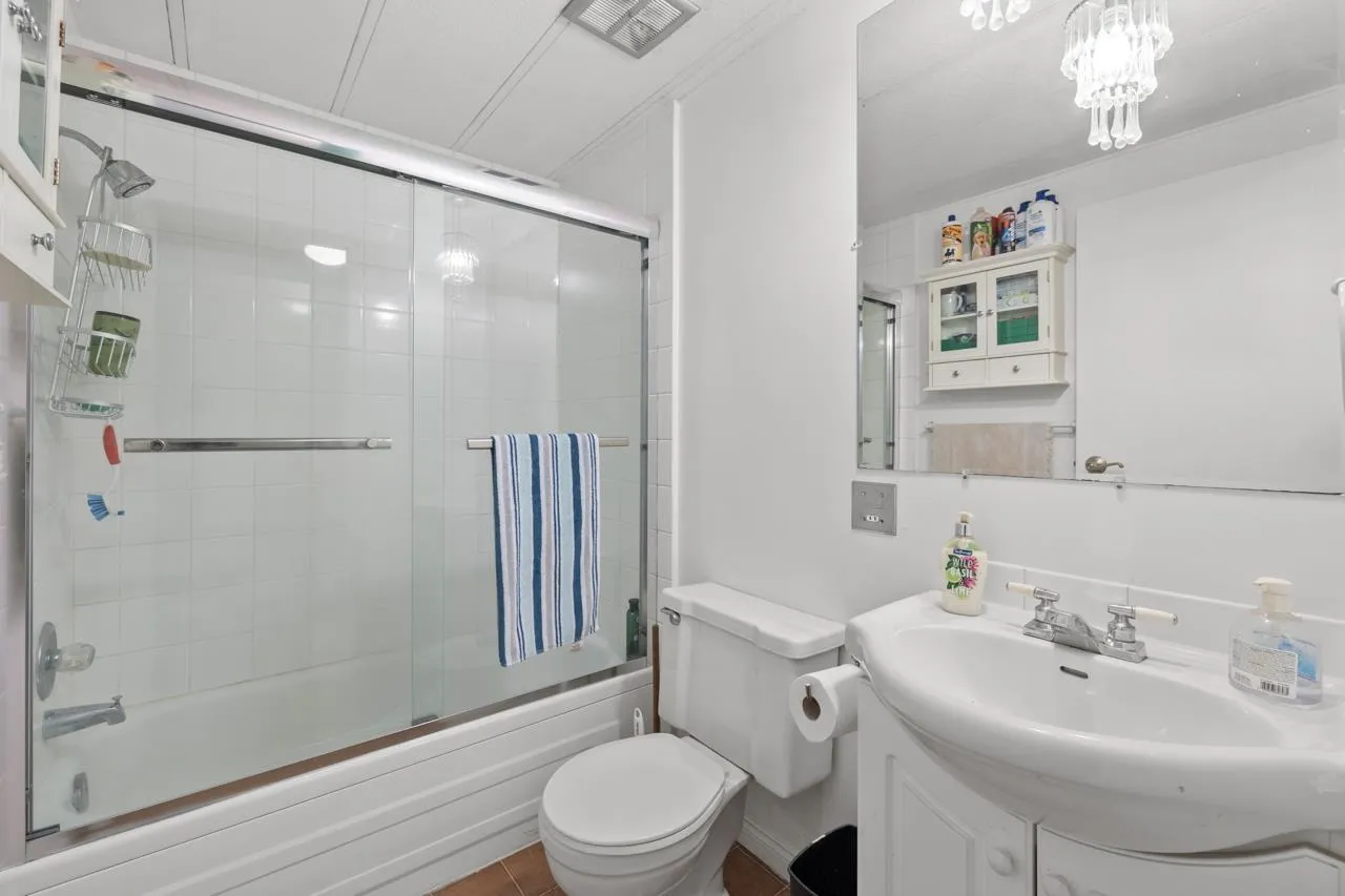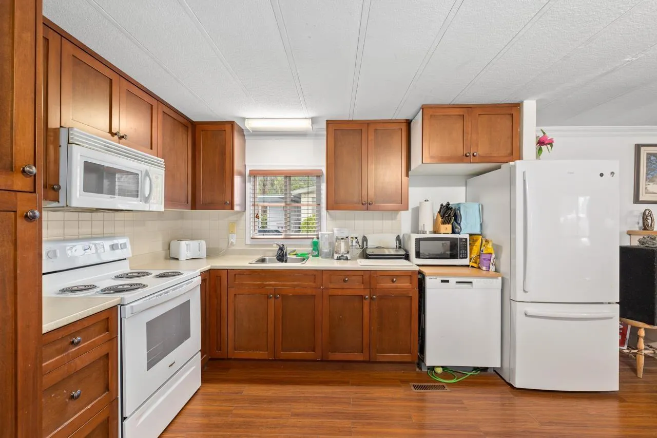 WESTWOOD ESTATES, this well maintained single wide modular home is in a superb location in Surrey. Wheelchair friendly with 2 bedrooms, 1 bathroom, and a spacious open concept living room. Newer kitchen cabinets with appliances and an EXTRA full size freezer. Full size washer/dryer, new high efficient furnace and air-conditioning installed in 2021. NEW HW Tank Nov. 2024. TONS of outdoor space. 75 foot long driveway! Enough space to park 4 cars or store your RV, boat, or toys. Option to cover with carport. Covered deck, 2 sheds for additional storage, and a low maintenance large fenced yard. Quiet adult-oriented 55 plus age restriction. Pad rental $892/month. This is one of the best managed manufactured parks in all of Metro Vancouver and the Fraser Valley. (id:27476)