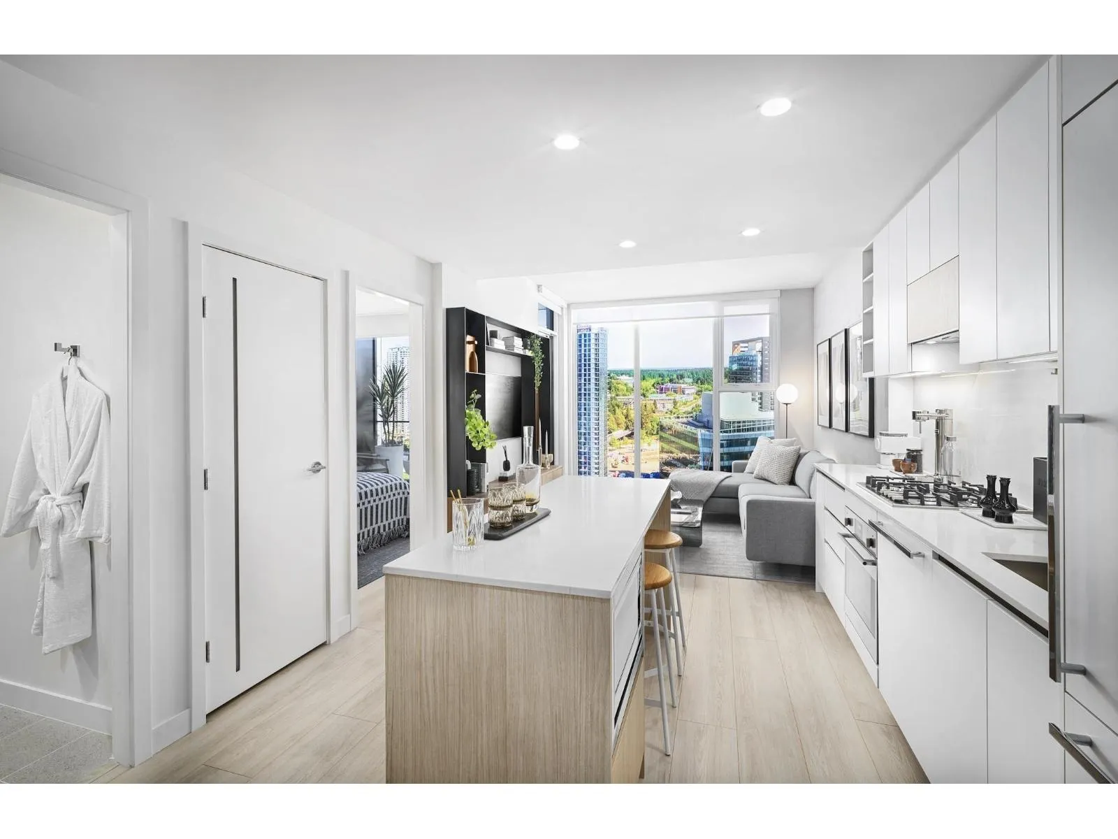 Address: 13573 98A Avenue, Surrey This beautiful brand-new 2 Bedroom + Den, 2 Bathroom home is located at Century City Holland Park, Century Group's latest development in the heart of Surrey City Centre next to Holland Park, right across the street from King George Skytrain Station. Spacious & bright, this home offers a lot of natural light. An open concept layout with elegantly designed wide plank flooring throughout, a Fulgor Milano appliance package, quartz countertops & backsplash, kitchen island, floor to ceiling windows, 9 ft ceilings & air conditioning. Enjoy indoor amenities including a private fitness center with yoga room & outdoor fitness deck, social lounge, coworking lounge, media room, rooftop meditation room & more. Please contact me for your private showing. (id:27476)