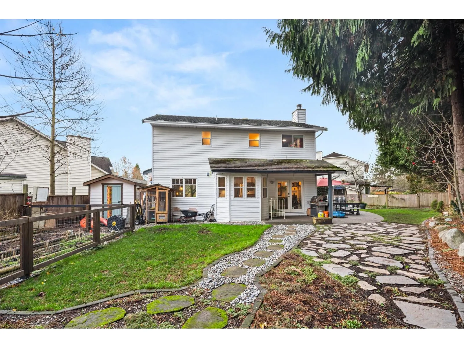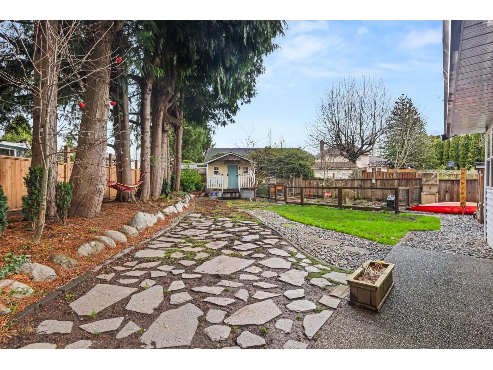 Immaculate South Meridian family home tucked away on a quiet cul-de-sac, close to schools, parks, transit and just minutes to Hwy 99. Set on a private 8,510 sq. ft. parklike lot with RV parking, perennial gardens, fruit trees and thriving veggie beds, this truly feels like a "cottage in the city." Thoughtfully designed with no wasted space, the home is full of character, featuring fir shiplap ceilings, craftsman trim, recycled fir kitchen island, gas cooktop, built-in oven and a bright family room off the kitchen. Three bedrooms up including a generous primary with ensuite. Enjoy a cedar front porch, detached workout studio, large storage shed, outdoor gas hookup, hot/cold taps, 50-year Penfolds cedar roof and updated vinyl windows. A warm, welcoming home that shows beautifully. (id:27476)