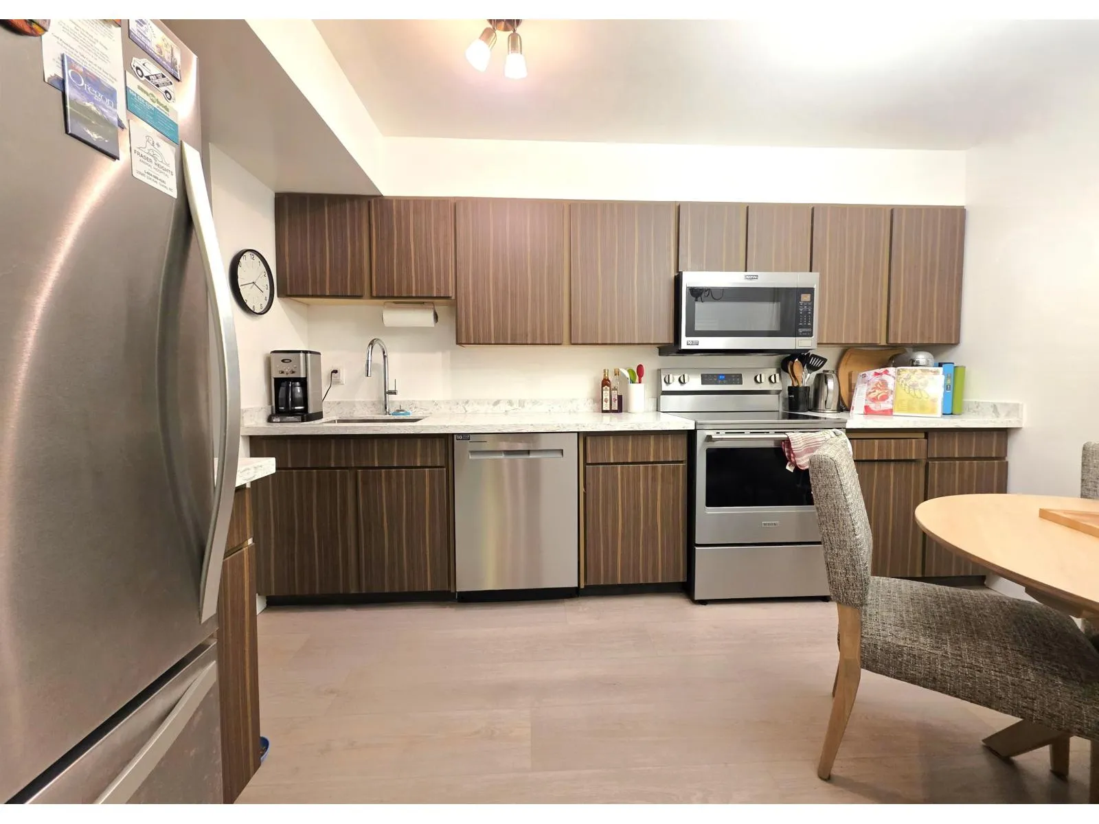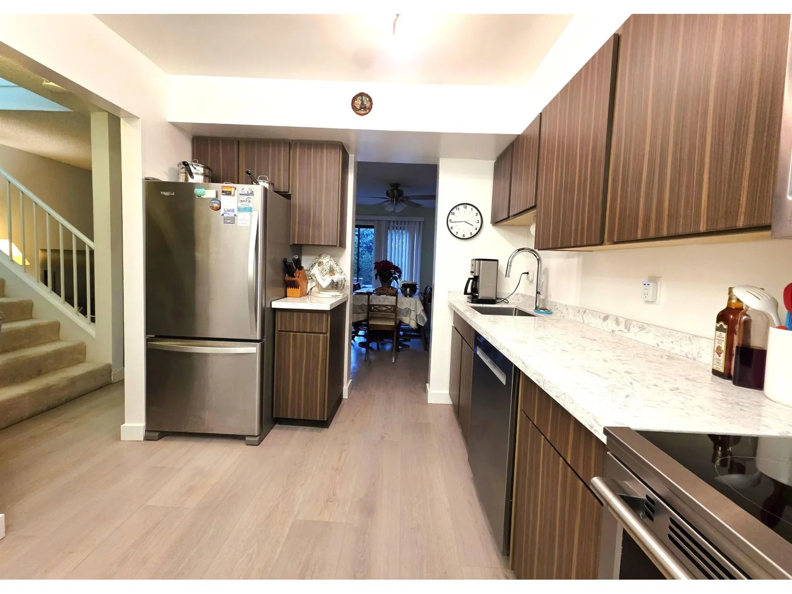 Welcome to Timberlane! This nicely redone 3 generous-sized bedroom, 2 bath townhome features a brand new kitchen with new cabinet doors and countertop, plus a brand new composite deck with new patio door and screen, along with a new hot water tank. Enjoy peace of mind with additional renovations completed in 2023, including updated vinyl flooring, a refreshed powder room, new stove, dishwasher, fridge, and fresh paint. Family-friendly complex close to schools, parks, Green Timbers trails, transit, Surrey Memorial, shopping and amenities. Don't miss out! (id:27476)