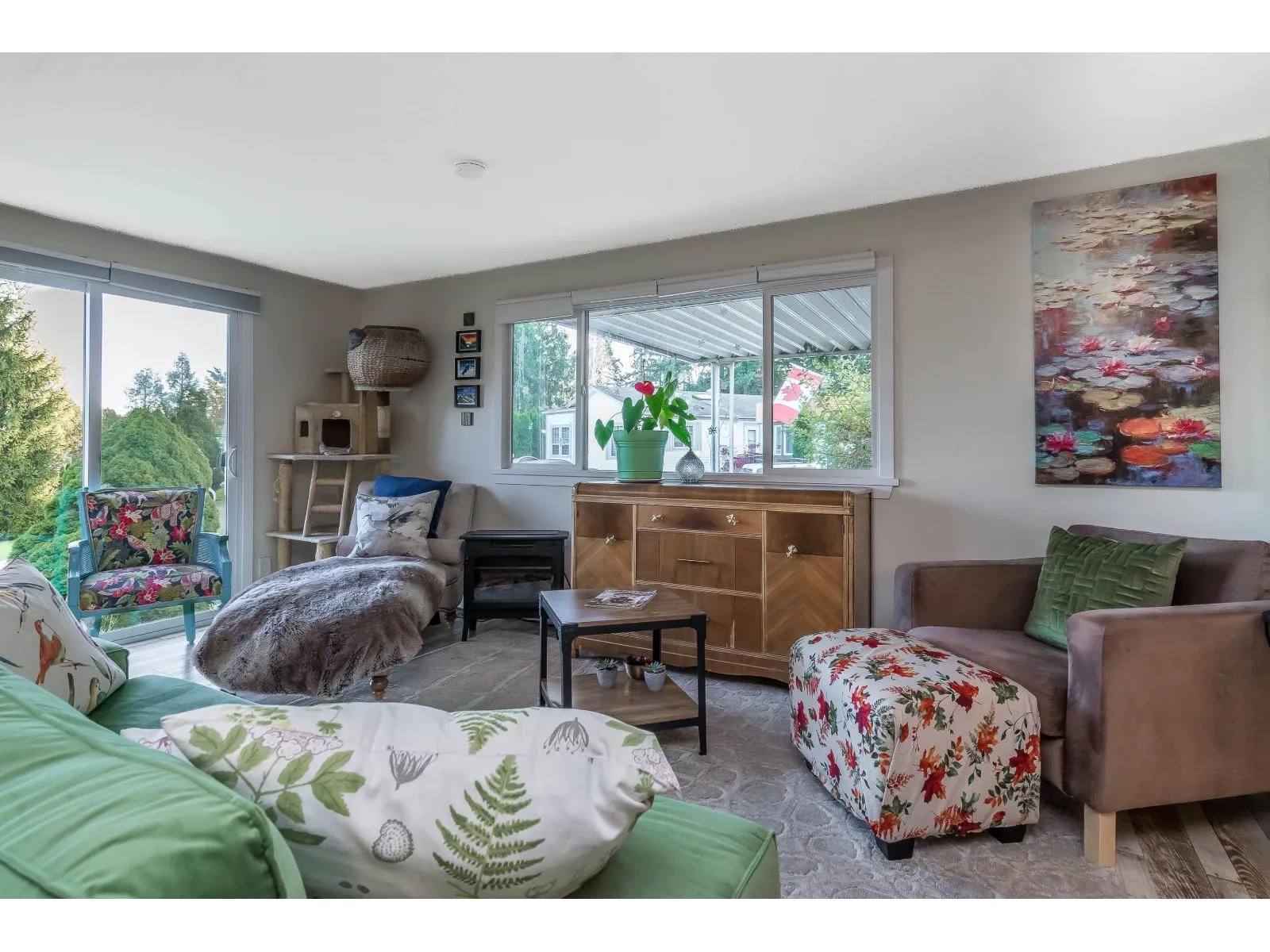 Welcome Home to Breakaway Bays! Fall in love with this gorgeous 3-bedroom, 1-bath Double Wide, full of updates and charm and your very own Catio! Since 2018 - new roof, gutters, hot water tank, windows, doors, brand new kitchen and appliances, flooring, lighting - you name it, it's done! New covered porch with tons of storage, plus lush gardens in a prime cul-de-sac location! Additional insulation throughout the undercarriage. Your community perks? Outdoor heated pool, clubhouse with library and pool table, loads of activities - all just minutes to the beach, shopping, golf, schools, transit, and the USA border. RV Parking available too! Electricity is included in the pad rent! Don't miss this rare gem - book your showing today! (id:27476)