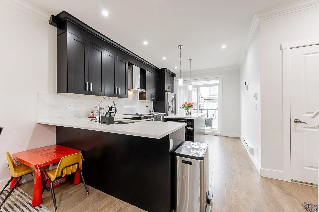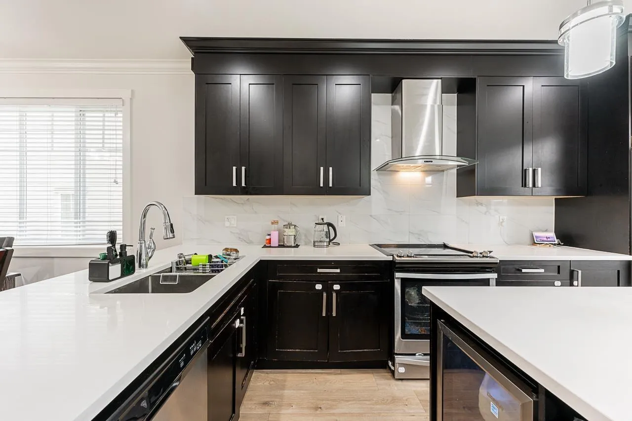 Step into this beautifully designed 1,615 sq. ft. corner unit townhouse, where modern elegance meets everyday comfort. The main level features a stylish gourmet kitchen with quartz countertops, premium stainless steel appliances, and a built-in wine fridge, along with a convenient powder room and two private balconies. Upstairs, the primary suite boasts a spa-like ensuite, accompanied by two additional bedrooms and a full bathroom. The lower level offers a versatile space with a 3-piece bathroom, perfect for a guest suite, home office, or media room. High 9' ceilings, upgraded finishes, and oversized windows create a bright and inviting atmosphere. A fenced yard provides extra privacy, making it a great space for kids and pets. Located in a thriving, family-friendly neighborhood, this home (id:27476)