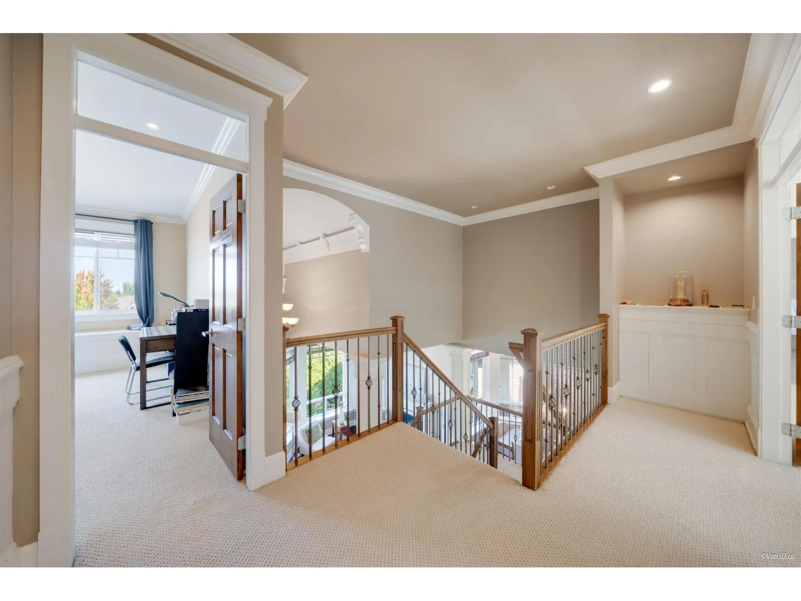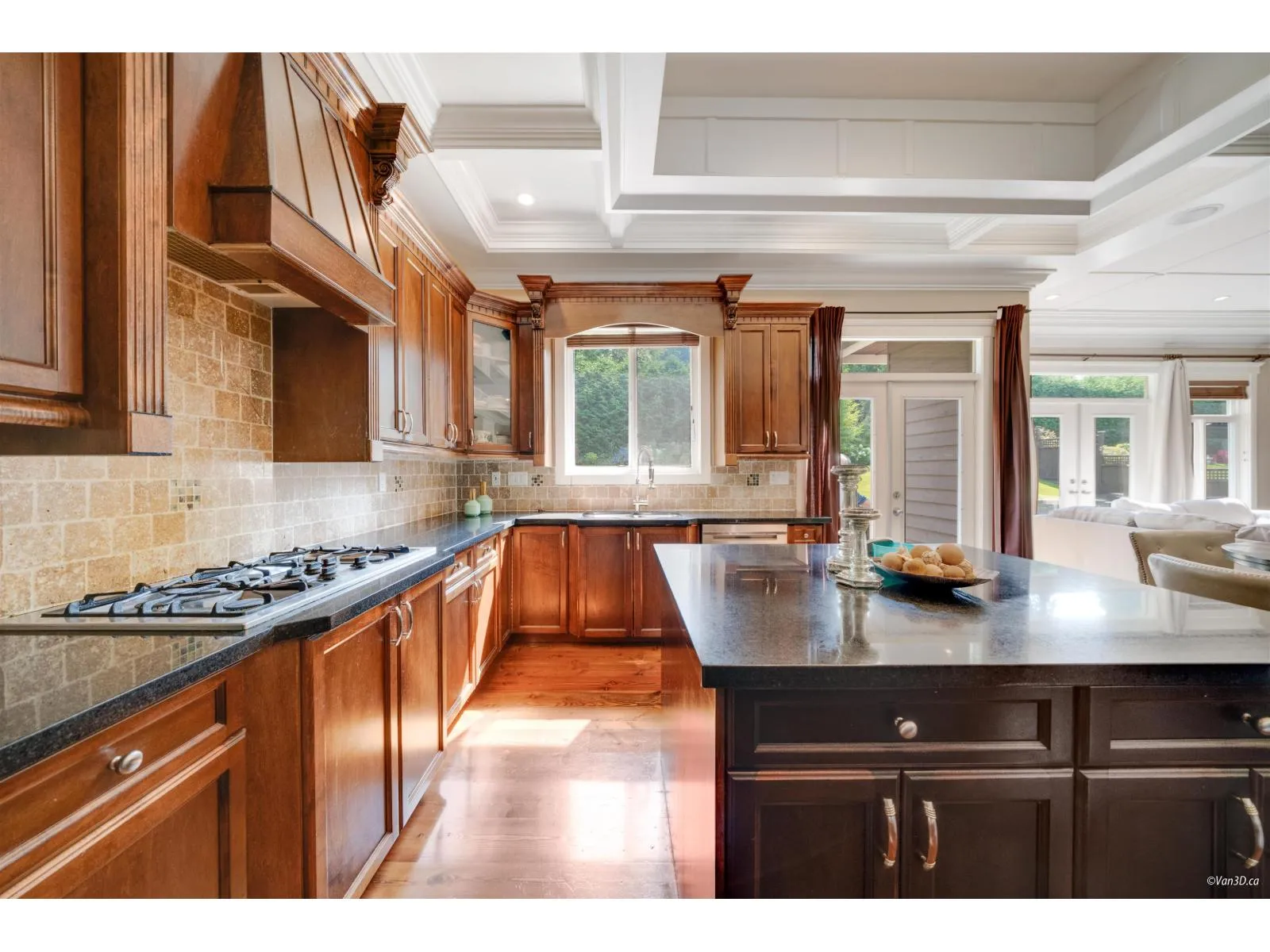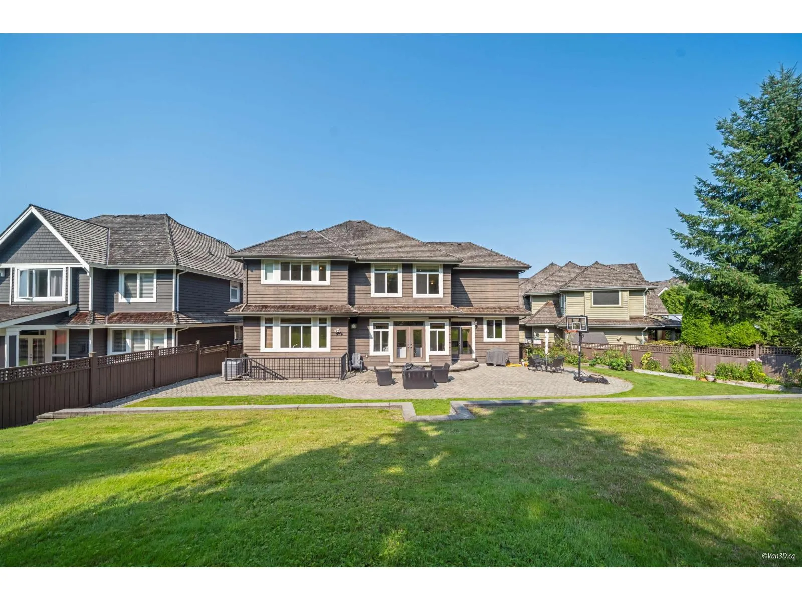 Nestled in a quiet cul-de-sac, this stunning home sits on a massive 11,717sqft lot with a beautifully landscaped, south-facing backyard. Quality built with an exceptional layout, it boasts 10-ft ceilings on the main floor and 14-ft vaulted ceilings in the living room, complemented by classic 7-inch wide plank flooring. The gourmet kitchen features granite countertops, high-end stainless steel appliances, and a built-in pantry. Offering two master bedrooms-one conveniently located on the main floor-all upstairs bedrooms come complete with walk-in closets and ensuites. Enjoy premium amenities including a games room, media room, gym, home sound system, and full house A/C. Located in a highly desirable South Surrey neighborhood, close to Southridge private school, shopping, recreation (id:27476)
