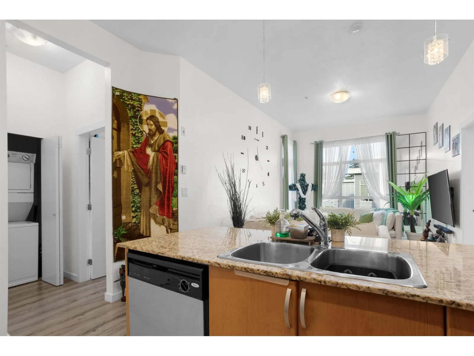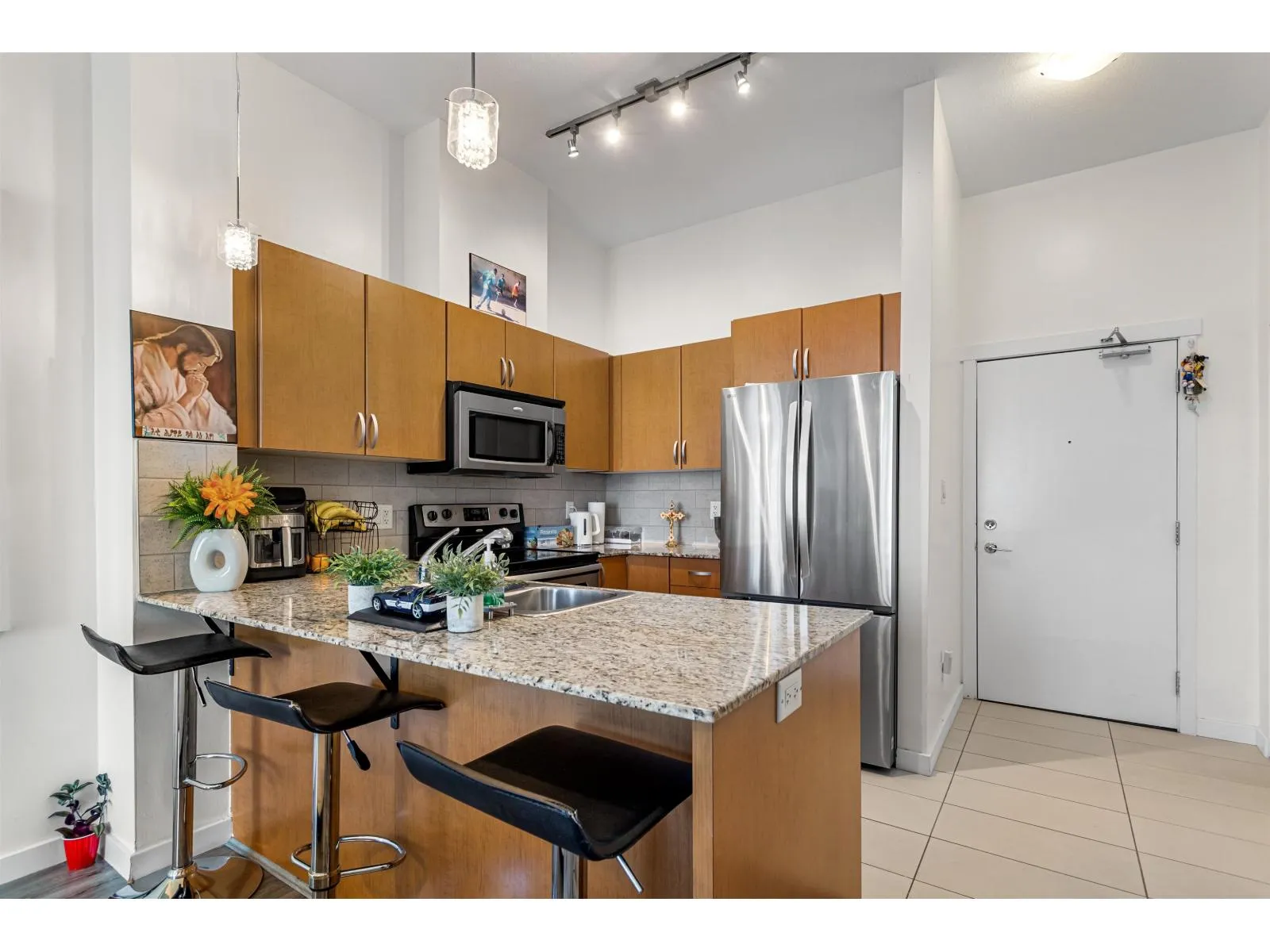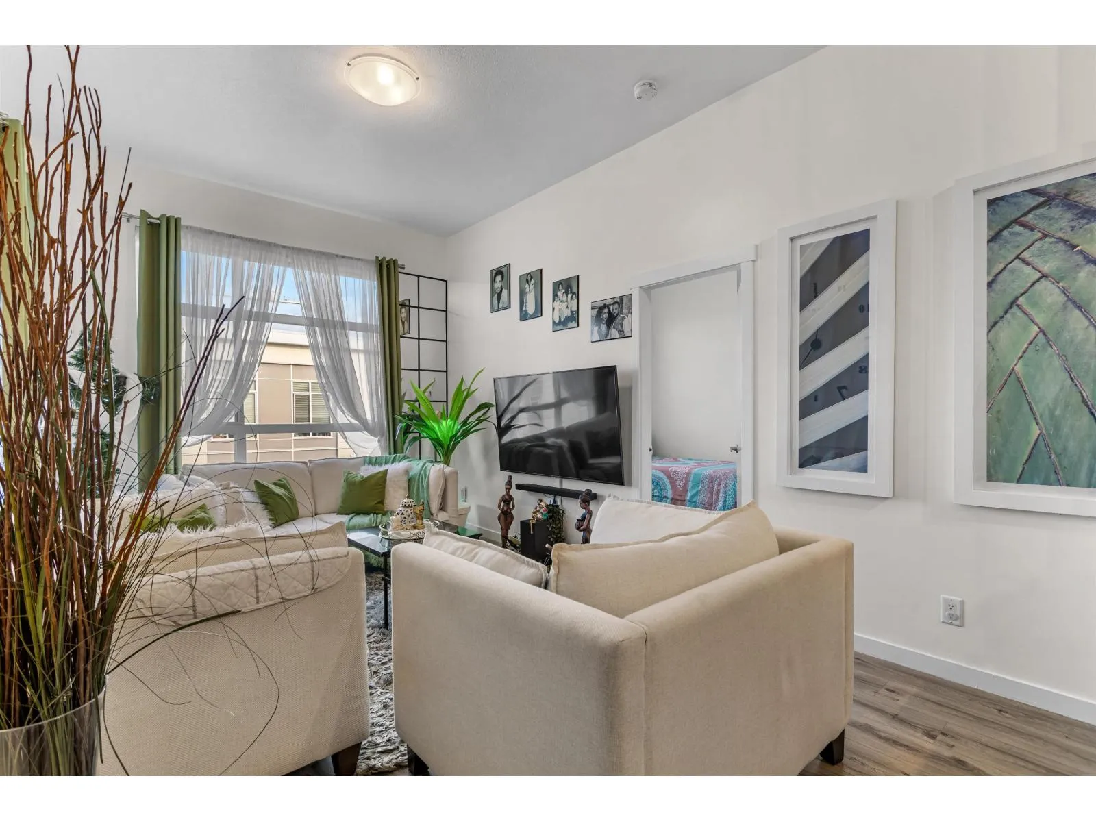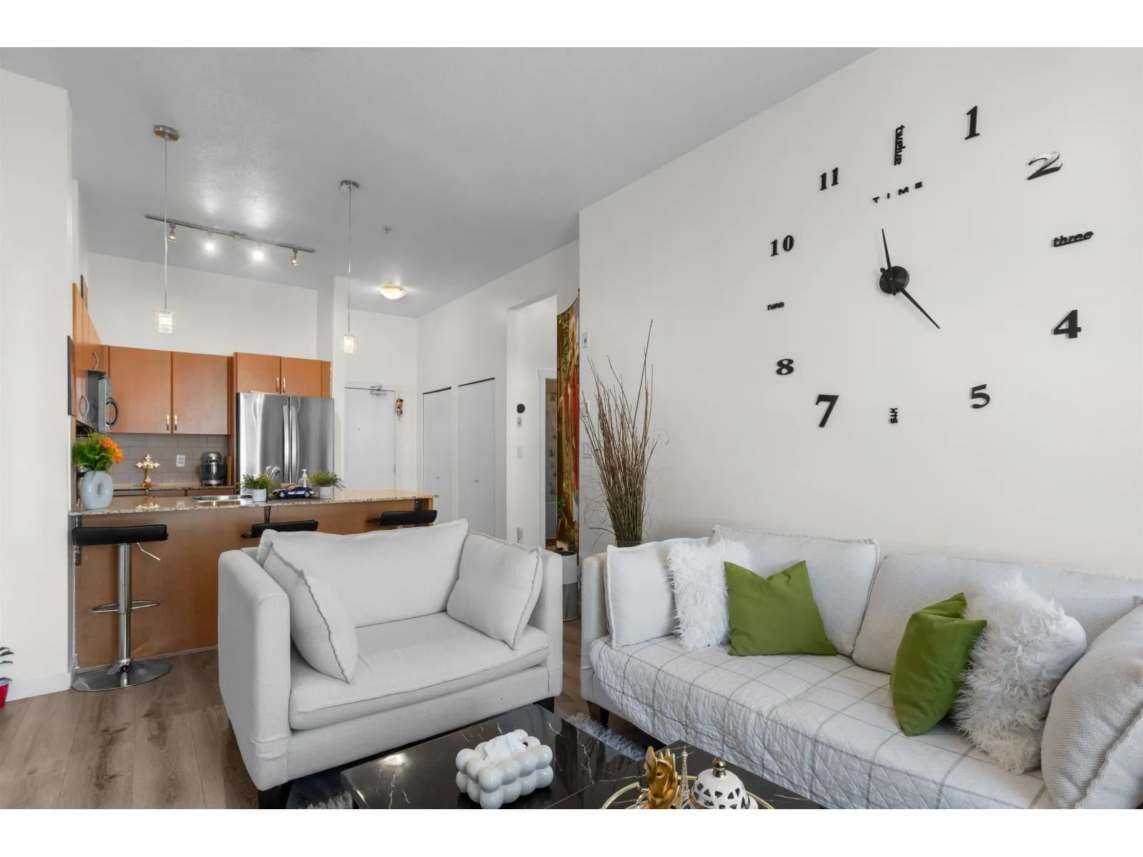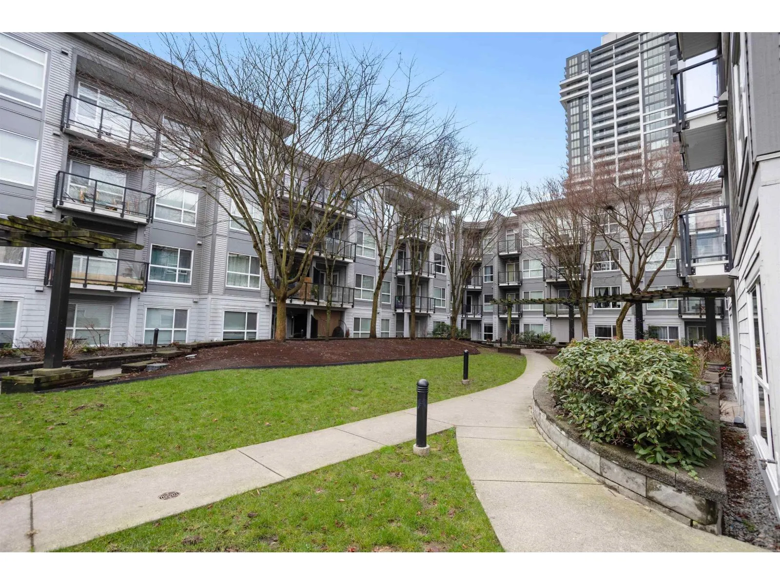 Welcome to The Quattro - a bright, top-floor two bedroom home that offers space, privacy, and exceptional long-term value in the heart of Surrey's rapidly growing City Centre. This well-laid-out residence features soaring 10-foot ceilings, a clean open-concept design with no wasted space, and a quiet north-facing exposure overlooking the inner courtyard. Natural light fills the living area while maintaining a calm, private feel, making it equally appealing for comfortable daily living or as a smart investment property. The home has been thoughtfully updated with three-year-old flooring, stainless steel appliances, a new refrigerator, and large windows that were replaced throughout the building in 2024. The kitchen flows seamlessly into the living and dining area, while the deep soaker tub and in-suite laundry add everyday comfort. A generous covered patio extends your living space outdoors, and the balcony upgrade has already been completed and paid for by the seller. The Quattro is a rental-friendly and pet (id:27476)