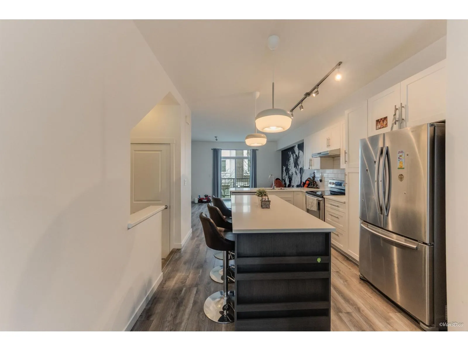 Bright and airy, this light-filled 3 Bedroom townhome showcases open-concept living spaces enhanced by oversized windows. Pristine bathroom include luxurious primary ensuite with expansive walk-in showers and dual vanities. Gourmet kitchen offers stainless steel appliances and breakfast-bar island, complemented by in-suite laundry and large balcony accessed through sliding glass doors. Enjoy peaceful outdoor living on a semi-private patio with no direct facing neighbours. Ideally located next to Cambridge Elementary, the YMCA, Fresh St. Market, and a wide range of shopping amenities. Don't miss this opportunity! (id:27476)