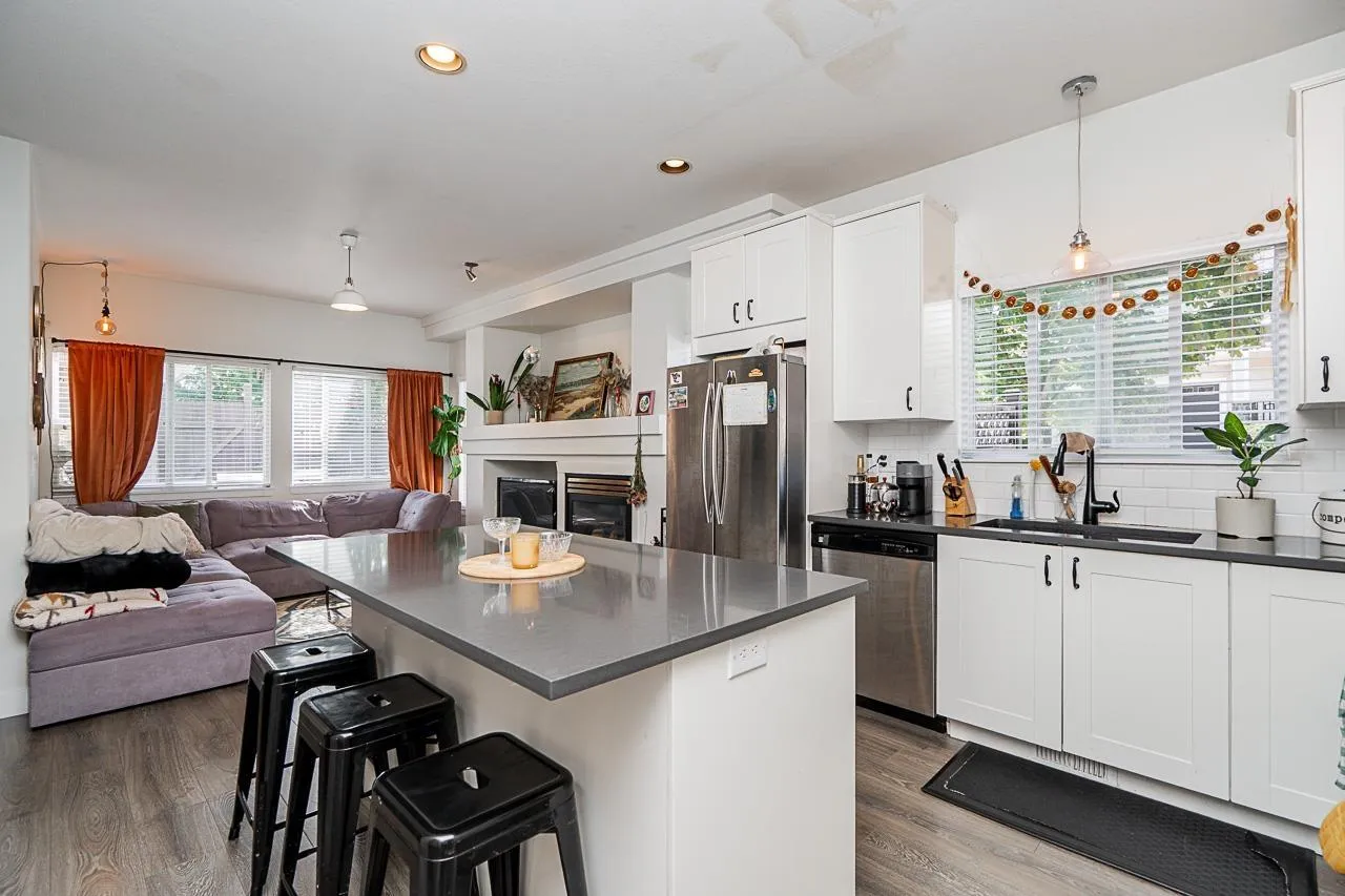 West Cloverdale 3-level, 2,516 sq.ft. half duplex on a large corner lot! This home offers an incredible blend of modern design and functional living space. Featuring 3 bedrooms, 4 bathrooms, and lovely finishes throughout, it's the perfect family home! Updated wide-plank flooring that flows seamlessly throughout the main living areas. The open-concept floor plan is flooded with natural light and ideal for both family gatherings and entertaining with an updated kitchen with white shaker cabinetry and new countertops. The large rec room in the basement includes a wet bar, wine fridge and sink plus separate entrance offering suite potential for added flexibility. Bonus 3 private parking stalls and additional street parking and walking distance to schools, parks, coffee shop and bus route. (id:27476)