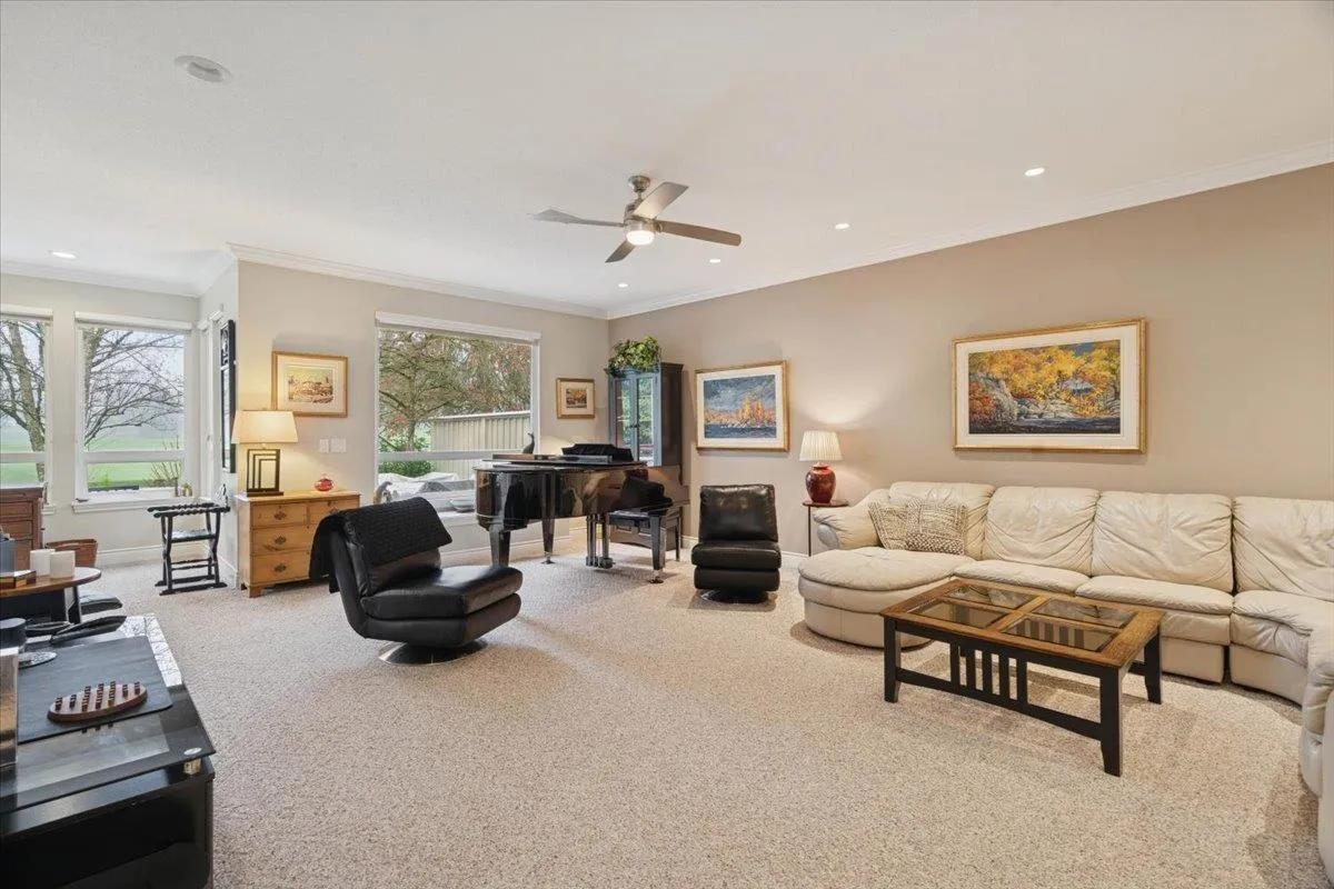 Welcome to Deer Run in prestigious Morgan Creek. This 3,378 sq ft executive-style corner townhome offers the scale and privacy of a single-family home and the rare opportunity to own a townhome backing onto the Morgan Creek Golf Course. Large windows fill the home with natural light and golf course views. Main floor features separate dining, a breakfast nook, living and family rooms with wet bar, and bright study overlooking the course. Second-floor primary retreat is the only bedroom up, with a spacious ensuite and jacuzzi. Basement includes bedroom, office, and large theatre/entertainment room. Enjoy nearly 500 SF patio with electric awnings and BBQ space, perfect for private summer entertaining. Radiant heat on the main and full A/C throughout. Meticulously maintained. (id:27476)
