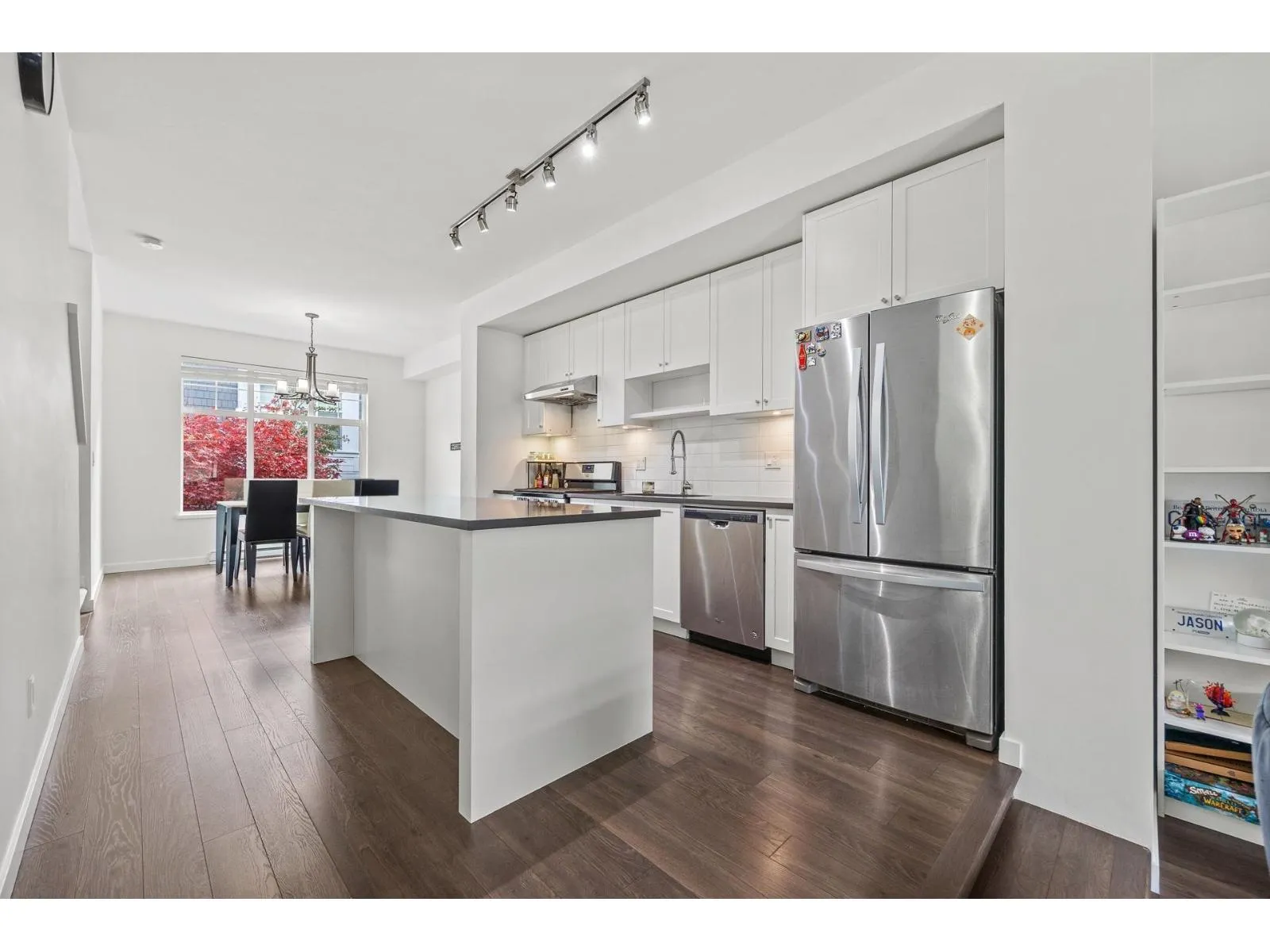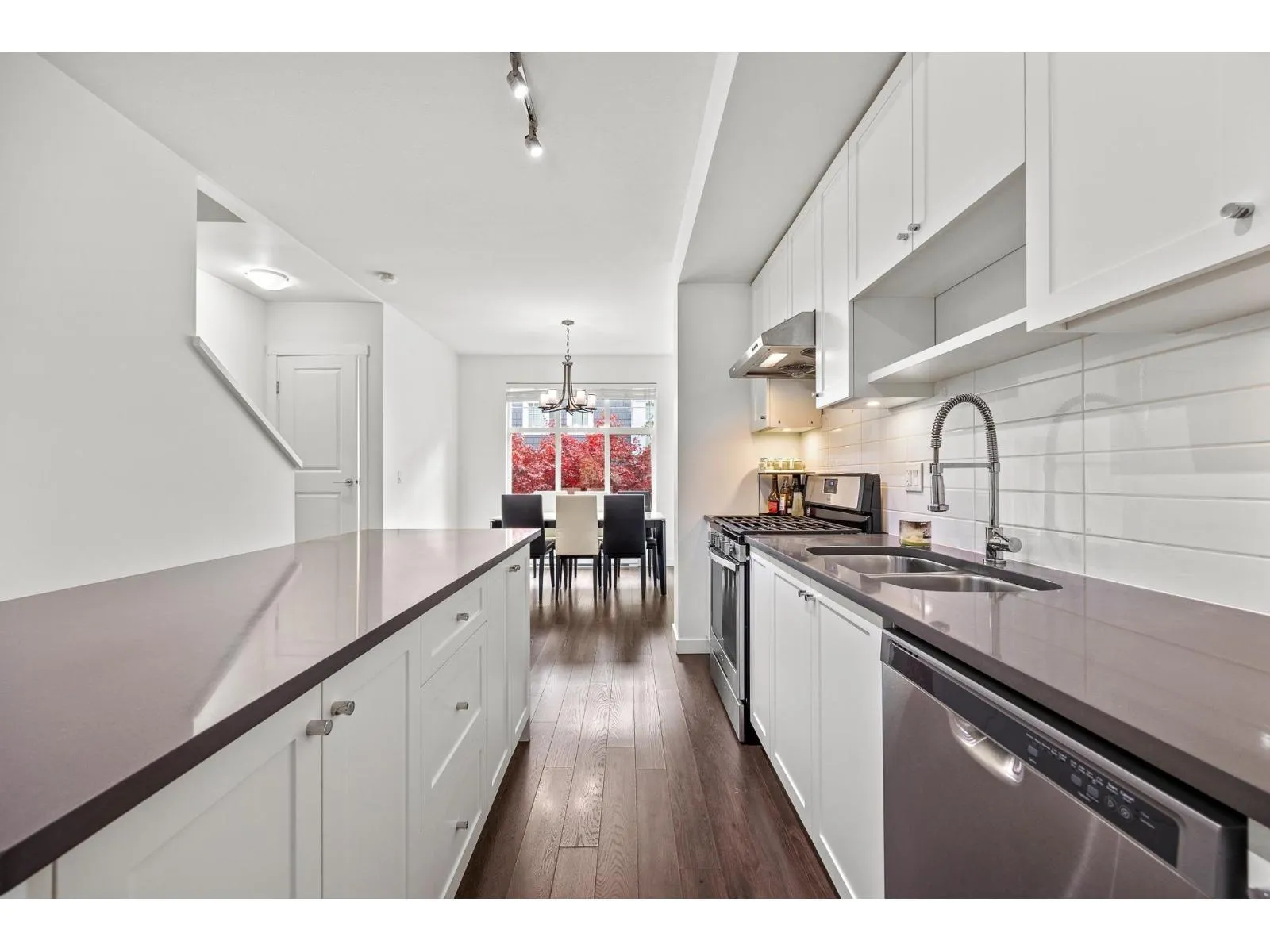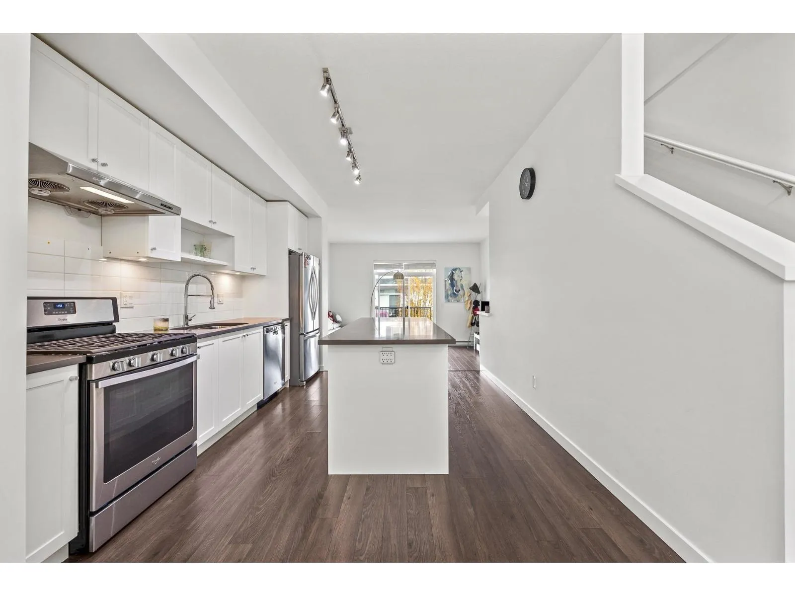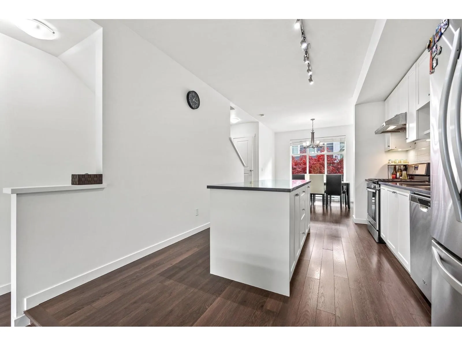 A lovely townhome located in the heart of South Surrey-White Rock. This spectacular, spacious, bright, and quiet home features 4 bedrooms and 3 bathrooms, along with 2 covered parking stalls. The main level offers a split floor plan with separate kitchen, dining, and living areas. The living room boasts 10-foot ceilings and oversized windows, providing an abundance of natural light. The modern kitchen features a central island, quartz countertops, stainless steel appliances, and a gas range. Three bedrooms, including the primary bedroom, are located on the upper level. The fourth bedroom is on the ground level (no closet), ideal for a home office or guest room. South-facing front yard and a large balcony with a BBQ gas outlet. Conveniently located just steps from bus routes 350, 351, 321, and 375. Walking distance to Sunnyside Park, shopping malls, and schools. (id:27476)