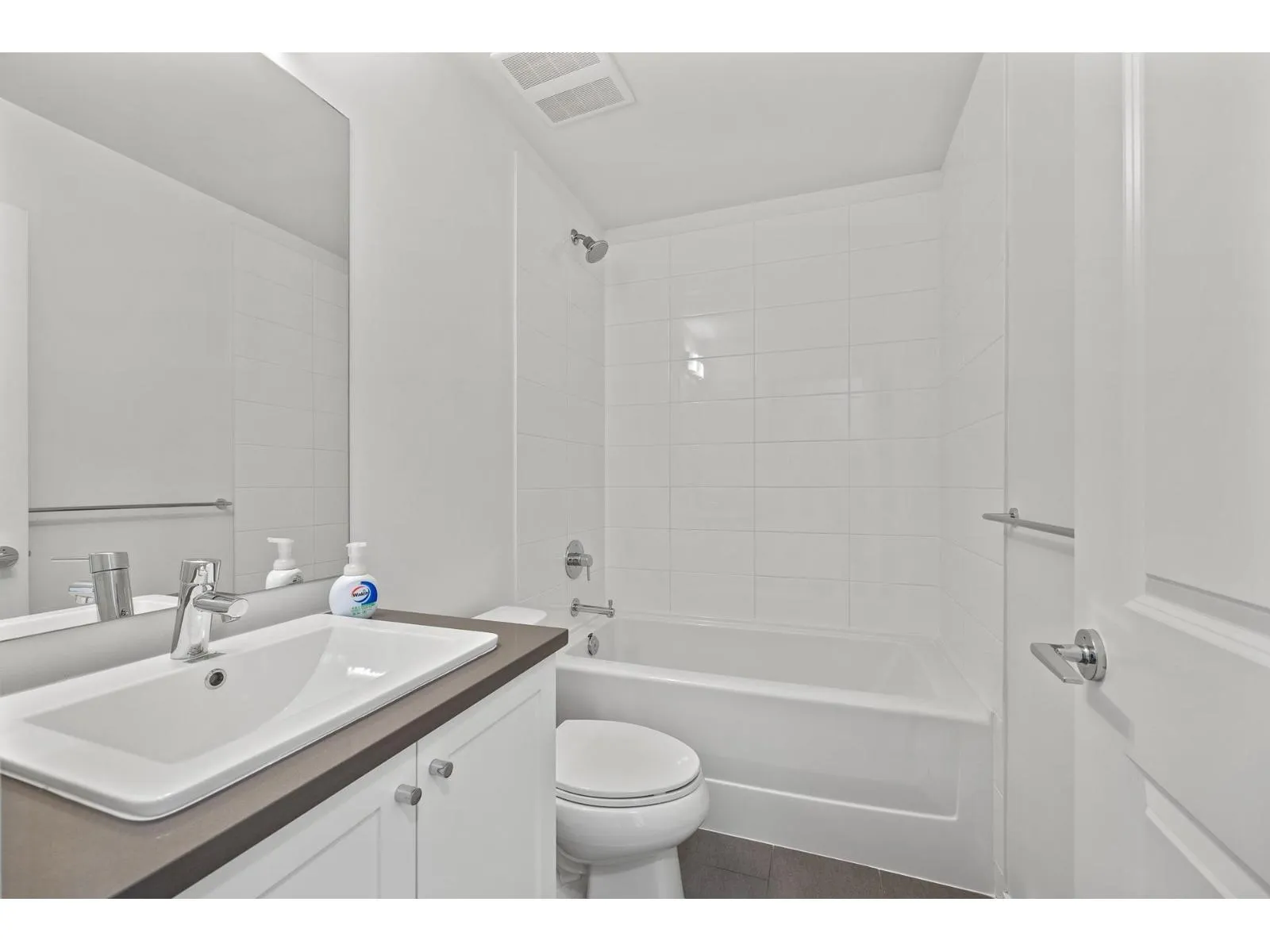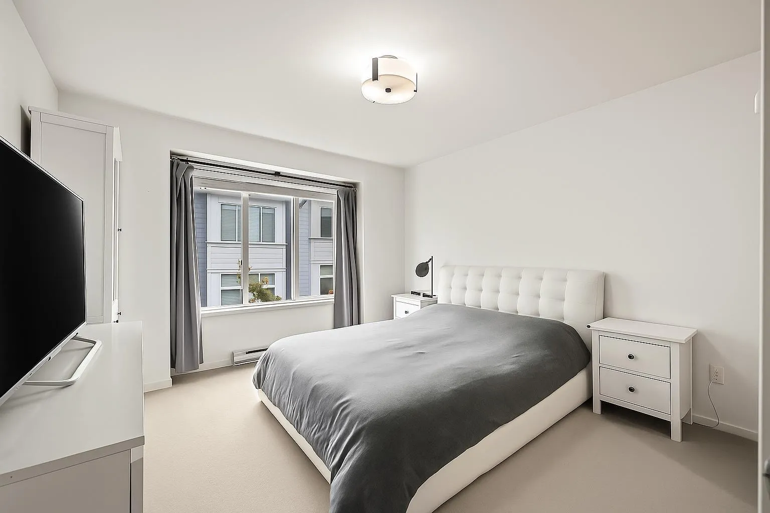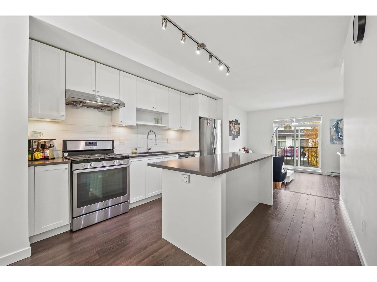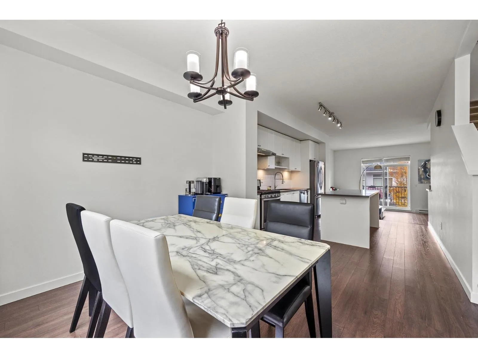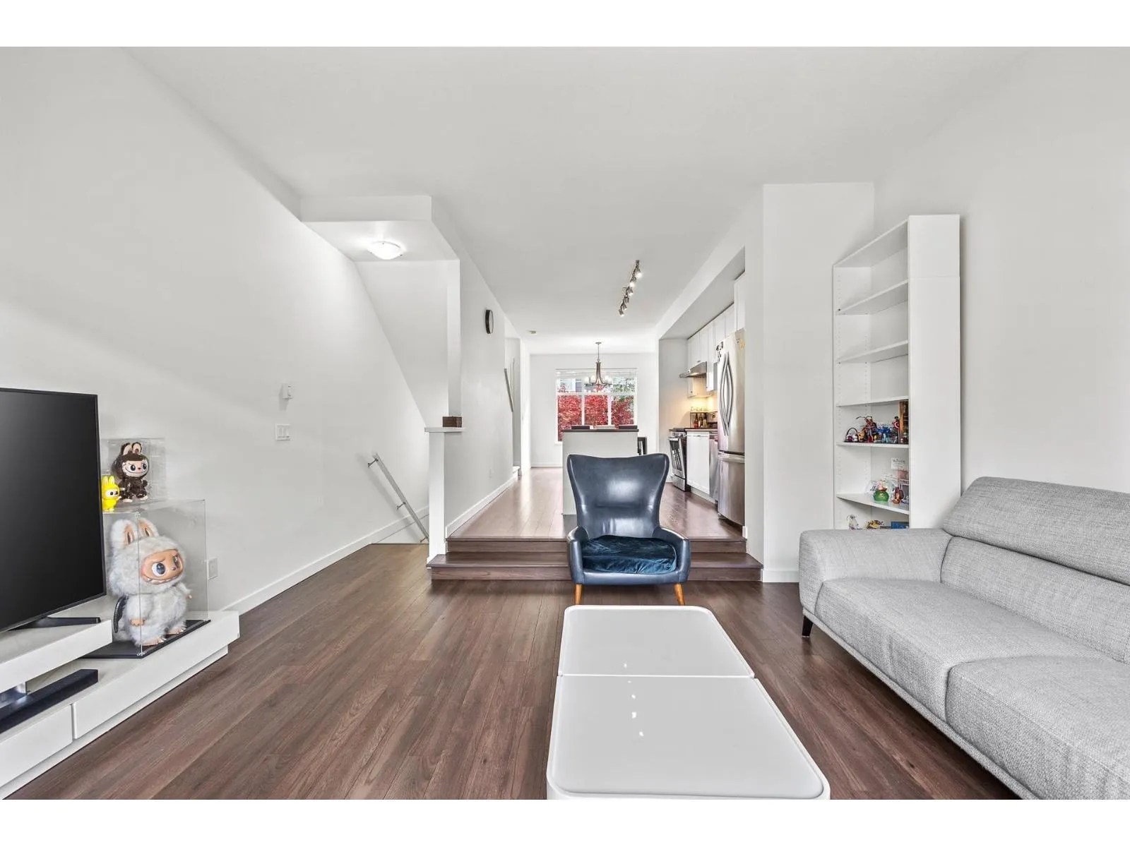 A lovely townhome located in the heart of South Surrey-White Rock. This spectacular, spacious, bright, and quiet home features 4 bedrooms and 3 bathrooms, along with 2 covered parking stalls. The main level offers a split floor plan with separate kitchen, dining, and living areas. The living room boasts 10-foot ceilings and oversized windows, providing an abundance of natural light. The modern kitchen features a central island, quartz countertops, stainless steel appliances, and a gas range. Three bedrooms, including the primary bedroom, are located on the upper level. The fourth bedroom is on the ground level (no closet), ideal for a home office or guest room. South-facing front yard and a large balcony with a BBQ gas outlet. Conveniently located just steps from bus routes 350, 351, 321, and 375. Walking distance to Sunnyside Park, shopping malls, and schools. (id:27476)