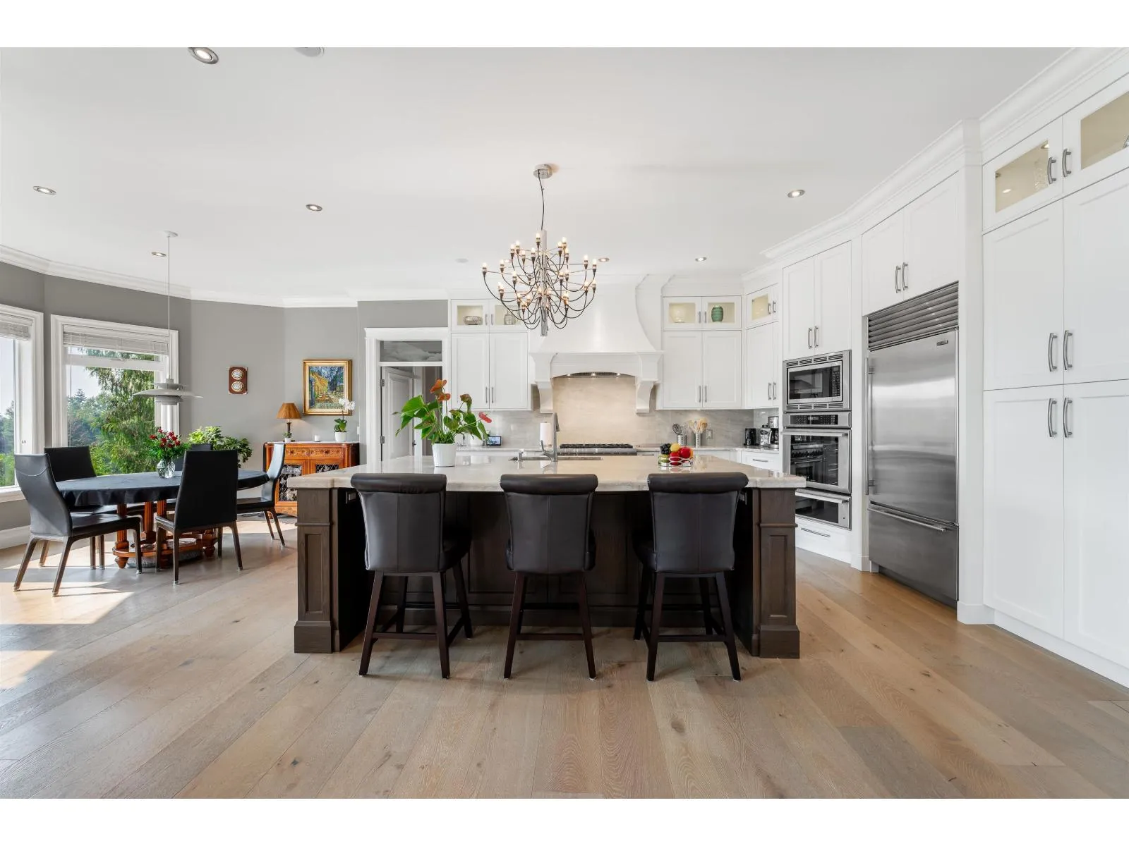 An exceptional gated estate offering rare privacy and elevated luxury in one of Cloverdale's most coveted settings. Set on a sprawling 20,000 sq. ft. lot, this custom residence spans over 6,100 sq. ft. of refined living space, thoughtfully designed for sophisticated entertaining and effortless daily living. The designer chef's kitchen features premium appliances, , and an oversized statement island. A serene main-level primary retreat includes a spa-inspired en-suite and walk-in closet. Expansive living and dining areas extend seamlessly to the outdoor, private terraces and gardens to enjoy with family or guests. Exceptional bonus 2,500+ sq. ft. flex space with parking for up to 10 vehicles. A truly distinguished offering close to the most sought after top schools, parks, and amenities. (id:27476)