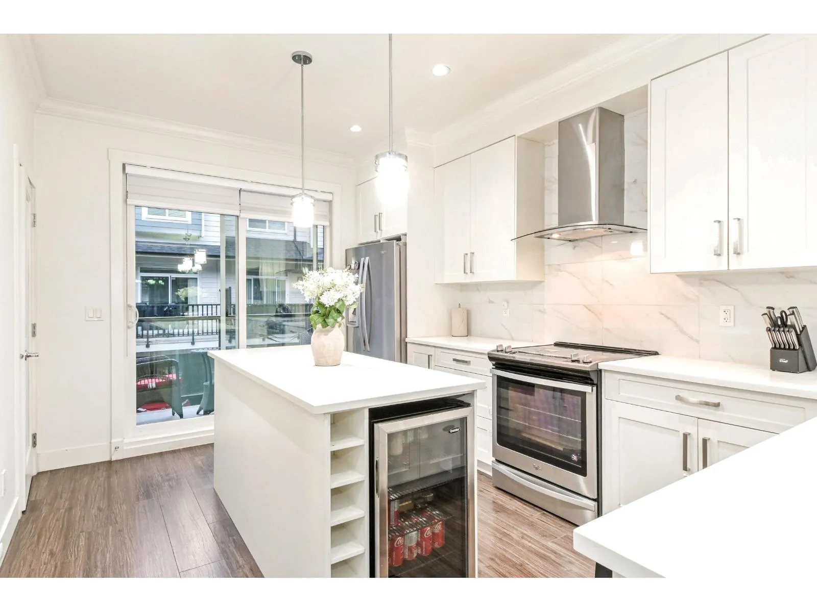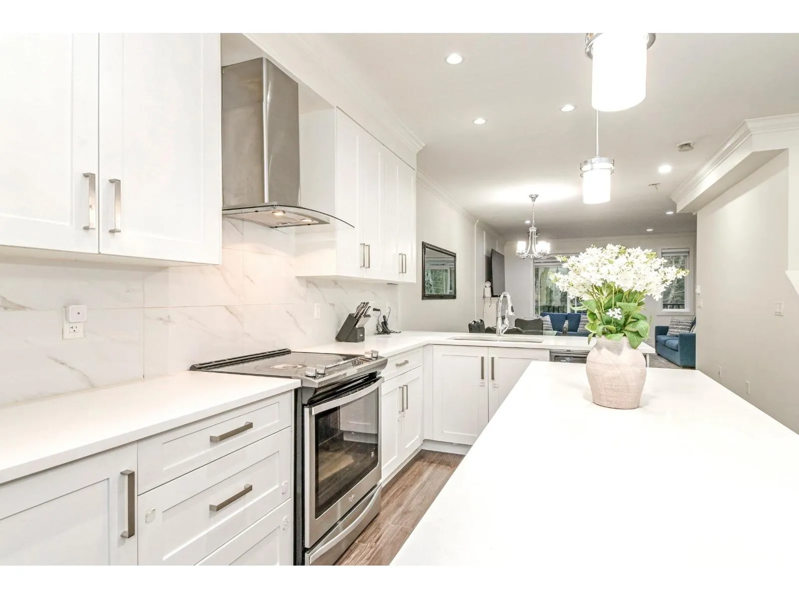 Welcome to beautiful Panorama West Coast Living! This stunning townhouse offers 3 bedrooms plus a den (or 4 bedrooms) and 4 bathrooms, thoughtfully designed for comfort and style. The chic, all-white kitchen features soft-closing cabinets, quartz countertops, and modern finishes. Bright and sun-filled, the home boasts two balconies and backs onto a tranquil greenbelt, providing privacy and fresh air. Recent upgrades include new carpeting on the stairs and new blinds on the main floor. The lower-level den/ bedroom with a full bathroom is currently rented, making it an excellent mortgage helper. (id:27476)