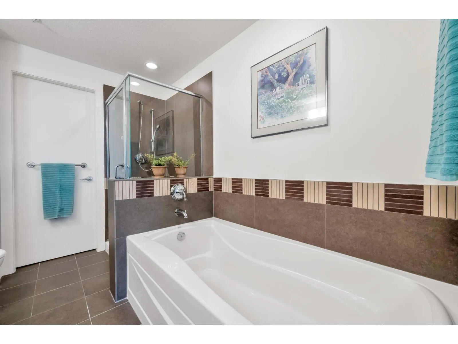 Located in prestigious St. Andrews at Northview, this one-of-a-kind end-unit condo shares no walls with neighbours. With 1,487 sq ft of living space, including 2 bedrooms, plus a den and a full-sized dining room, this home offers space for entertaining and living alike. Enjoy a large 325 sqft private covered patio overlooking fountains and lush gardens. In excellent condition with new carpet throughout, this home is move-in ready. This home offers a spacious primary suite that fits a king-sized bed and features deck access, a walk-in closet, double sinks, a soaker tub, and a separate shower. Parking spots are just steps from the elevator and a short walk to the unit. Amenities include walking trails, bike storage, gym, hot tub, pool & clubhouse. (id:27476)