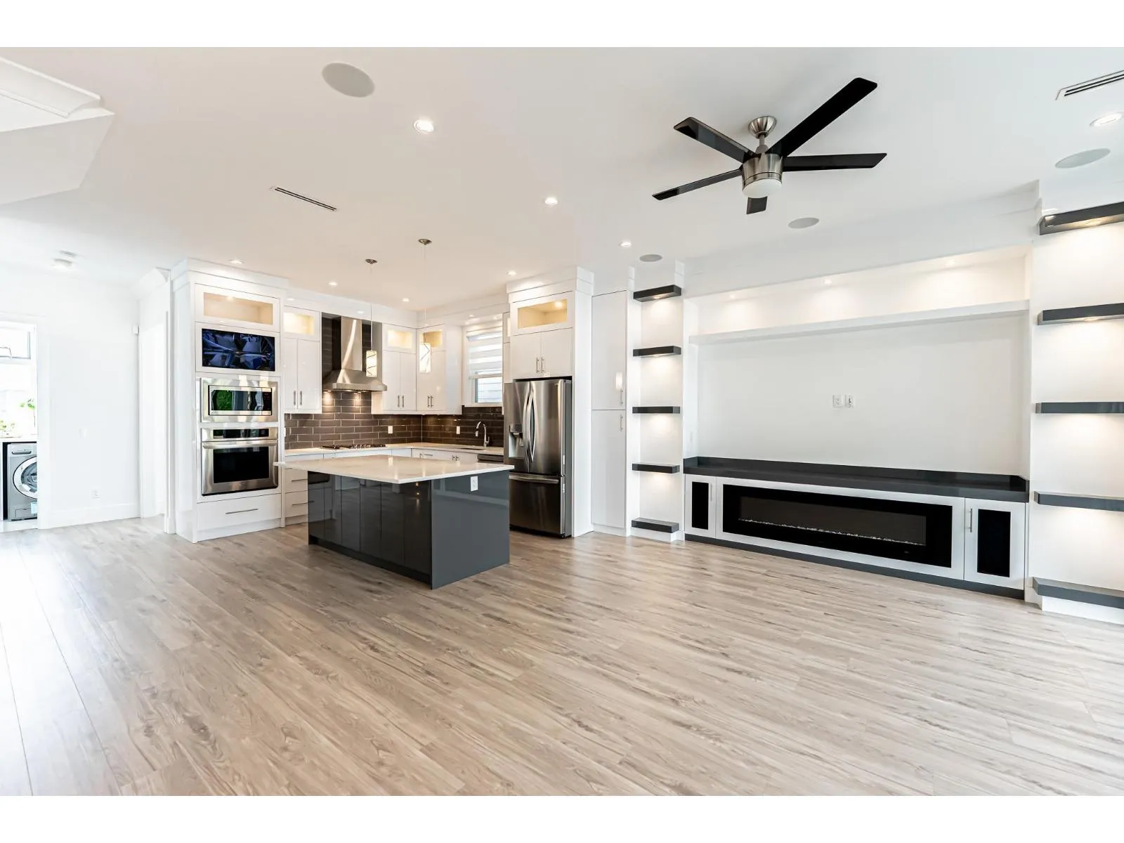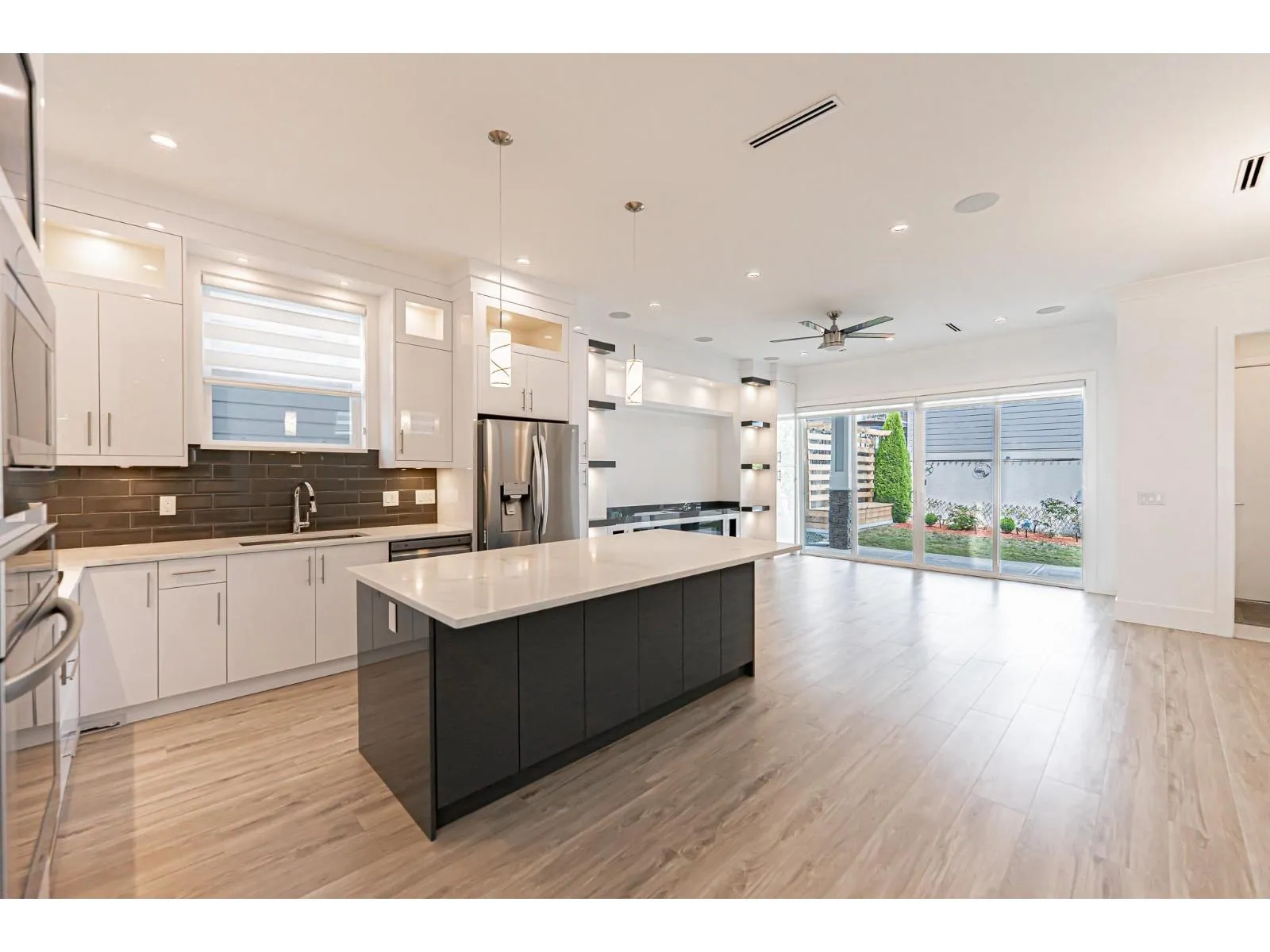 Welcome to this LIKE NEW 8 BDRM & 6 FULL BATH home. Features include 10' ceiling and full bath on main floor, good soundproofing, cost-saving radiant floor heating & AC, security sytm, contemporary kitchens w/ premium like-new appliances, large island & lots cabinet storage. Built-in speakers in living room and patio. Patio doors slide WIDE OPEN W/ SCREEN to become a wonderful hosting venue w/ open space. It also includes a fully-appointed 2 BDRM LEGAL suite as a good mortgage helper. 2 ensuite BDRMs on upper level. Double garage w/ EV ready. Just minutes' drive away from the top-ranking SOUTHRIDGE SCHOOL, brand new public school Ta-talu Elementary, Grandview Heights Aquatic Centre, shopping mall which has almost everything you need. 3 minutes access to Highway 99. OH Jan 24&25, 2-4pm. (id:27476)