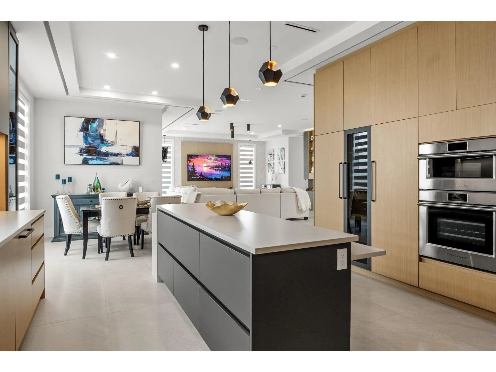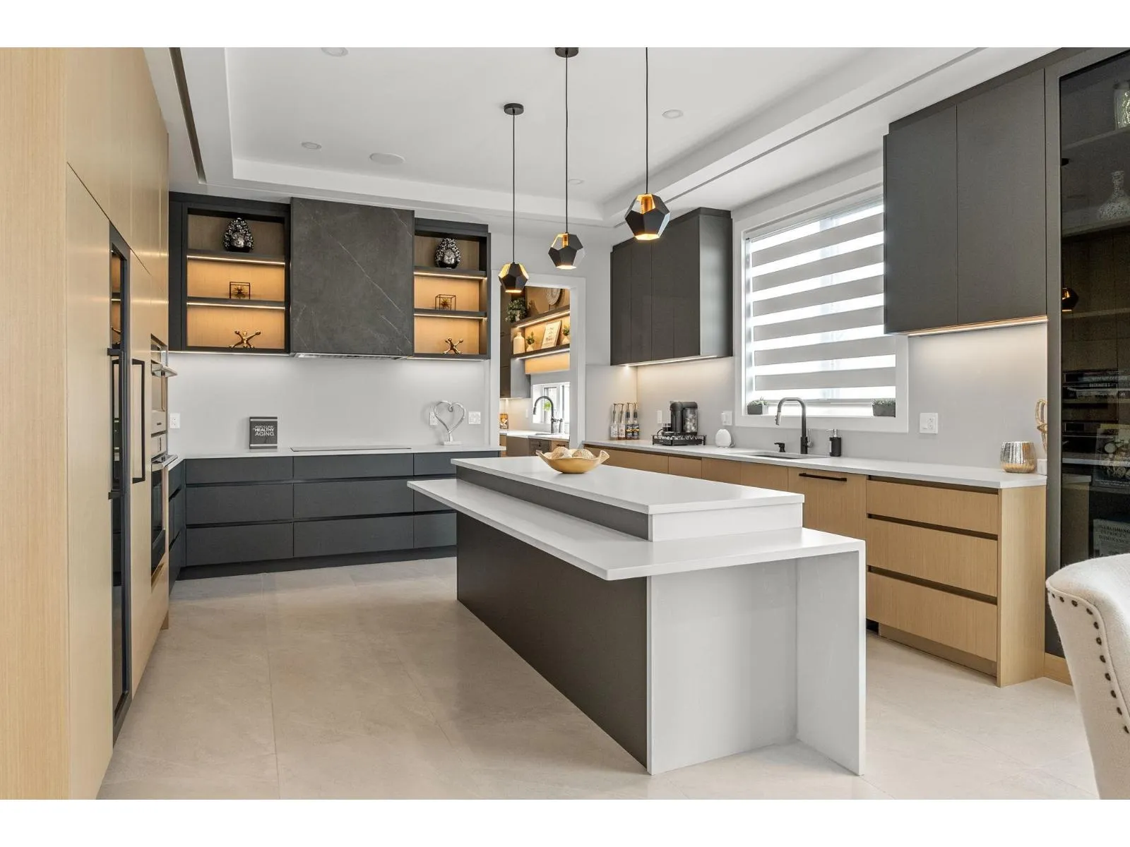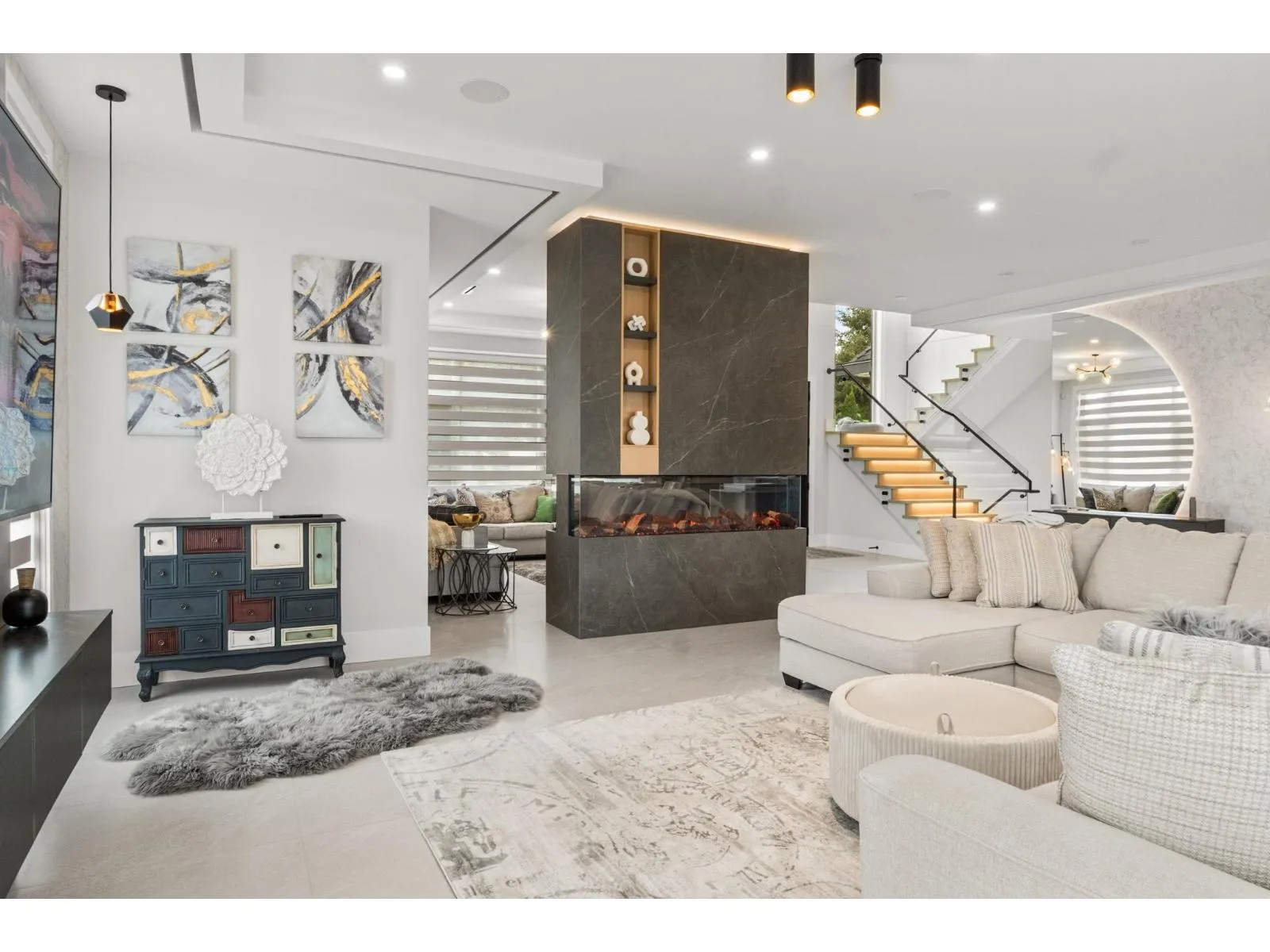Stunning view home overlooking Mount Baker and Northview Golf Course, offering luxury living with advanced smart-home features. Includes smart locks on main entry and garage, Fisher & Paykel and Miele panel-ready appliances, radiant in-floor heating with individual room zoning, Daikin central A/C, and a tankless hot water system. High-end finishes feature Cosentino countertops, a double-sided porcelain slab fireplace, smart toilets, remote blinds, and central vacuum with hide-a-hose. Designed with 2+2 bedroom suites, each with its own laundry and dishwasher-ideal for extended family or investment. Private lane access, ample parking, and an insulated heated garage with pet wash and second laundry rough-ins. Security cameras and Hikvision doorbell included. (id:27476)