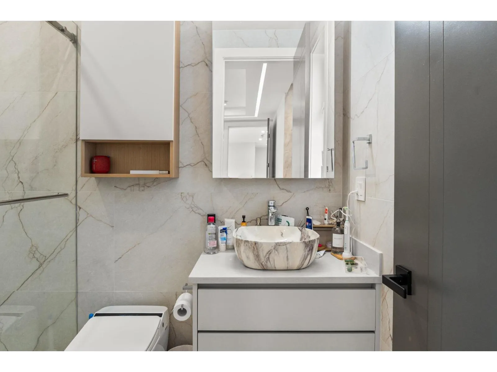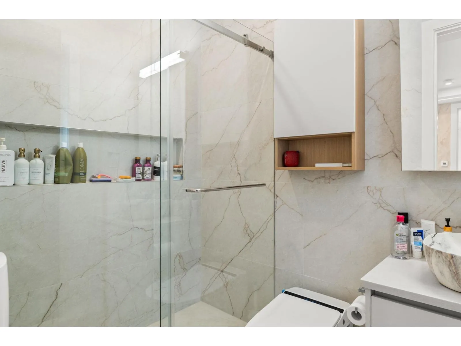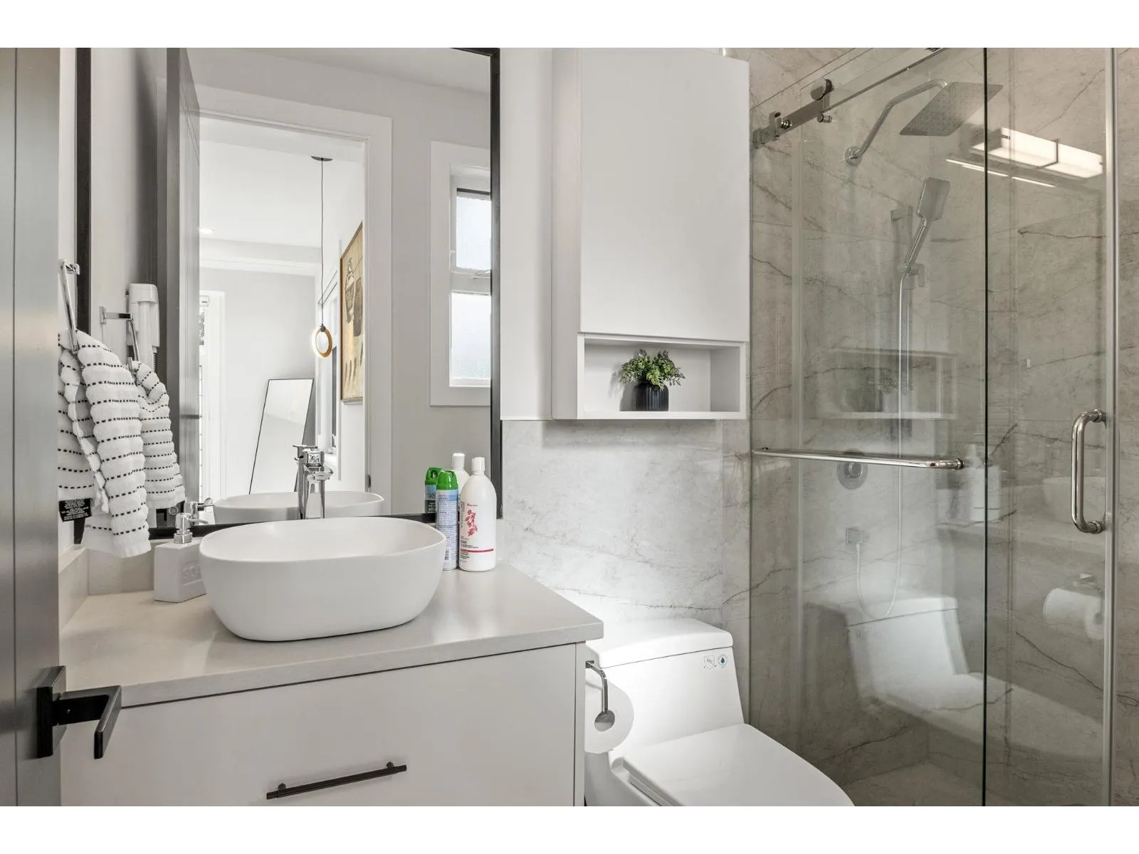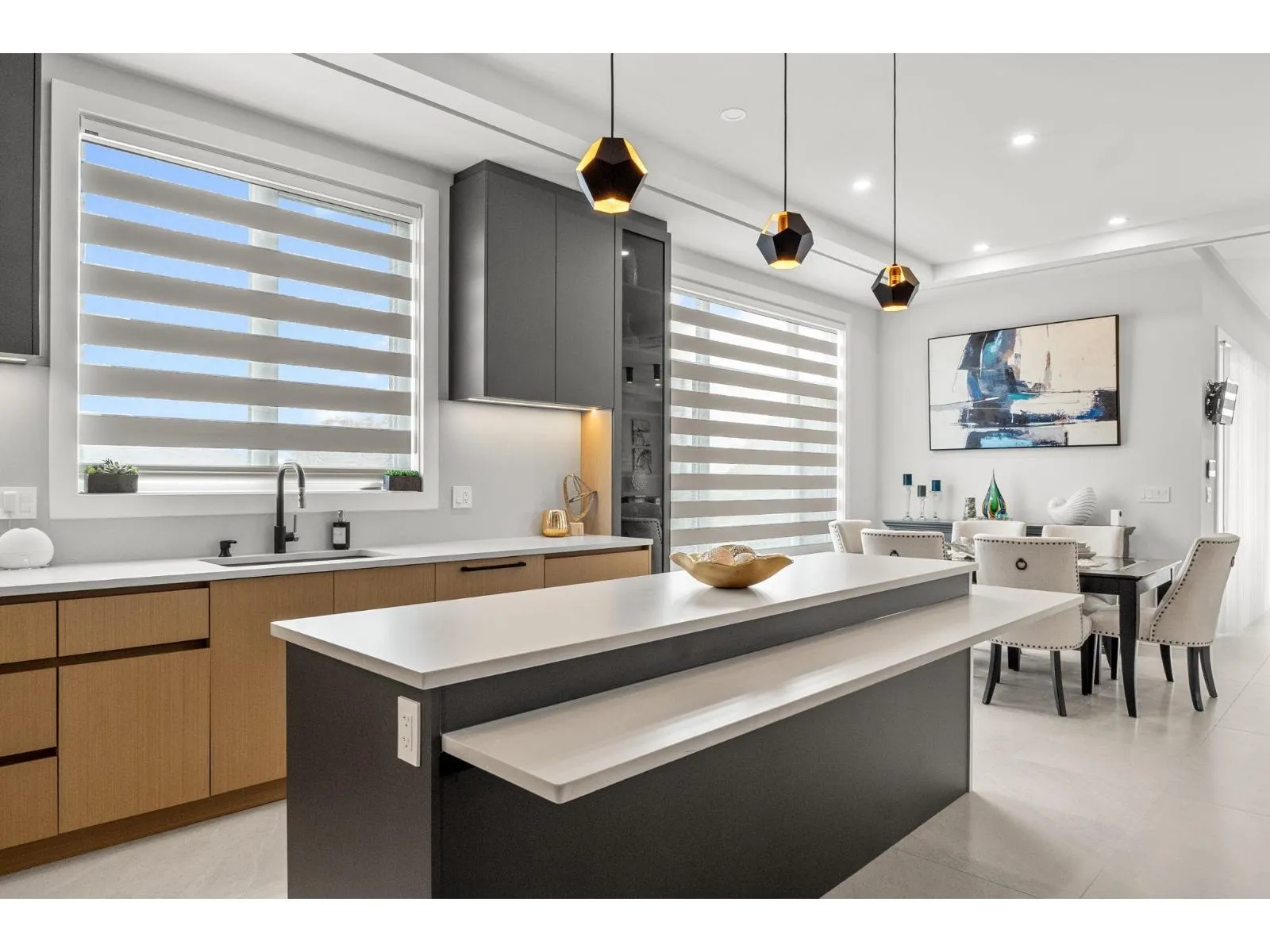 Stunning view home overlooking Mount Baker and Northview Golf Course, offering luxury living with advanced smart-home features. Includes smart locks on main entry and garage, Fisher & Paykel and Miele panel-ready appliances, radiant in-floor heating with individual room zoning, Daikin central A/C, and a tankless hot water system. High-end finishes feature Cosentino countertops, a double-sided porcelain slab fireplace, smart toilets, remote blinds, and central vacuum with hide-a-hose. Designed with 2+2 bedroom suites, each with its own laundry and dishwasher-ideal for extended family or investment. Private lane access, ample parking, and an insulated heated garage with pet wash and second laundry rough-ins. Security cameras and Hikvision doorbell included. (id:27476)