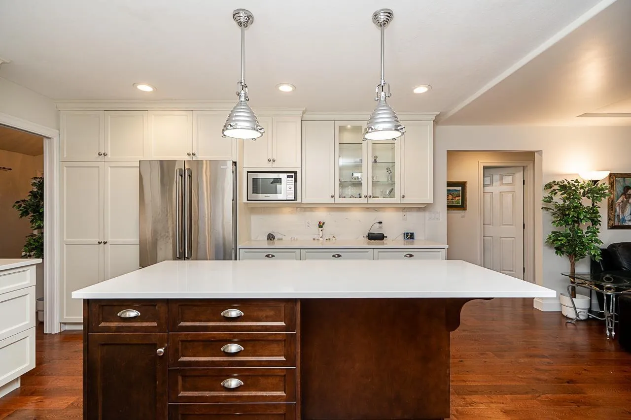 This exceptional 2-storey home in Fraser Heights is situated across from green space and Northview Park, on a quiet corner cul-de-sac lot. The home has been updated and features a chef's kitchen with ceiling-height cabinetry, quartz countertops, a large island with breakfast bar, and high-end stainless steel appliances, including a dual-fuel range. The spacious main floor offers hardwood flooring throughout, vaulted ceilings, a bright family area open to the kitchen, and access to a cozy backyard-perfect for entertaining. A large den and an updated powder room complete the main level. Upstairs features hardwood flooring in the hallways and a massive primary bedroom with ensuite. Dogwood Elementary and Fraser Heights Secondary catchment. Easy access to Hwy #1 & Fraser Heights Rec Centre. (id:27476)