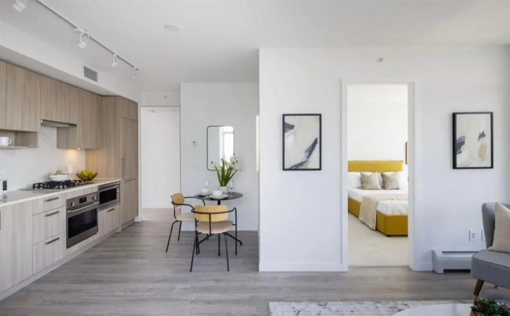This newly brand-new 2-bedroom, 2-bathroom corner unit offers breathtaking mountain and city views, complemented by a generous 390 sq. ft. wrap-around balcony-one of the largest in the building. The open-concept design maximizes space, with large windows that fill the home with natural light. The gourmet kitchen is equipped with premium appliances and plenty of counter space, making it perfect for cooking and entertaining. Enjoy exceptional amenities such as a fitness center, lounge and party room, skylounge, and a rooftop BBQ area. A perfect blend of style, convenience, and modern luxury (id:27476)