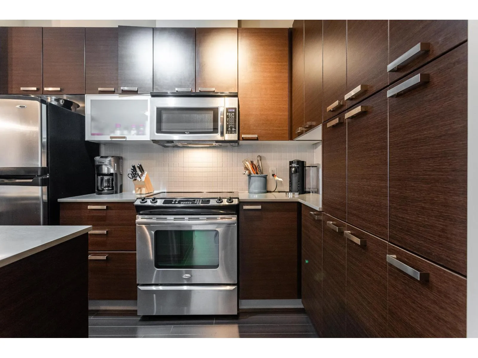 Welcome to Calera at Clayton Village! This stunning top-floor, west-facing condo offers 777 sq ft of thoughtfully designed living space, featuring 2 bedrooms, a den & 2 bathrooms. Enjoy breathtaking city views from your covered patio, perfect for unwinding at the end of the day. Convenient location w/shopping, dining, schools & future SkyTrain access steps away. The open-concept layout boasts 9' ceilings, sleek quartz countertops, S/S appliances & lots of storage. The primary bedroom is a true retreat w/spa-like ensuite, complete with a glass shower & his & hers closets. Calera's fantastic amenities include a beautifully landscaped courtyard, a fireside lounge with a billiards table, a media room, and a fully equipped gym. Two SxS parking stalls & a storage locker too! 2 pets allowed too! (id:27476)