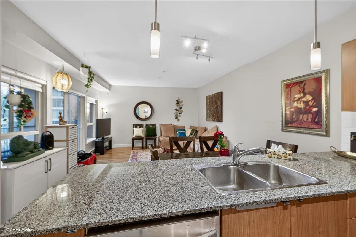 Welcome to the Gruv! This spacious 2 bedroom plus den unit features open concept layout, and over 973 sqft of living space. Bright unit, with stainless steel appliances, granite counter tops, laminate floors, and extra large outdoor balcony. Located just steps to Surrey Memorial Hospital and opposite of UBC's future Surrey campus. This home offers unbeatable convenience. With a bus stop right across the street and the SkyTrain just a 10-minute walk away, commuting is a breeze. Residents enjoy access to fitness centre, private lounge available for bookings, and a dedicated building caretaker. (id:27476)