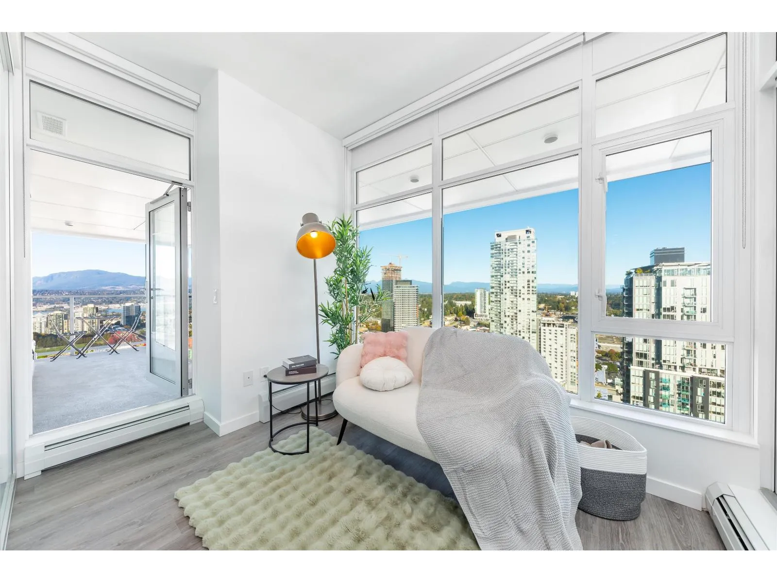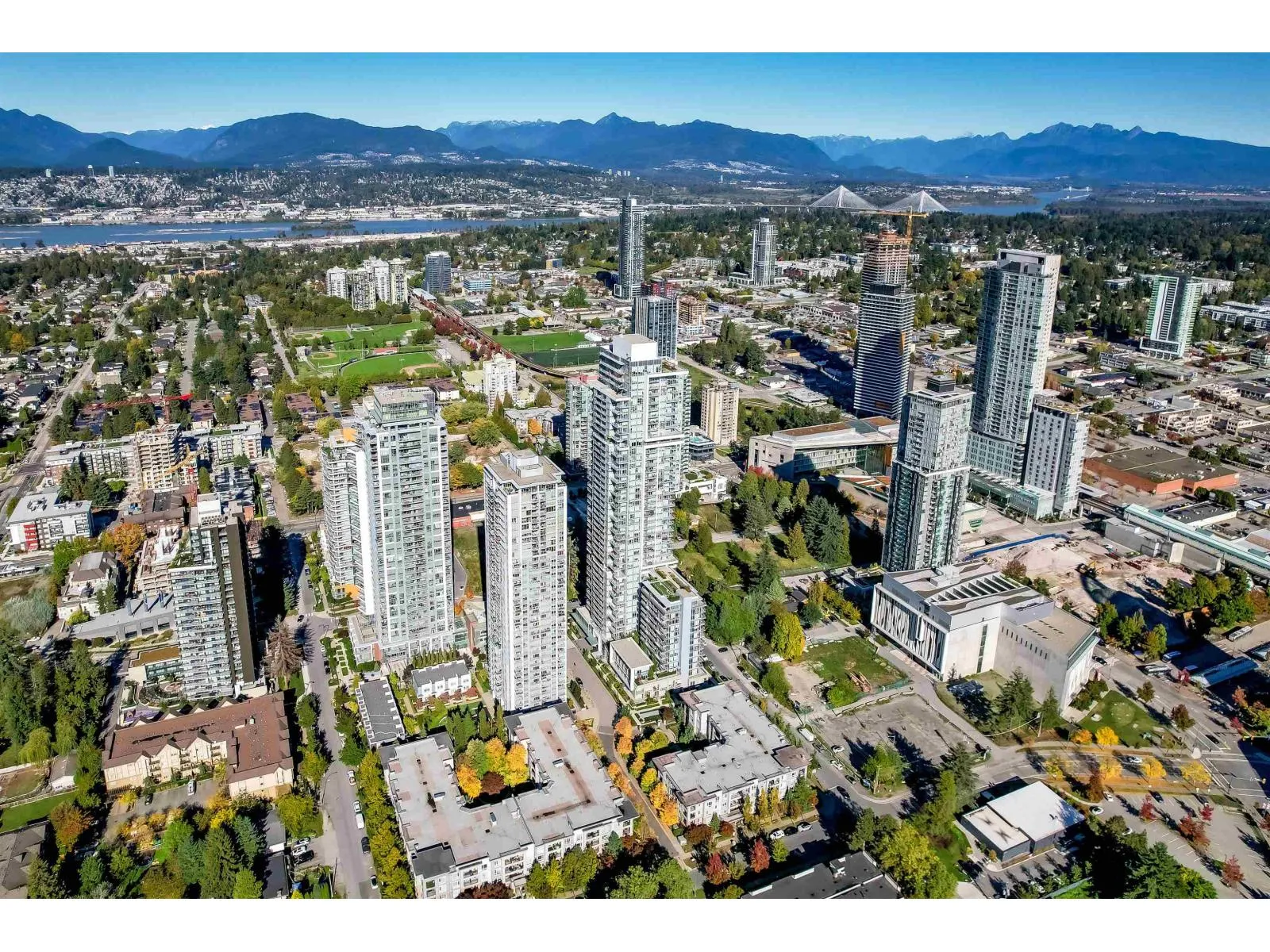 Welcome to One Central! Priced below BC Assessment! This stunning 2-bedroom, 2-bath corner unit includes 1 parking stall and a bike locker. Enjoy a bright, open layout with floor-to-ceiling windows, quartz countertops, stainless steel appliances, and a rare wraparound balcony showcasing 270° city and mountain views. Amenities feature a 44th-floor Sky Lounge, rooftop garden, gym, yoga studio, co-working space, dog park, and 24-hour concierge. Steps to SkyTrain, SFU, Central City Mall, restaurants, and Holland Park. Move-in ready with new home warranty! Open House Feb 8 1:30-4:30 pm. (id:27476)