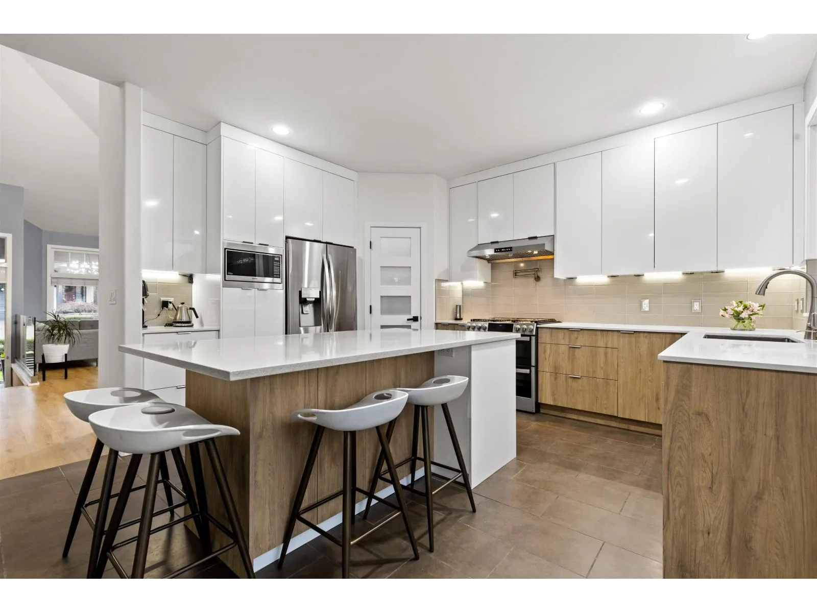 Set in the sought-after Harvest Wynd community, this Polygon-built residence has been beautifully reimagined for modern family living. Offering 5 bedrooms and 3 baths across ~2,900 sq ft, the home blends warmth, function and contemporary design. A stunning new kitchen anchors the main floor, complemented by updated bathrooms, new roof, air conditioning and covered patios that invite year-round enjoyment. Bright open living spaces, generous bedrooms and a versatile lower level provide room to grow, work and entertain. Solar panels dramatically offset energy costs-virtually net-zero with BC Hydro. Tucked on a quiet, family-friendly street near parks, transit and top catchment schools Chimney Hill Elementary & Frank Hurt Secondary, this is refined living done right. Call Now for more info! (id:27476)