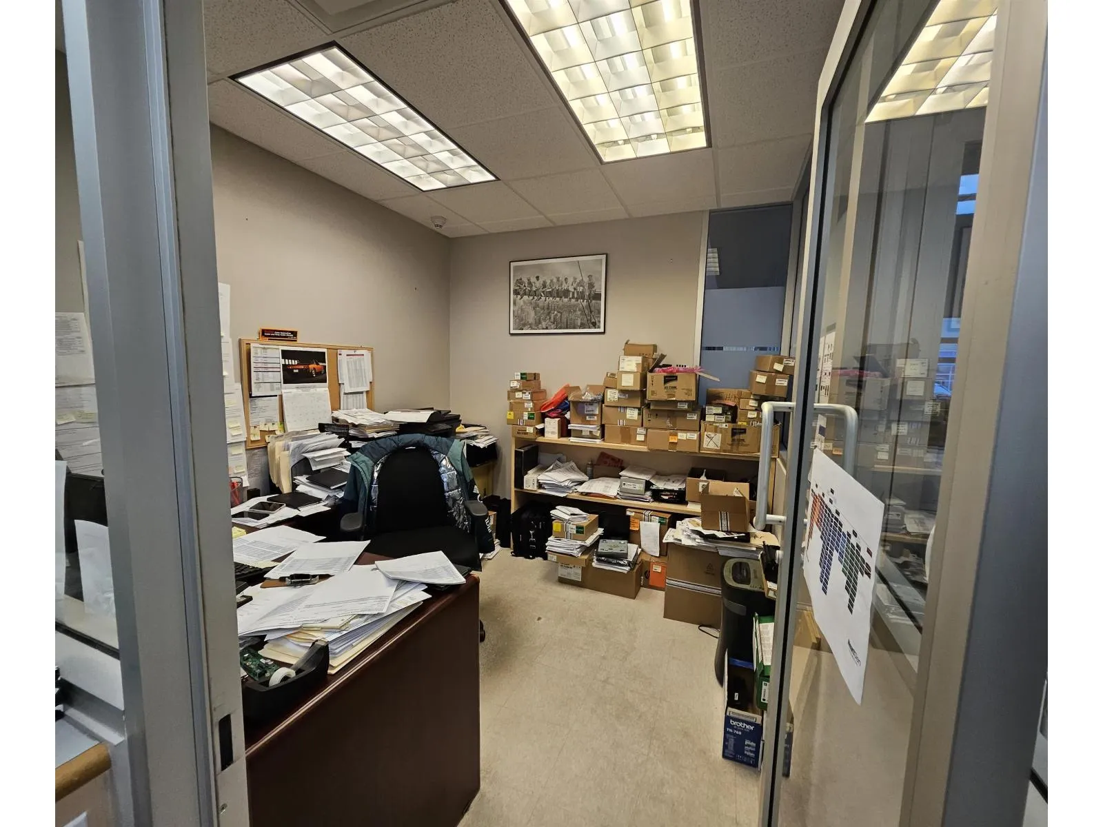 Two strata units leased together totaling 4,267 SF in a prime IL-zoned Cloverdale location. The property includes approximately 1,200 SF of warehouse space featuring 20' clear ceiling height, a 14' grade-level loading door, 3-phase power, and a 400 SF mezzanine. The office component is fully built out with 10 executive professional offices, a boardroom, and a kitchenette, offering a turnkey solution for professional, medical, or administrative users. Ideally situated near the new hospital development in Cloverdale, making it well suited for medical, health services, professional office, or light industrial uses. (id:27476)