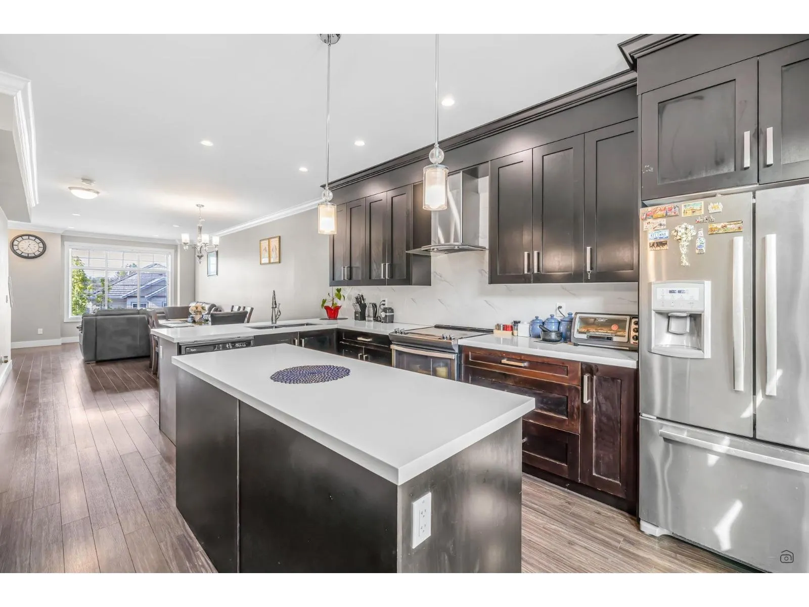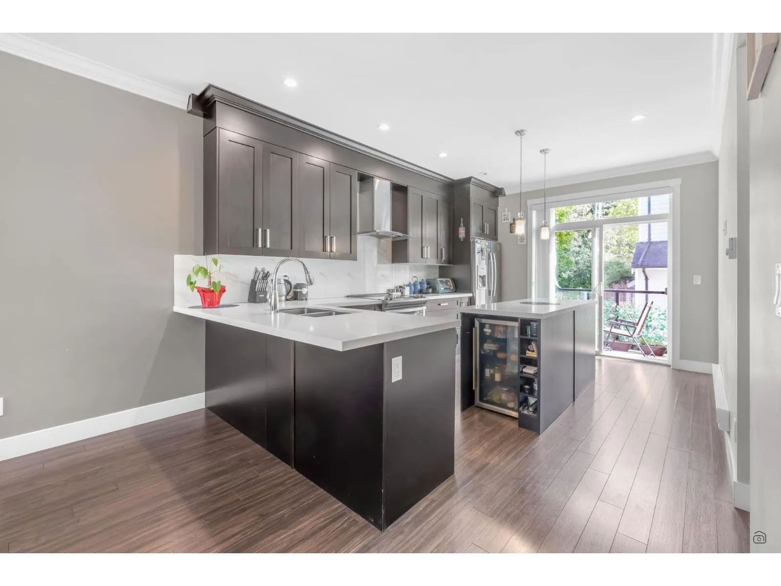 Welcome to Panorama 62....This Gorgeous, Impeccably Maintained & CORNER 4 Bed & 3.5 Bath 1,630 SQ Ft Townhouse has lots to Offer. BIG BONUS Ground level Have 1 Bedroom & FULL Bathroom. Main Floor comes with 9' Ceiling. Modern Kitchen Comes With SS Appliances, An Island With Built-in Wine Fridge, Quartz Countertops, Oodles of Cabinets for all your storage needs, Last But Not Least South facing Back with Spacious Balcony. UPPER FLOOR Features 3 Good Sized Bedrooms & 2 full Bath & Washer/Dryer. & Guess WHAT... 2 Bedrooms Comes with Speculator Mountain Views?? THIS Amazing MASTERPIECE TOWNHOUSE is a TRULY PRIDE TO OWN. Lots of Windows. Lots of Extra parking on the street. Great Location! Close to all amenities & Both level of schools. Easy access to public Transit, King George Blvd & Hwy 10. (id:27476)