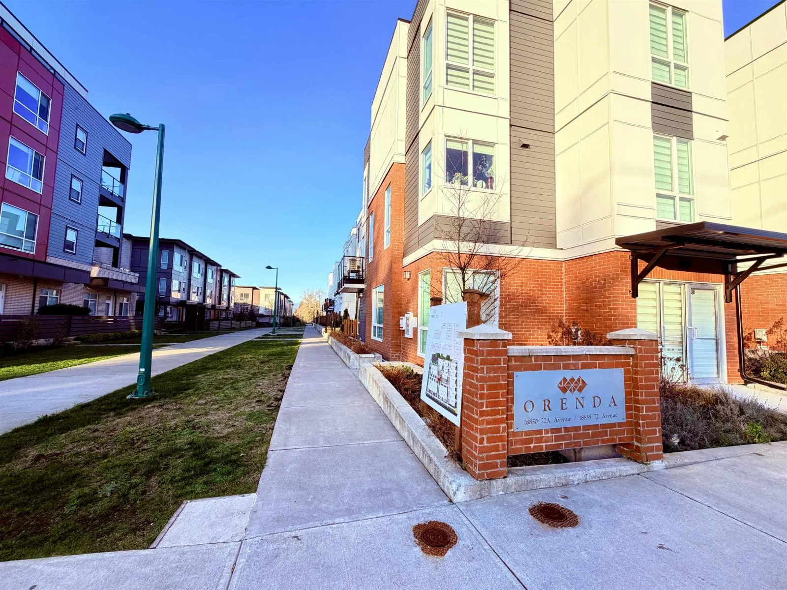Welcome to this beautiful 2-year-old townhome in ORENDA with great street front, located in the vibrant community of Clayton! This 793 sq. ft. modern, ground-level corner home offers an open-concept layout and high ceilings, creating a bright and spacious living environment. It features 2 cozy bedrooms, 1 bathroom. The stylish kitchen is equipped with quartz countertops, stainless steel appliances, and soft-closing cabinets. Enjoy year-round comfort with air conditioning. Situated close to schools, parks, shopping, and a recreation centre, this home provides both convenience and lifestyle. With low strata fees and 2 parking spots, it's an excellent choice for families or savvy investors. Don't miss this incredible opportunity (id:27476)
