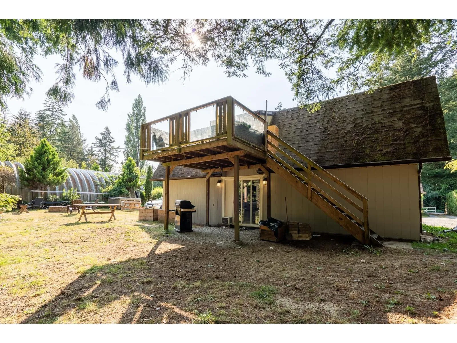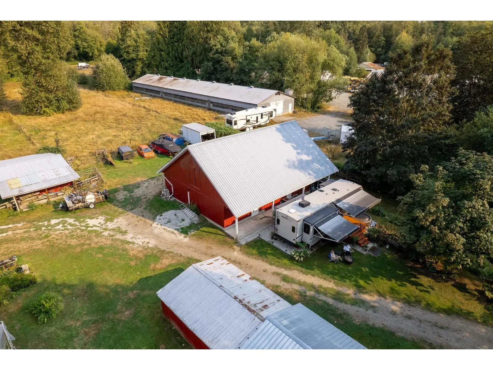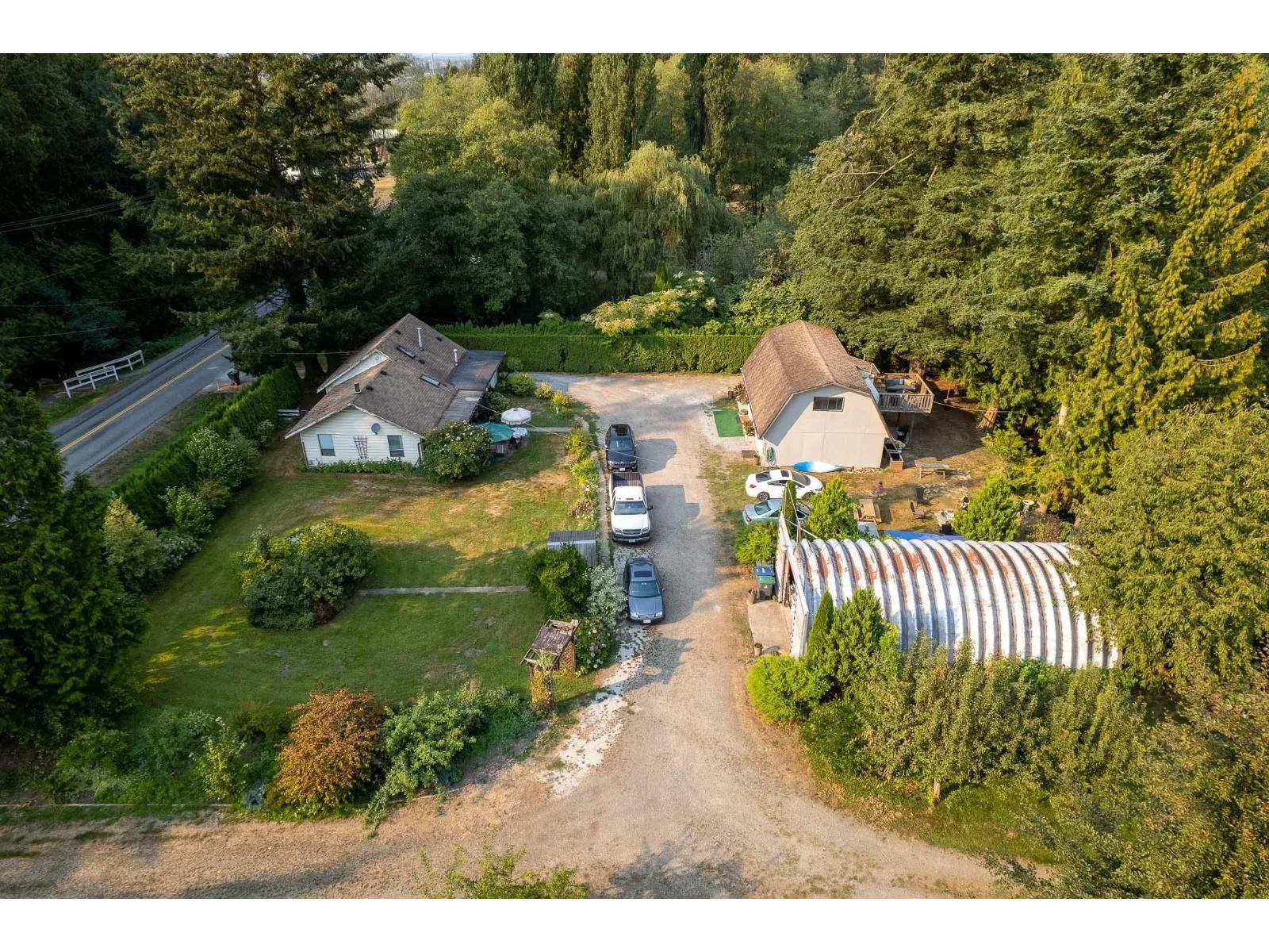 5.175 Acres in GREAT location with multiple options for MULTI FAMILY LIVING or revenue with 3 bed/2 bath main home, fully updated 2 bed/1.5 bath cottage home & large 46X34 barn/shop which has a commercial kitchen, water & gas! An oversized loft that could easily accommodate many different uses! 175 Ft frontage, 2 driveway access, additional large 24X40 Quonset barn & 27X15 workshop, and ready for your trucks & ideas! This property truly feels like you are away from it all: Private picturesque acreage to host your garden parties, beautiful pond, sit around the fire and roast marshmallows, gardens, fruit trees, blueberries, fenced pasture & greenhouse this is a great opportunity for anyone looking to own land. Land sits high & dry. RARE SURREY OFFERING - OUT OF FLOODPLAIN (id:27476)