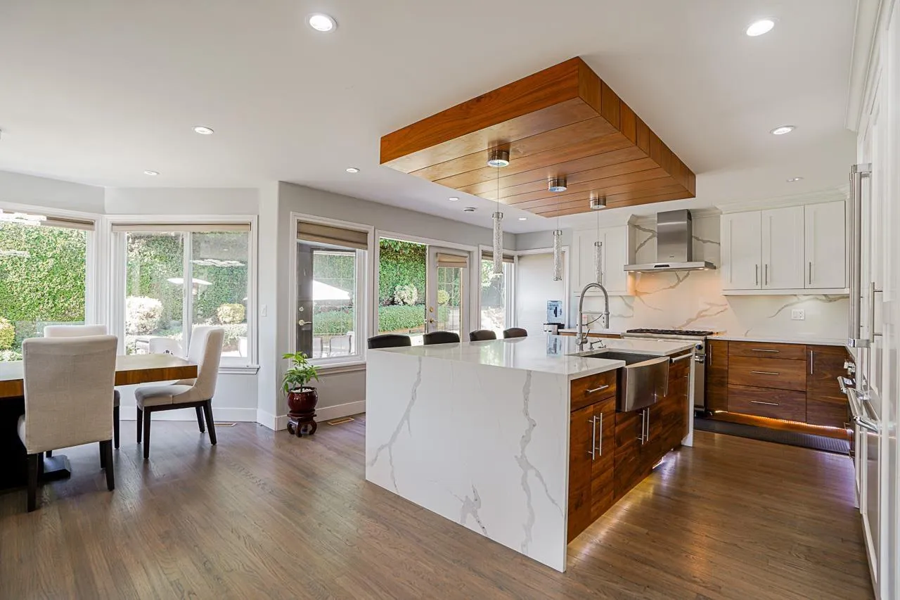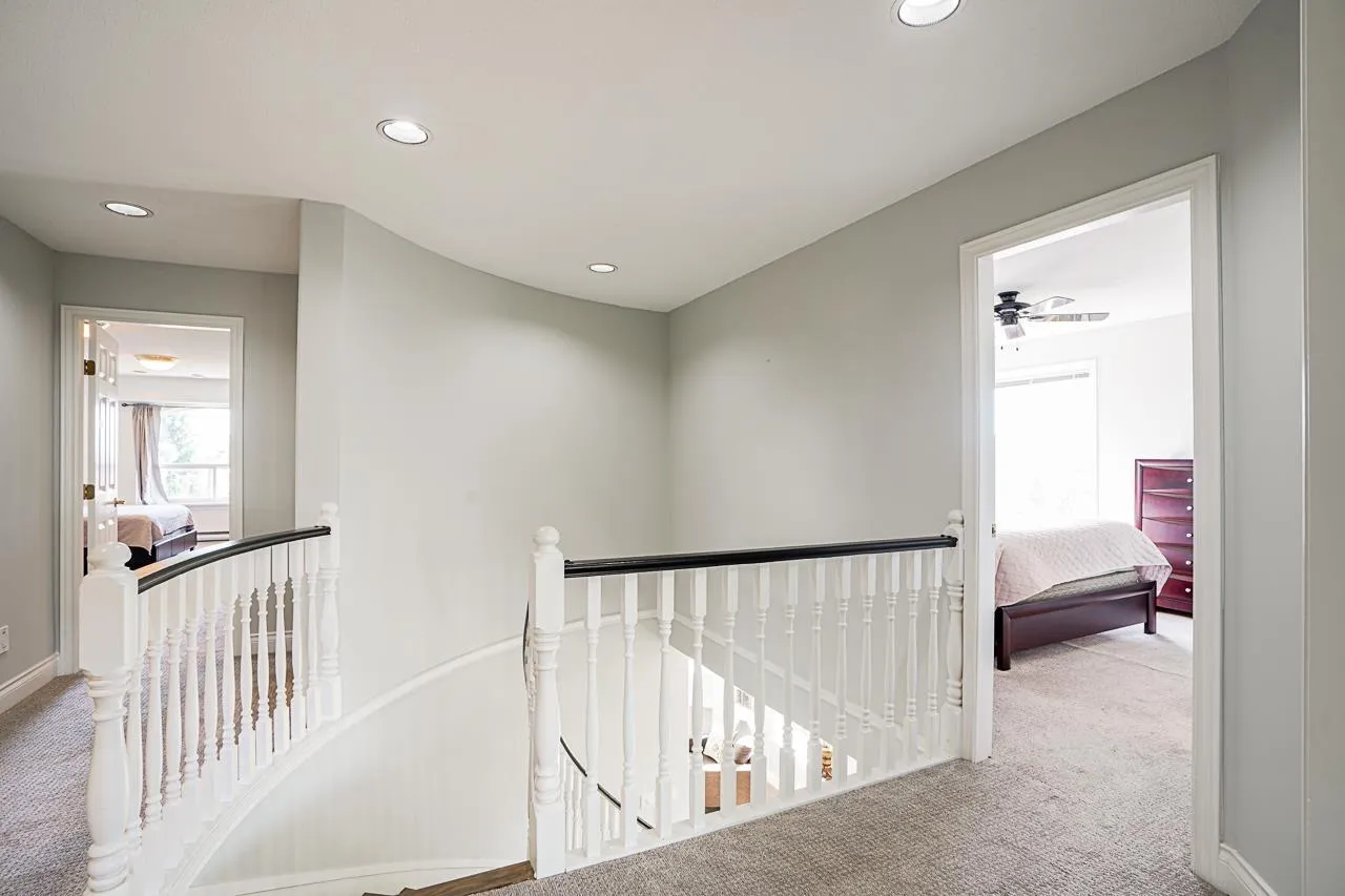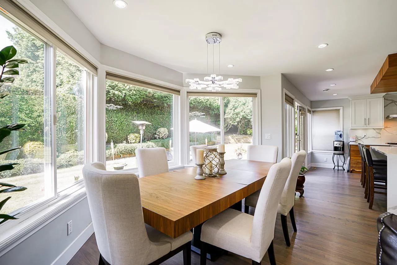 Elegant Hunter Park Estates home with valley views in a quiet, family-friendly setting. A two-storey plus basement layout sits proudly at the top of the street. The spacious yard offers two stamped concrete patios, mature hedges, and apple, pear, and crab apple trees that create a peaceful backdrop. A high-ceilinged foyer opens to an inviting living room and formal dining room. The renovated kitchen provides quartz counters, extensive cabinetry, and a $60K Thermador package with steam oven, plus a bright morning room.. Upstairs includes a comfortable primary with walk-in closet and 5-piece ensuite, along with three additional bedrooms. The huge basement with separate entry features a 2-bed in-law suite and rooms for upstairs use. Triple garage with extra height ceiling. 200 amp panel. (id:27476)