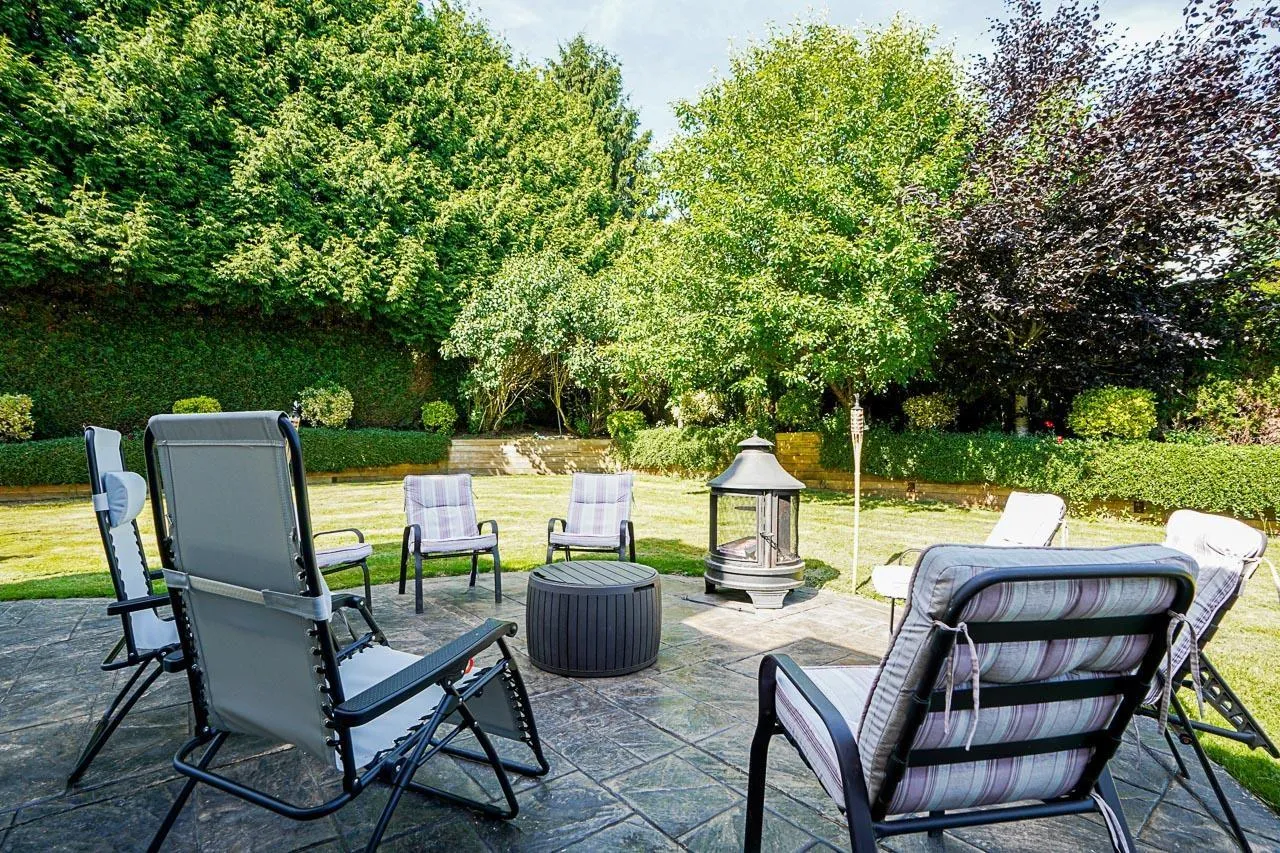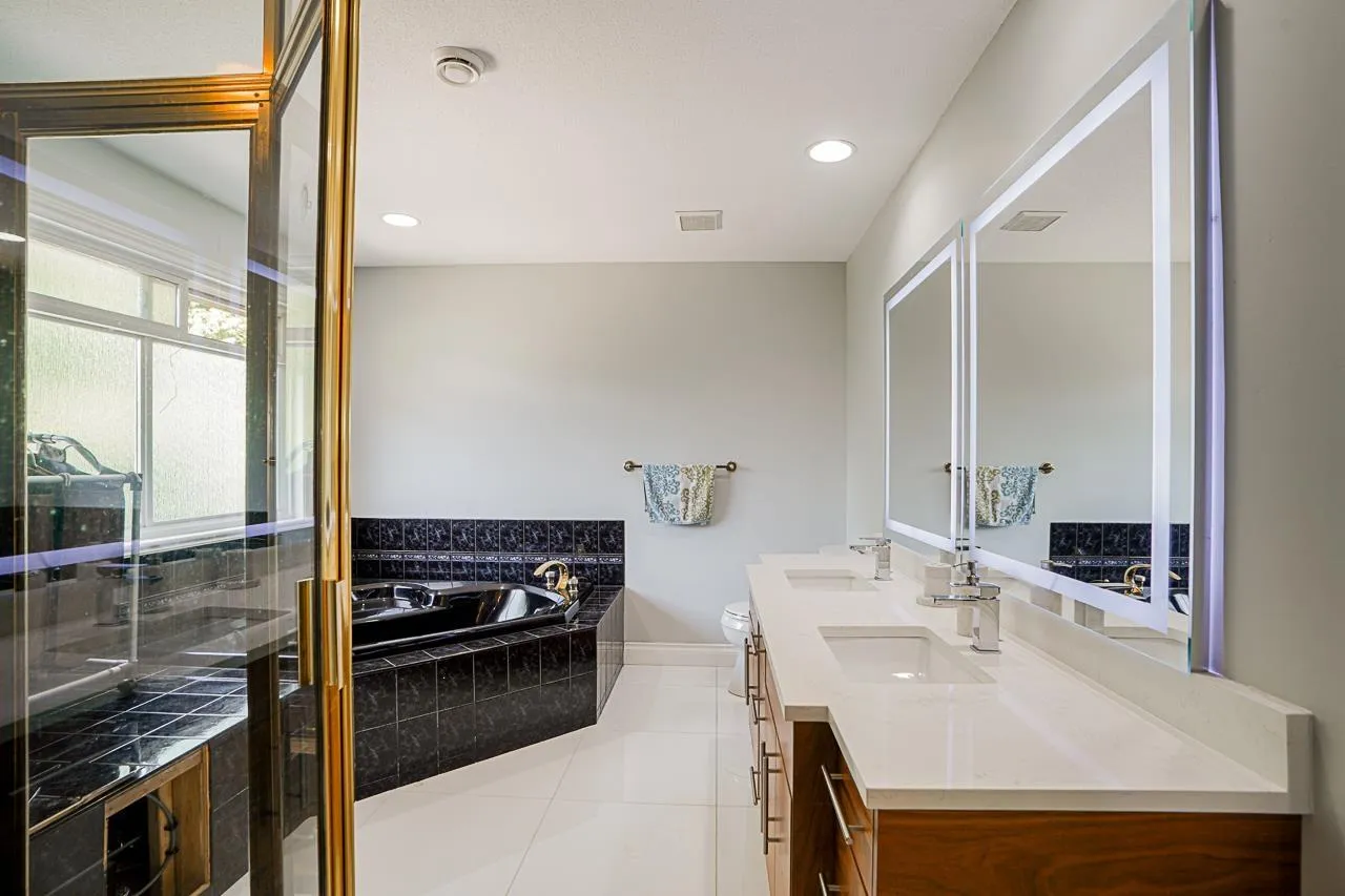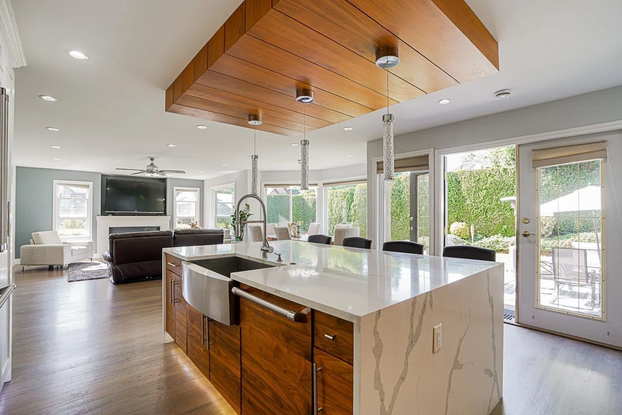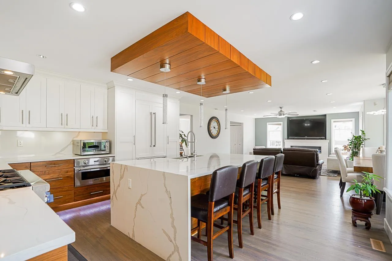 Elegant Hunter Park Estates home with valley views in a quiet, family-friendly setting. A two-storey plus basement layout sits proudly at the top of the street. The spacious yard offers two stamped concrete patios, mature hedges, and apple, pear, and crab apple trees that create a peaceful backdrop. A high-ceilinged foyer opens to an inviting living room and formal dining room. The renovated kitchen provides quartz counters, extensive cabinetry, and a $60K Thermador package with steam oven, plus a bright morning room.. Upstairs includes a comfortable primary with walk-in closet and 5-piece ensuite, along with three additional bedrooms. The huge basement with separate entry features a 2-bed in-law suite and rooms for upstairs use. Triple garage with extra height ceiling. 200 amp panel. (id:27476)