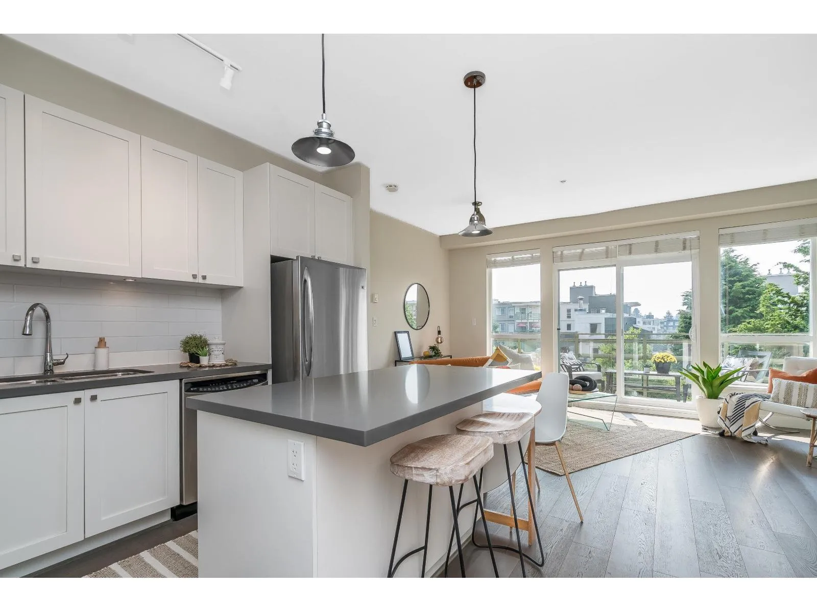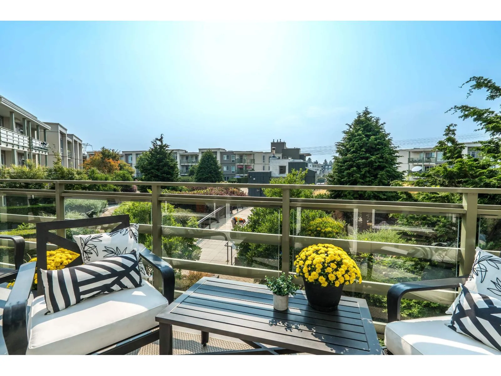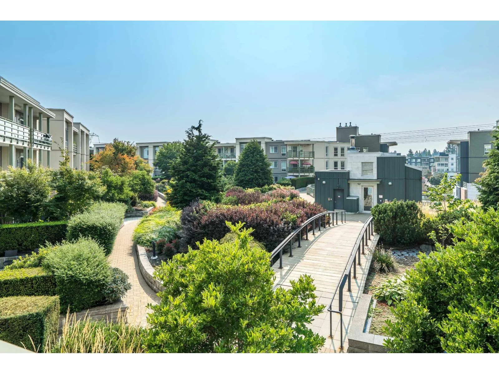 Spacious modern condo at respected Summit House is bright and airy with oversized windows, 9' ceilings and open floorplan. 2 generous bedrooms, separated for privacy, each with a full bathroom. King-sized primary bedroom has a massive walk in closet. Relax on the large sunny SW-facing balcony overlooking beautiful landscaped gardens. Very private condo - not overlooked. 2 side-by-side underground parking spaces and full-sized locker. Building has guest suite, electric vehicle charging, exercise room, amenity room, bike room, lots of visitor parking. 2 pets allowed. Move-in ready. Welcome to your new home. (id:27476)