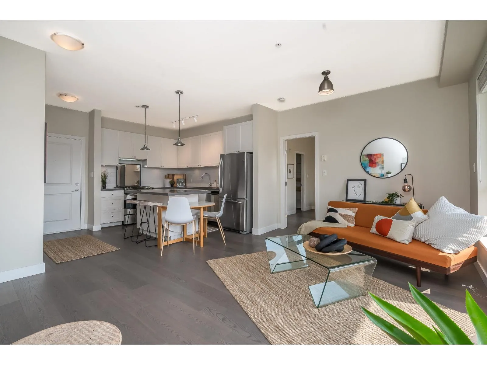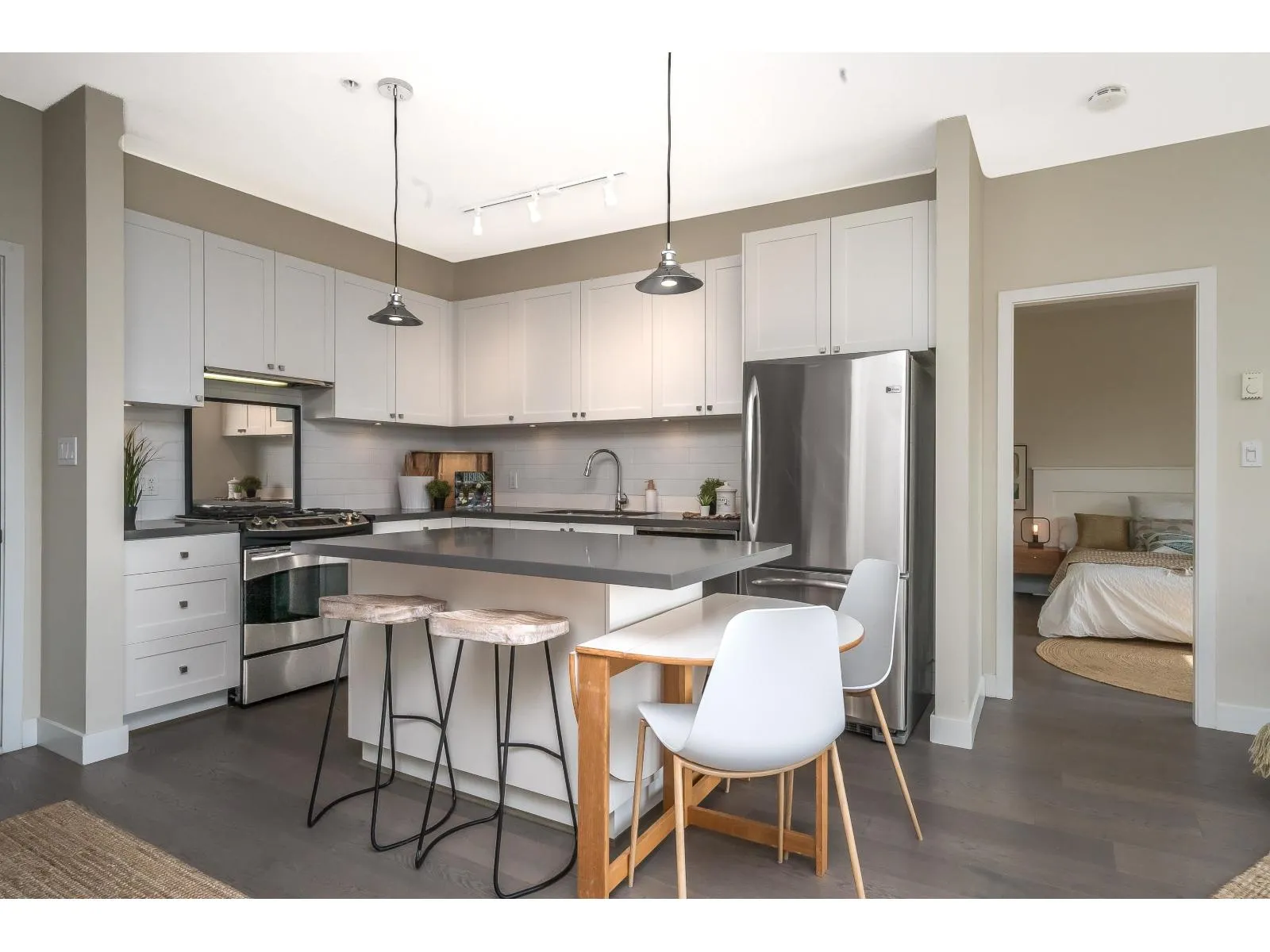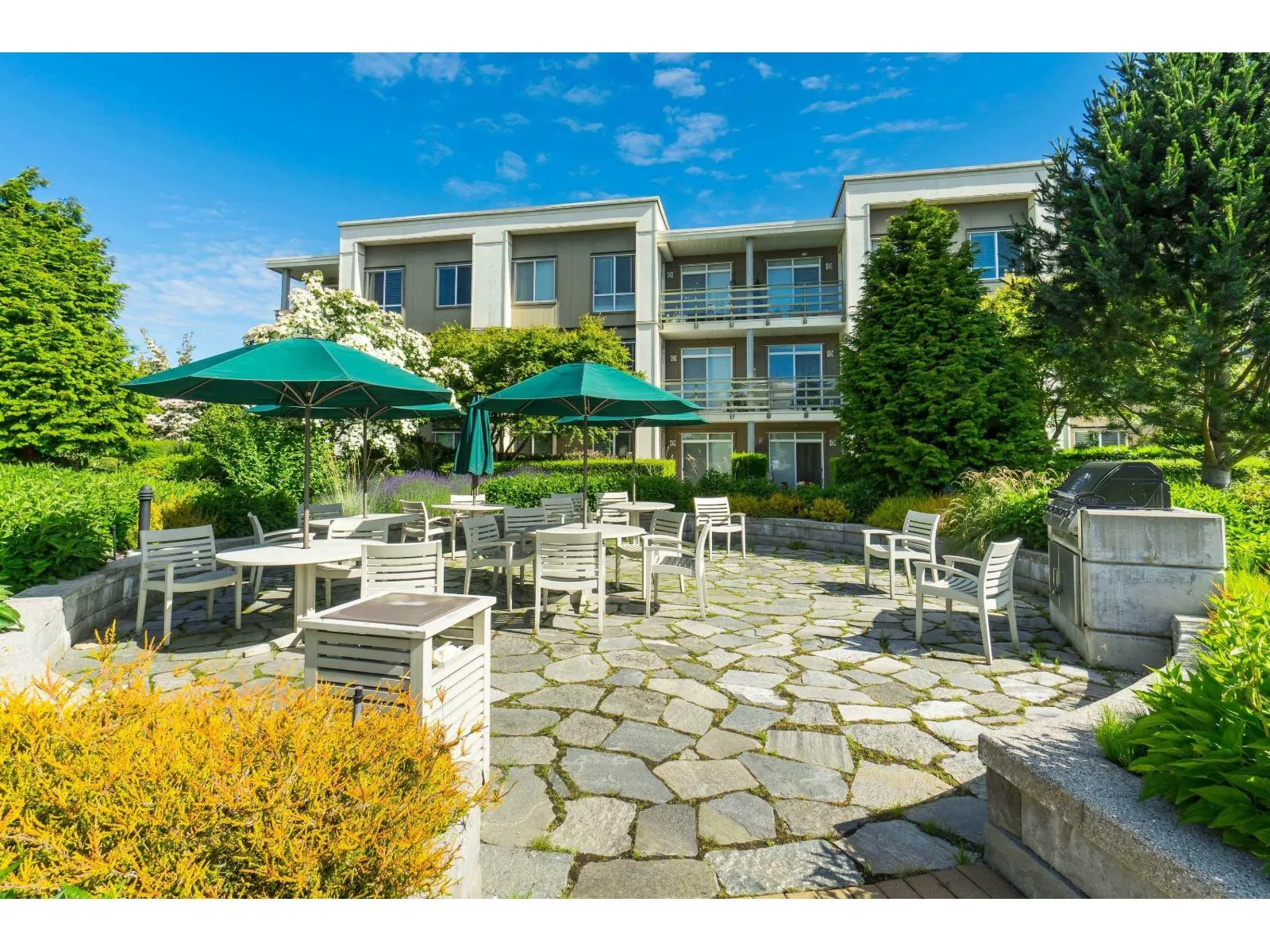 Spacious modern condo at respected Summit House is bright and airy with oversized windows, 9' ceilings and open floorplan. 2 generous bedrooms, separated for privacy, each with a full bathroom. King-sized primary bedroom has a massive walk in closet. Relax on the large sunny SW-facing balcony overlooking beautiful landscaped gardens. Very private condo - not overlooked. 2 side-by-side underground parking spaces and full-sized locker. Building has guest suite, electric vehicle charging, exercise room, amenity room, bike room, lots of visitor parking. 2 pets allowed. Move-in ready. Welcome to your new home. (id:27476)