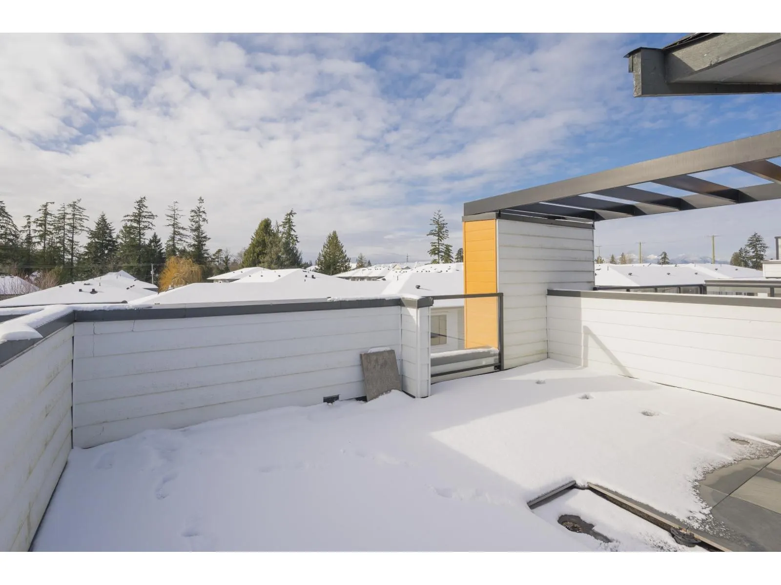 Located in the heart of Fleetwood, this beautifully designed 3 bedroom plus den townhouse offers a perfect blend of modern style, functionality, and exceptional outdoor living. The open concept main floor is filled with natural light and features a spacious living area with an electric fireplace, oversized windows, and seamless flow into a contemporary kitchen complete with quartz countertops, gas range, stainless steel appliances, soft close cabinetry, built in microwave, and a generous walk in pantry. Upstairs, all three bedrooms are thoughtfully positioned together, highlighted by a luxurious primary retreat with a spa inspired ensuite. The true highlight is the expansive 600+ sq.ft. private rooftop deck, an entertainer's dream ideal for sunset views, gatherings, and relaxing outdoors. (id:27476)