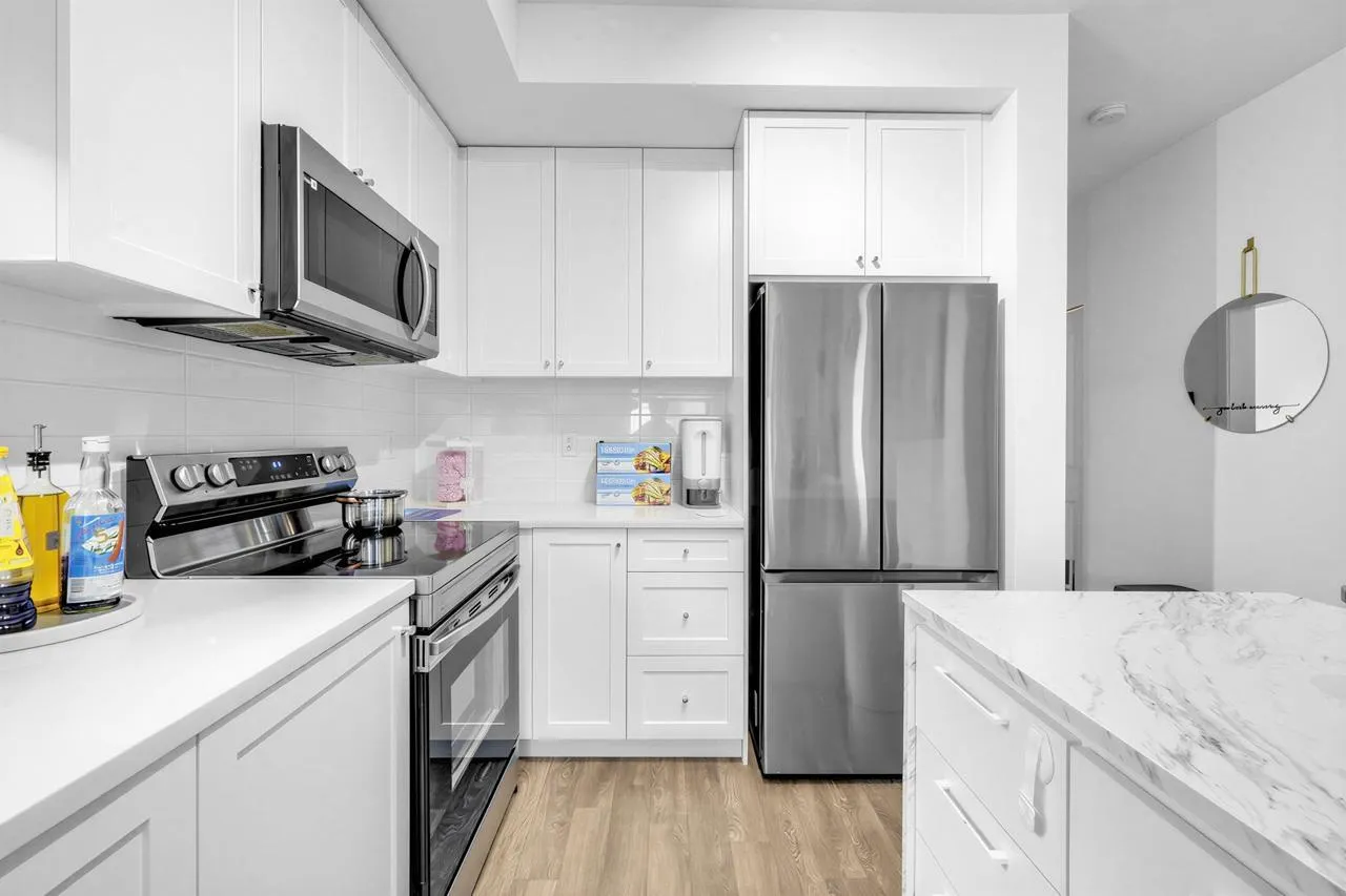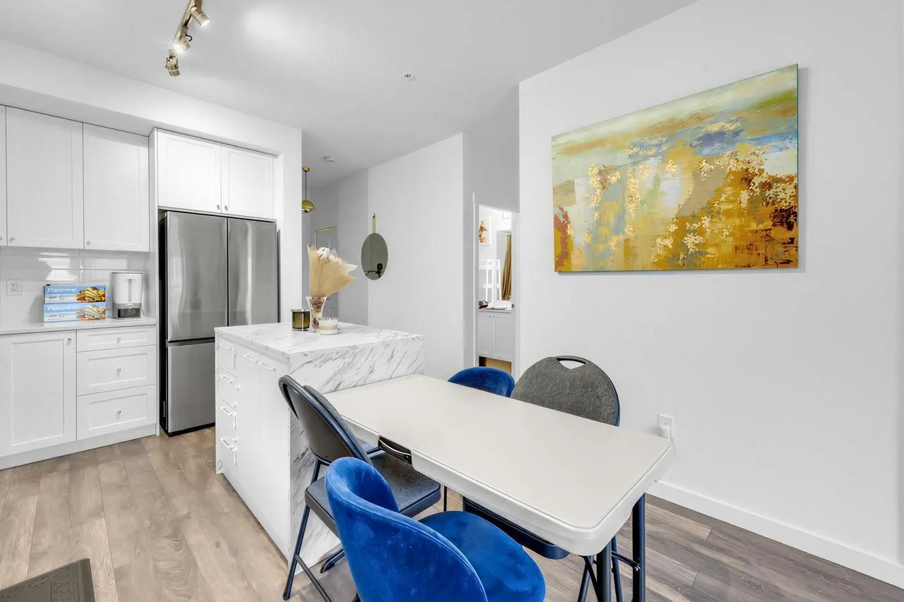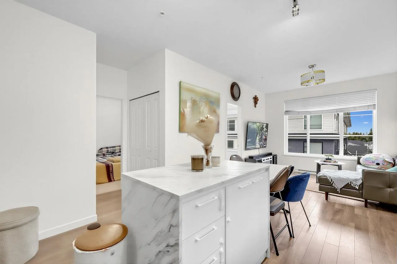 Welcome home! This bright, top-floor home offers a smart, open layout with large windows that bring in plenty of natural light. The modern kitchen flows seamlessly into the living space, making it perfect for everyday living or hosting friends. Step out onto your private balcony to relax after a long day. Located close to transit, shopping, restaurants, and essential amenities, this is a great place to call home for first-time buyers or those looking to downsize comfortably. Be along the newest skytrain line connecting Surrey to Langley! Open House SAT Jan 31st and SUN 1st 2-4 PM! (id:27476)
