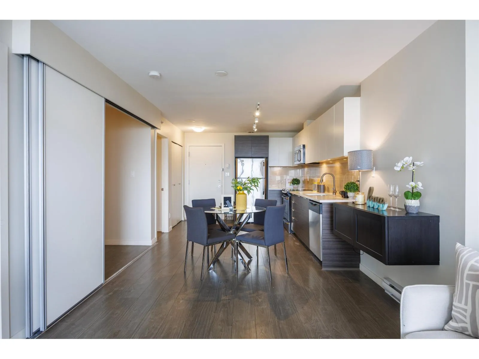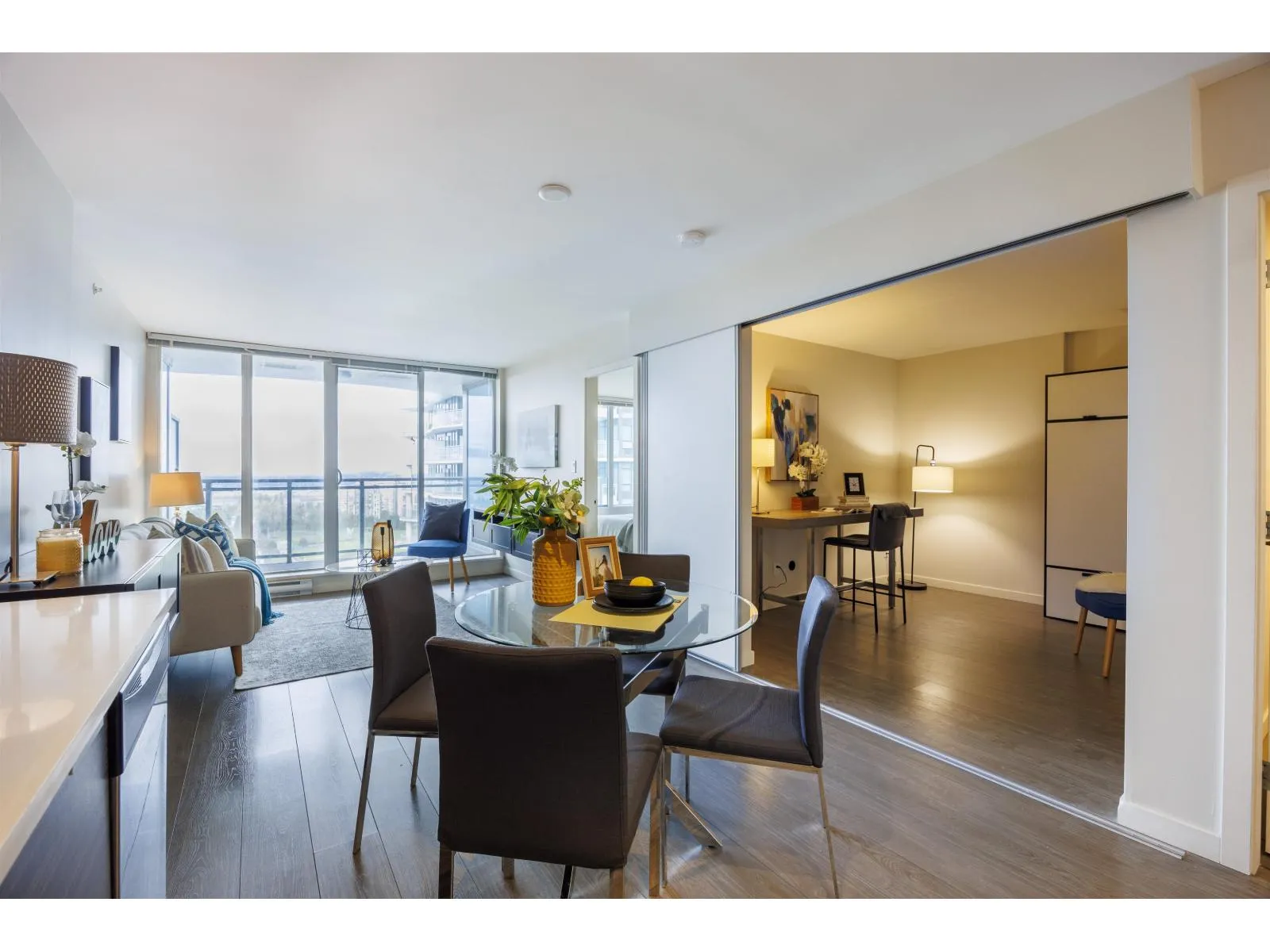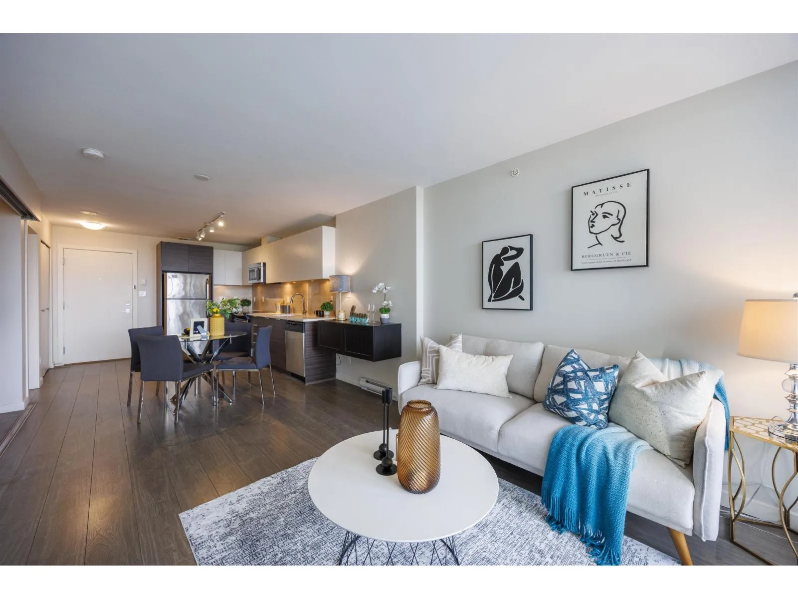 Stunning North Shore Mountain views from this 22nd-floor 2-bedroom home at The Wave by RIZE Alliance Properties Ltd. Super well-maintained with fresh new paint and like new washer & dryer. Open-concept layout with quartz countertops, stainless steel appliances, central island, and wide-plank laminate flooring. Prime location steps to SkyTrain, shopping, SFU, and Surrey Centre. Exceptional amenities include rooftop BBQ lounge with Panoramic views, fitness center, clubhouse, dog wash, and car wash. Second bedroom is staged as office, however, more potentials are revealed in Pic: bedroom/Flex/Office. An outstanding opportunity for first-time buyers or investors-Book your appointment today! Come and find out !! A pleasure to show!!! (id:27476)