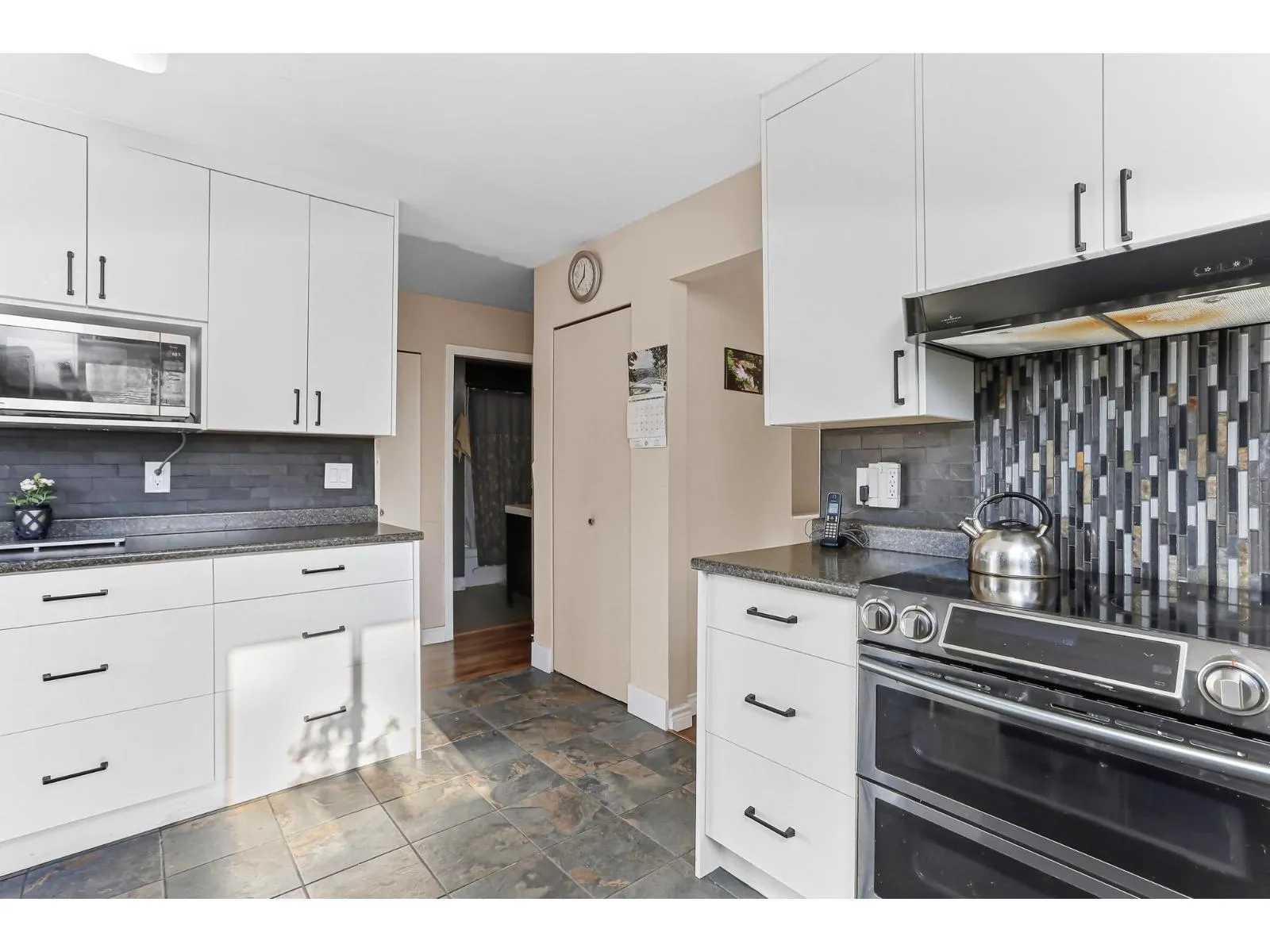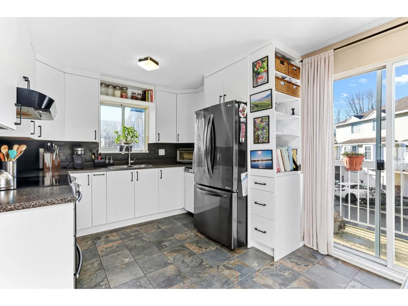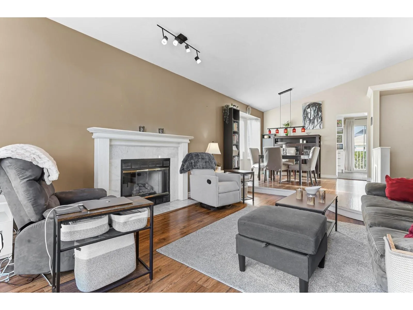 Welcome to "The Upton"-a rare, 1951sf oversized end-unit offering the privacy of a detached home. This 3-bedroom, 2-bathroom residence features a brand-new kitchen and updated flooring throughout. The main level impresses with soaring vaulted ceilings and expansive windows centered around a cozy gas fireplace. The versatile floor plan includes two bedrooms up, plus a massive lower-level family room and guest bedroom (easily convertible to a 4th bedroom). Enjoy an attached garage plus additional parking for two more cars. The fully fenced yard, lush garden, and dual decks offer a private outdoor retreat. All this with a low $495.45 strata fee and resort-style amenities (pool, gym, tennis). Minutes to Newton Town Centre and Hazelnut Meadows Park. (id:27476)
