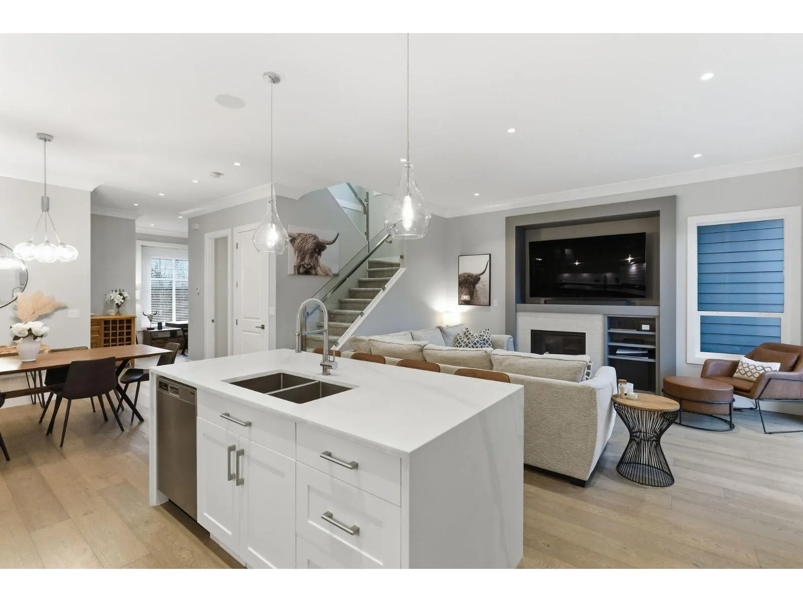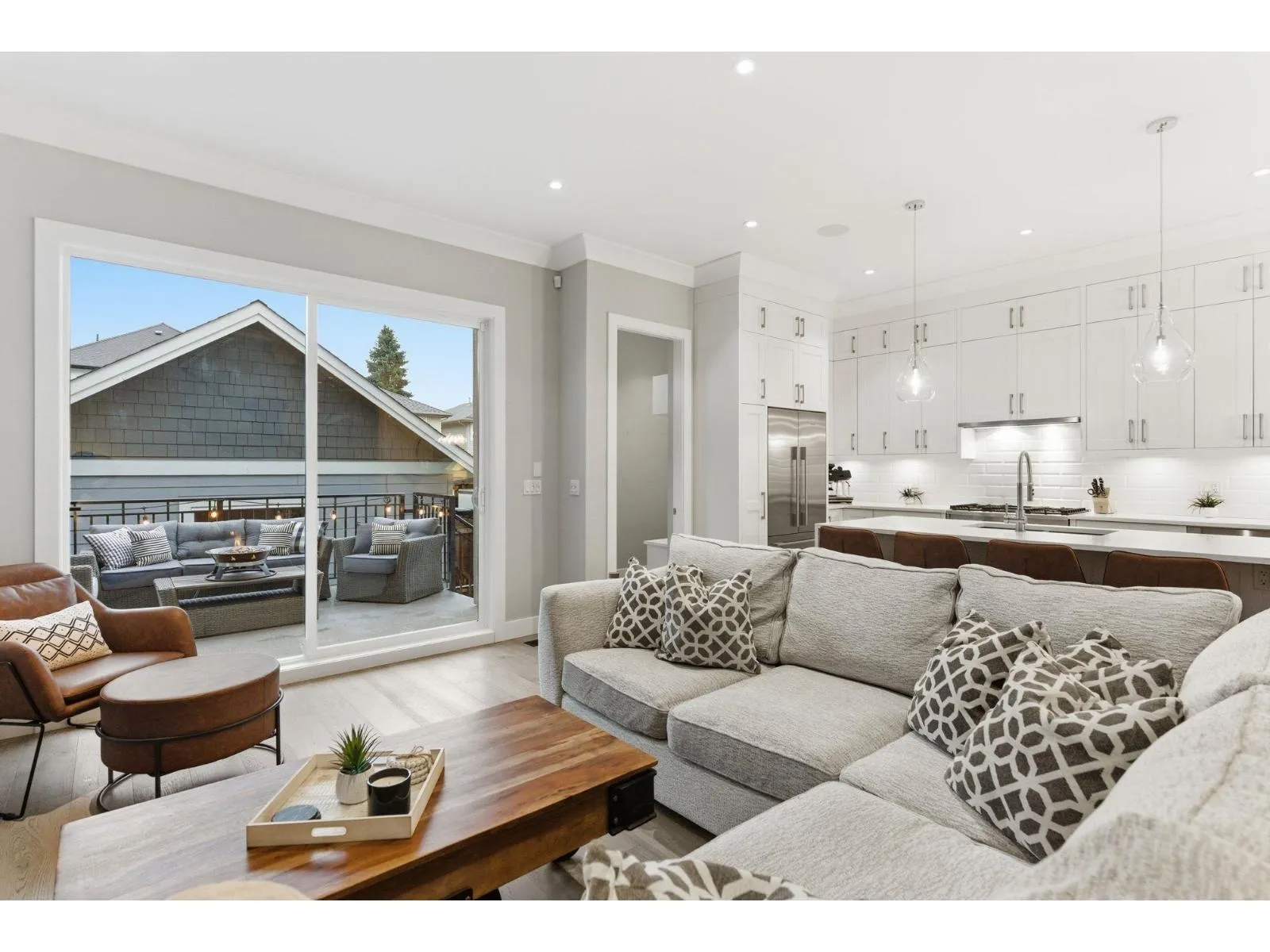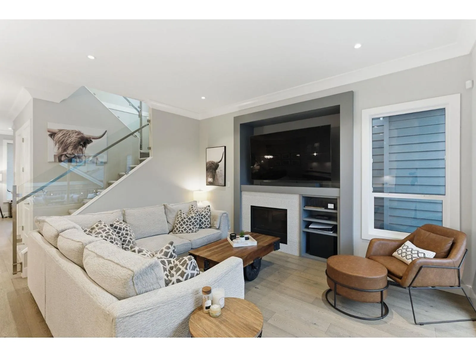 One of the finest custom home in the area, set in a cul-de-sac near Morgan Crossing. This immaculate, like-new 5 bed, 4 bath home showcases exceptional craftsmanship. The open main floor is ideal for entertaining with a chef's kitchen featuring seating island, built-in fridge, gas stove, premium appliances, and ceiling-height cabinetry. Glass railings add architectural detail, while a built-in TV media unit with fireplace anchors the living space and opens to a large patio. A den and mudroom complete the main. Upstairs offers a serene primary retreat with spa-like marble ensuite, large walk-in closet, two additional bedrooms, and laundry. Basement includes owner-use family room and bright 2-bed legal suite. Low-maintenance turf yard, lane-access double garage. (id:27476)