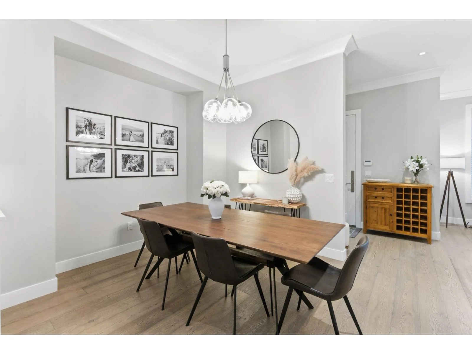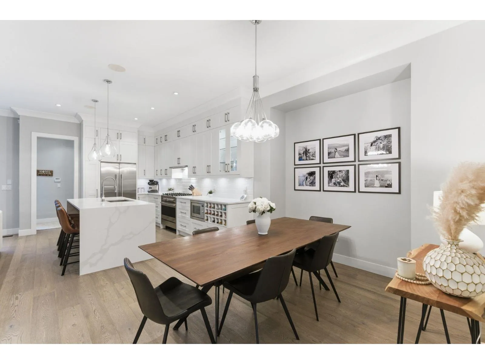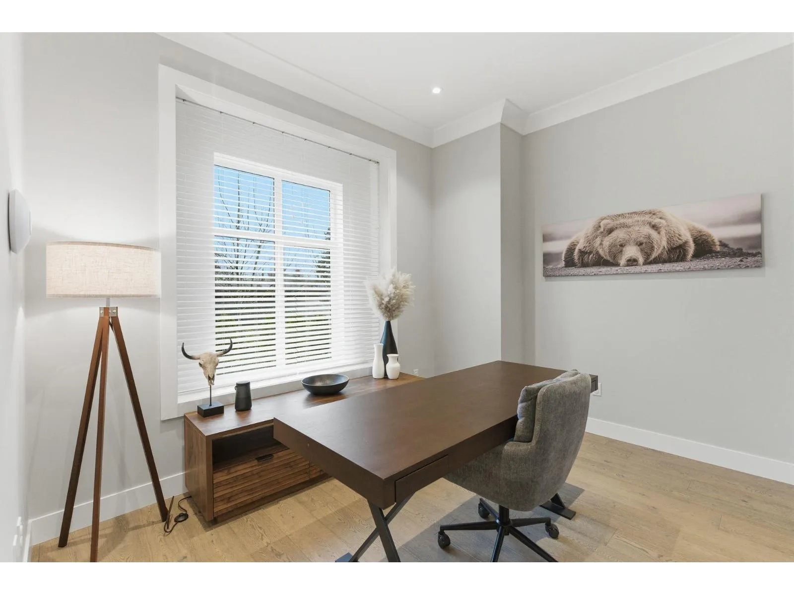 One of the finest custom home in the area, set in a cul-de-sac near Morgan Crossing. This immaculate, like-new 5 bed, 4 bath home showcases exceptional craftsmanship. The open main floor is ideal for entertaining with a chef's kitchen featuring seating island, built-in fridge, gas stove, premium appliances, and ceiling-height cabinetry. Glass railings add architectural detail, while a built-in TV media unit with fireplace anchors the living space and opens to a large patio. A den and mudroom complete the main. Upstairs offers a serene primary retreat with spa-like marble ensuite, large walk-in closet, two additional bedrooms, and laundry. Basement includes owner-use family room and bright 2-bed legal suite. Low-maintenance turf yard, lane-access double garage. (id:27476)