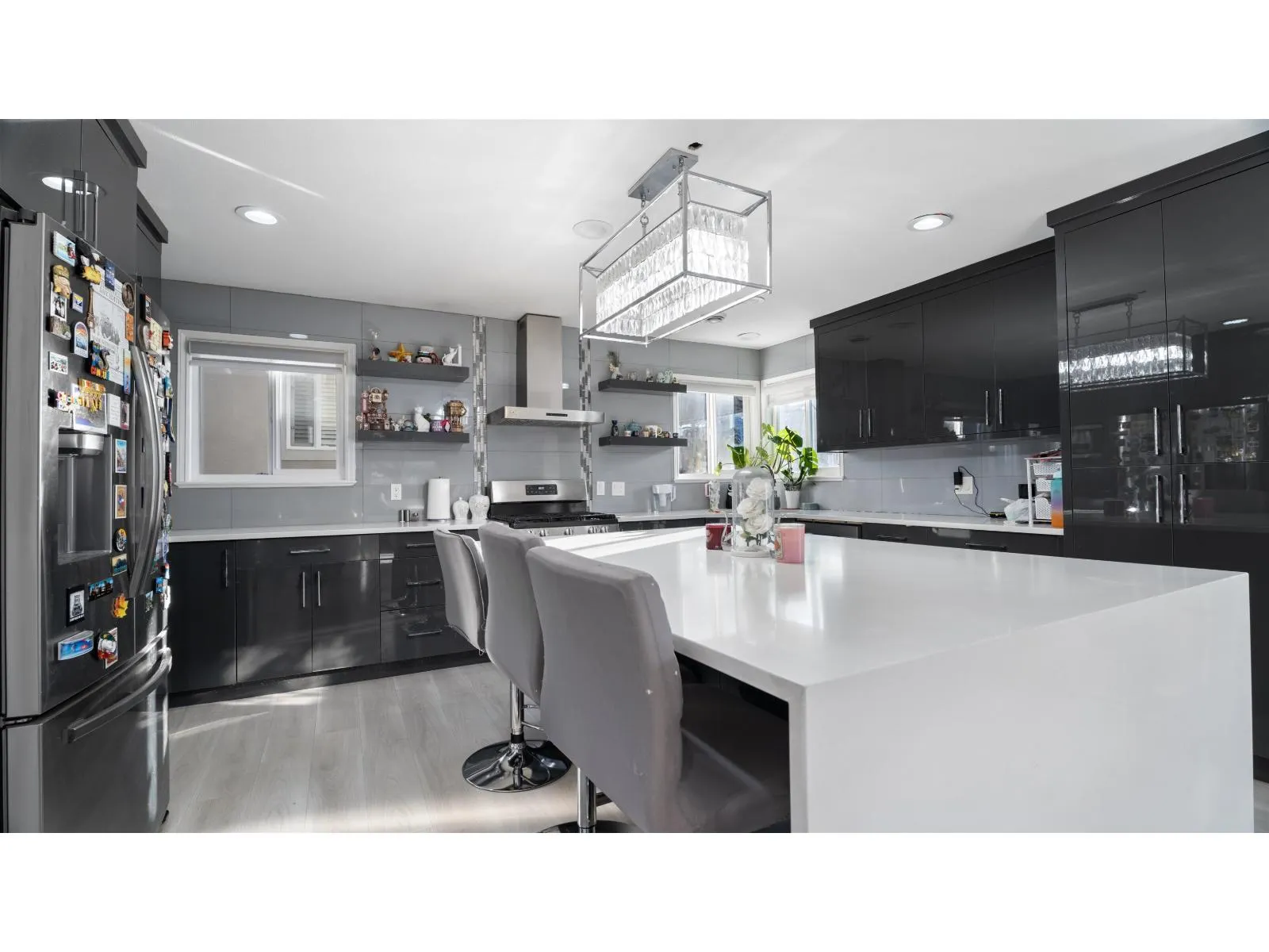 Gorgeous 3-level custom-built home in Panorama offering over 3,380 sq ft of living space on a 4,203 sq ft lot. The main house was fully renovated in 2022 and features high ceilings, a spacious living and dining area with a gas fireplace, and a modern kitchen with a large island, granite countertops, and stainless steel appliances. A generous family room with another fireplace, plus a main-floor bedroom with a full bathroom, adds excellent functionality. Upstairs offers four bedrooms with three ensuite bathrooms, including a large primary bedroom. The basement includes a 2-bedroom suite with separate entry and a large theatre room for the main house. Additional features include CENTRAL AC, EV CHARGING, rear lane access, walking distance to schools, and easy access to Highways 10 and 91. (id:27476)