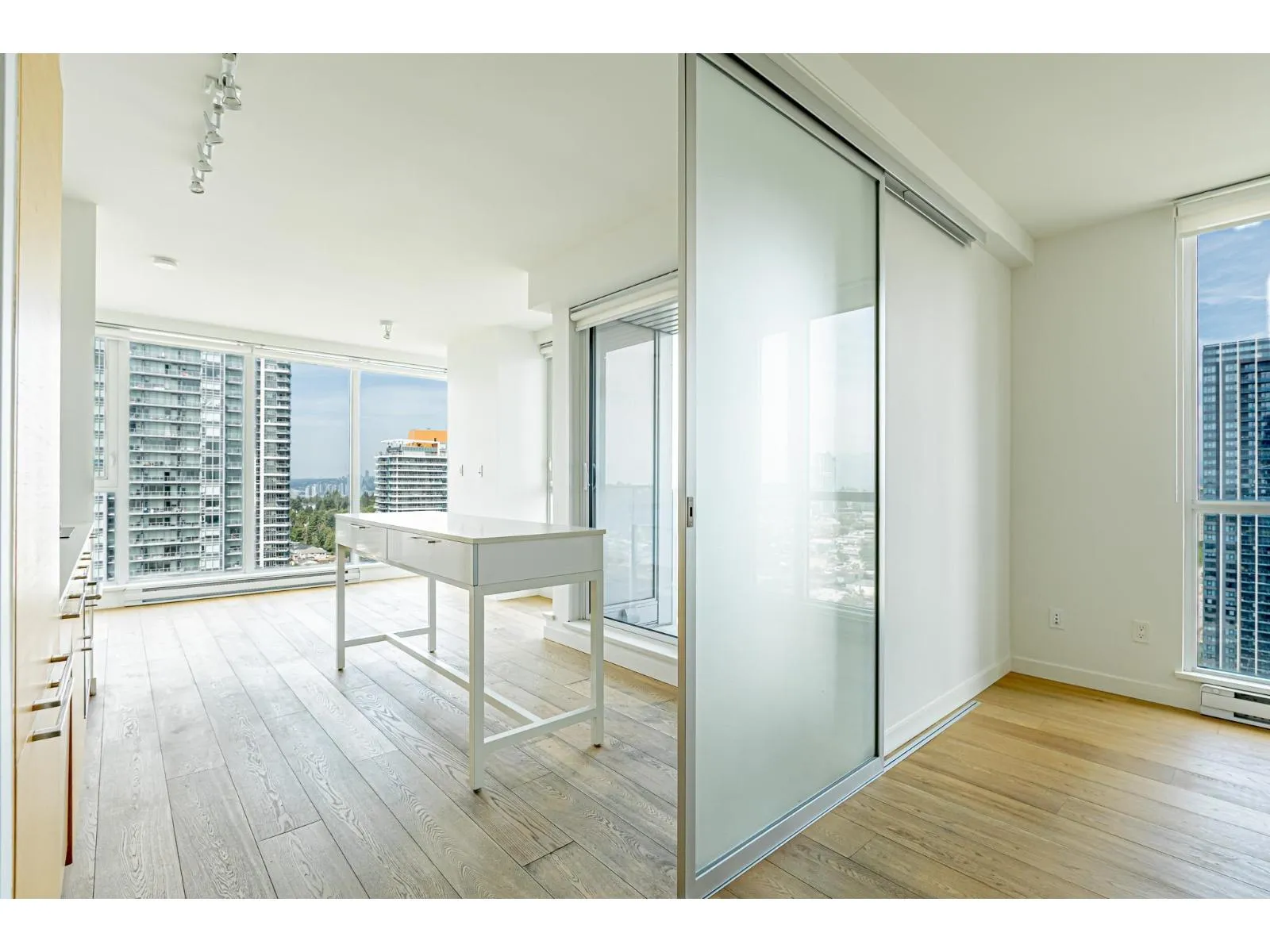 Modern, NW Corner, Micro 3 bdrm 1.5 bath unit at Downtown Surrey's PRIME ON THE PLAZA high rise. Features sleek paneled appliances, quartz counters, built-in wall beds/sofa/table, hardwood floors through out, one secured parking stall, one storage locker. There are loads of building amenities such as fully equipped gym, study rooms, steam/sauna baths, music rooms, yoga room, multiple party rooms, etc. All this and conveniently located steps from Central City Skytrain, Mall, SFU Surrey Campus, KPU, and restaurants. (id:27476)