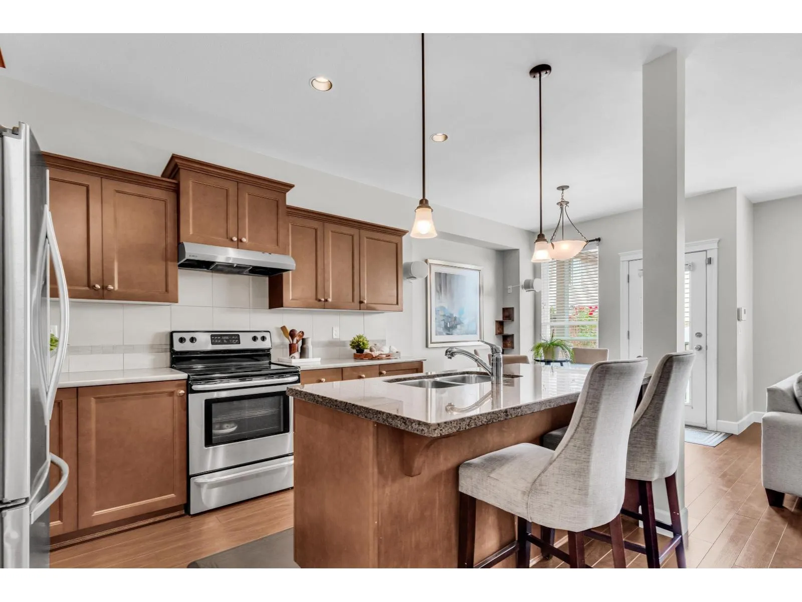 Beautifully kept Coach House on a quiet stretch of 192st. with a fully finished basement suite, and a charming 1BDRM coach house with its own laundry. Upstairs features 3 spacious BDRS and 2 BTHS, vaulted ceiling in the primary bedroom that fills the space with natural light. The main floor boasts an open-concept great room with over height ceilings, an oversized kitchen with granite countertops, stainless steel appliances, maple cabinetry, and a convenient 2-piece powder room and a Spacious office space. BSMT offers fully finished1 BDR suite with separate entry. Enjoy the fully landscape backyard with a large concrete patio, perfect for outdoor living. In a Quiet Neighbour, close to future sky train, schools and shopping mall. Catchment: Katzie Elementary & Clayton Height Secondary School (id:27476)