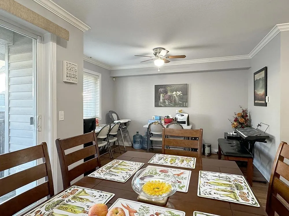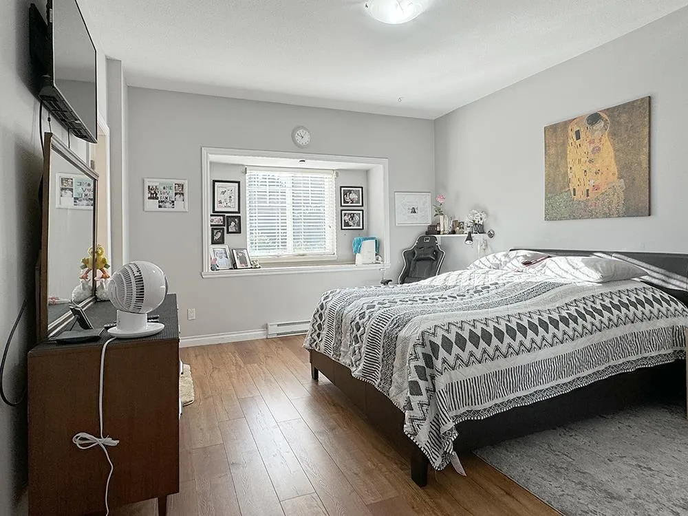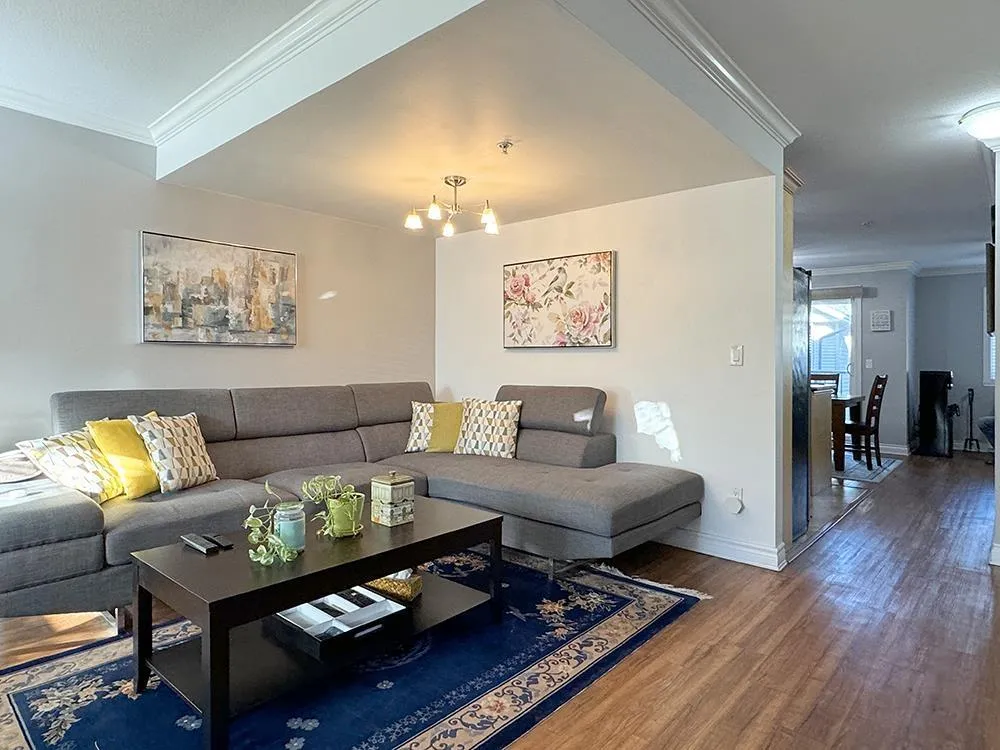 This is the ONE for YOU! As soon as you go through the front door, you will feel right at home! The extra large wide open living room is so welcoming, warm up by the electric fireplace or grab a book or a guitar and relax by the bay window. Nice and bright and spacious! A few more steps along the HARDWOOD flooring, you find the open kitchen with a dining area and a family room. Balcony is right there if you want to BBQ! When it's time to wind down, there are 3 bedrooms upstairs with 2 full bathrooms, 1 is the ensuite of the primary bedroom. Super convenient location, easy transit access. School catchments James Ardiel Elementary and Kwantlen Park Secondary. BOOK YOUR APPOINTMENT TODAY! See you there! (area measurements taken from strata plan) (id:27476)