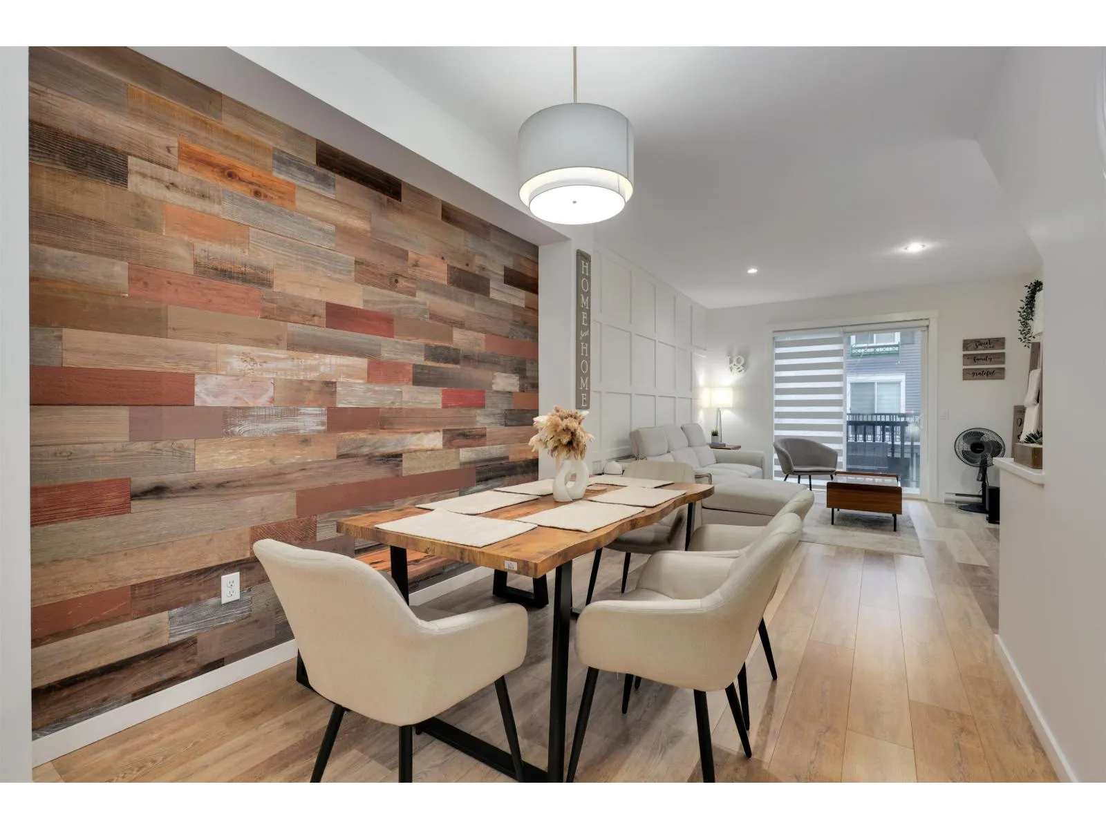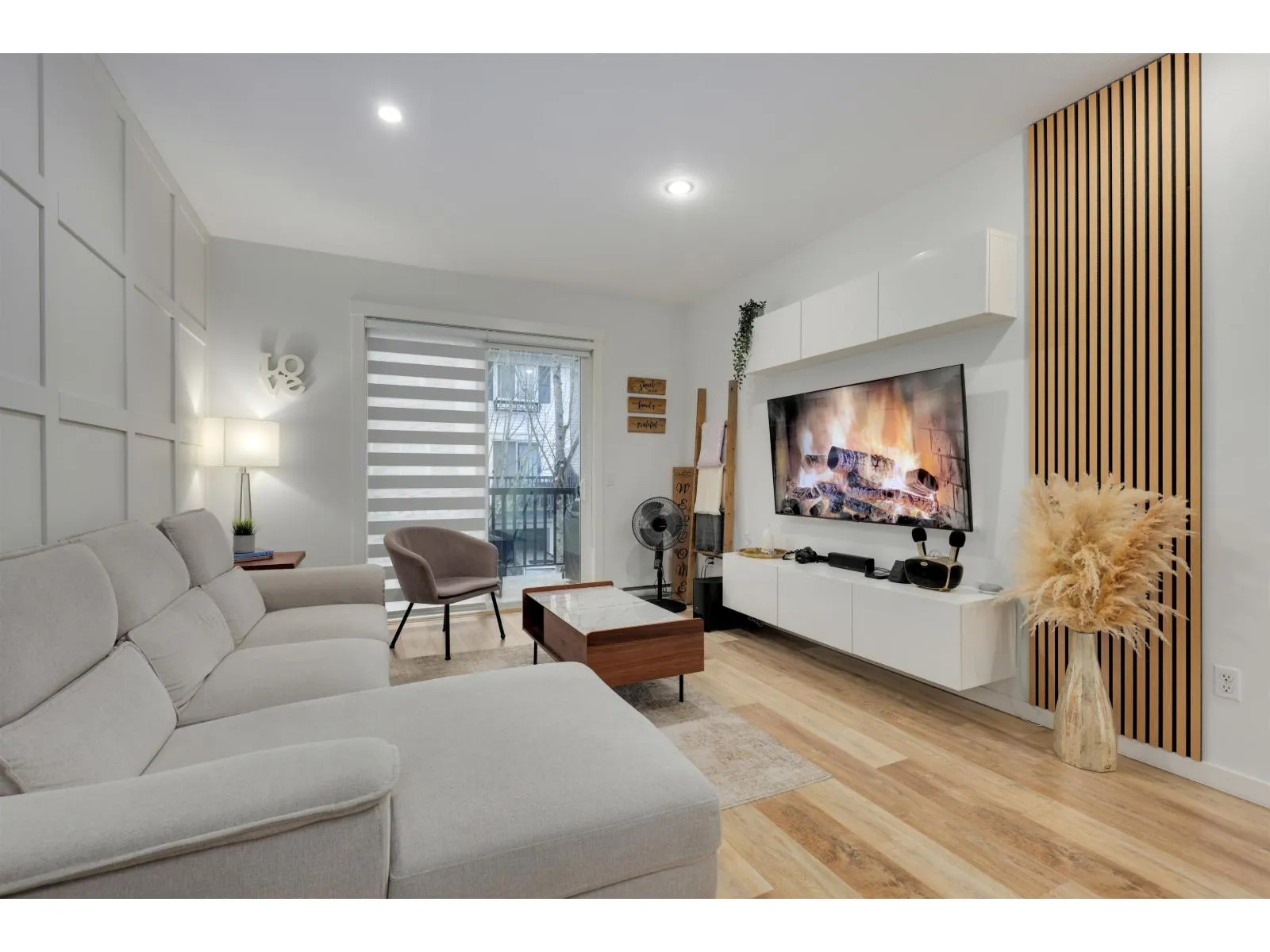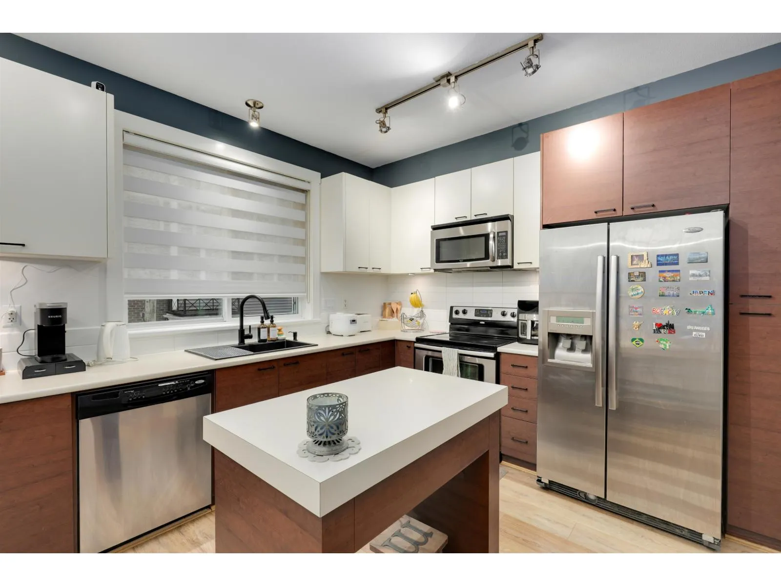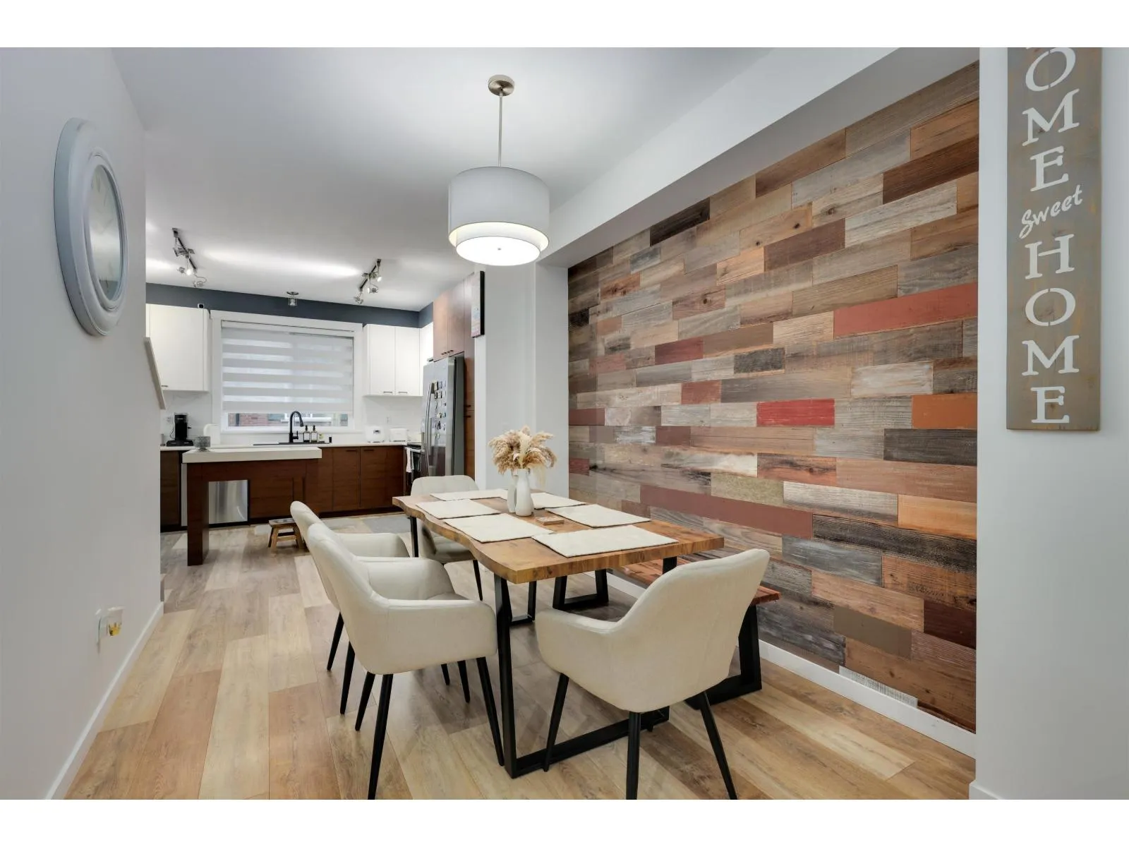 Welcome to this Georgian-inspired community known as Taylor Townhomes, built by Mosaic, ideally located in the heart of Fleetwood, Surrey. The owners have taken exceptionally good care of this 3-bedroom, 1.5 bathroom home, making it truly move-in ready. The bright open-concept main floor features wide-plank flooring, recessed lighting, and tasteful custom feature walls that enhance the living and dining areas-perfect for everyday living and entertaining. Step out to a private patio, ideal for relaxing or summer BBQs. Both full bathrooms have been updated with modern vanities, designer mirrors, and contemporary fixtures. i covered Garage with epoxy flooring and built-in shelving-perfect for parking, storage, a home gym, or workshop. Enjoy a quiet, family-friendly complex with landscaped walkways and charming curb appeal. Conveniently located close to Fleetwood Park Village, schools, parks, recreation centres, and transit, with easy access to major routes and future SkyTrain. (id:27476)
